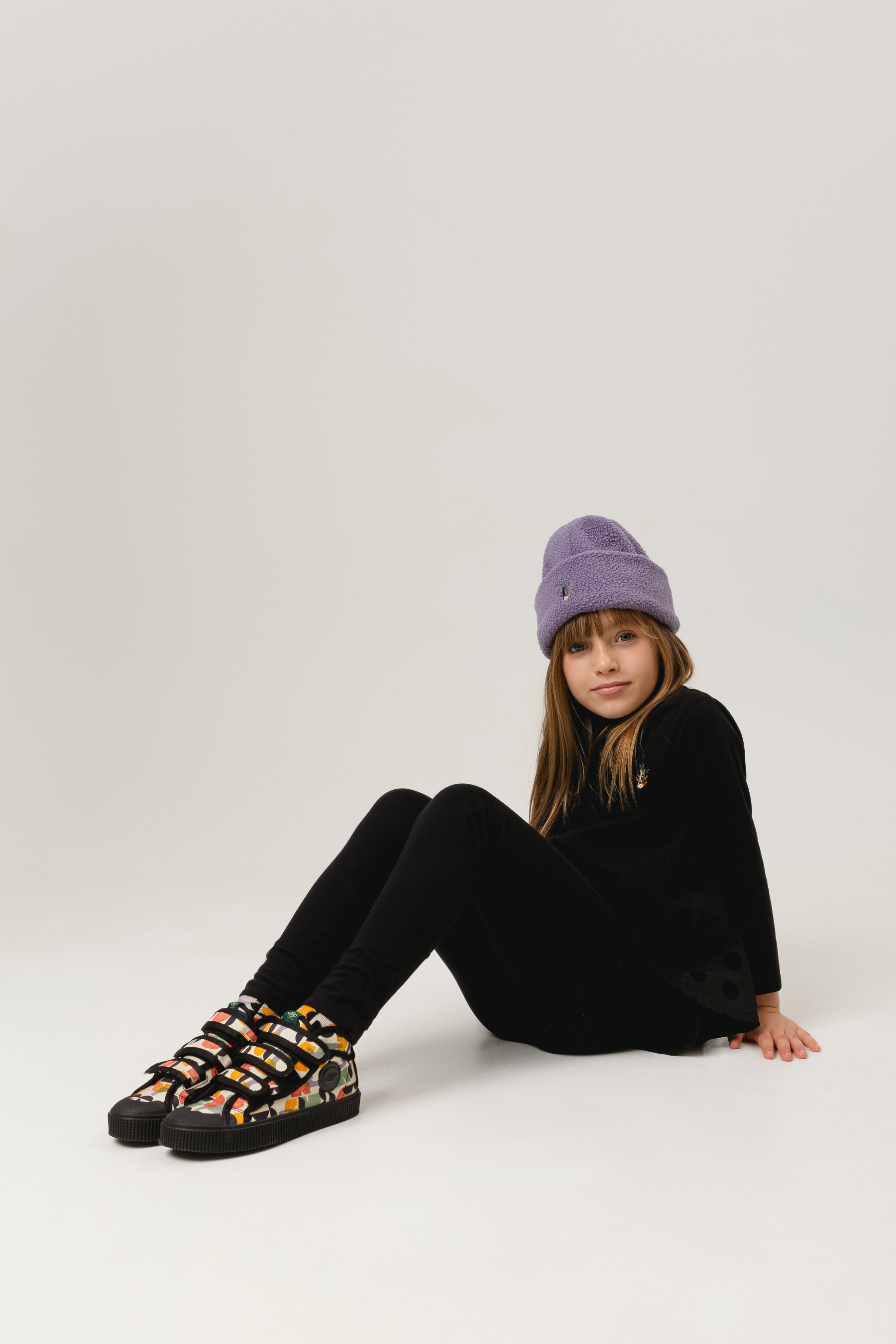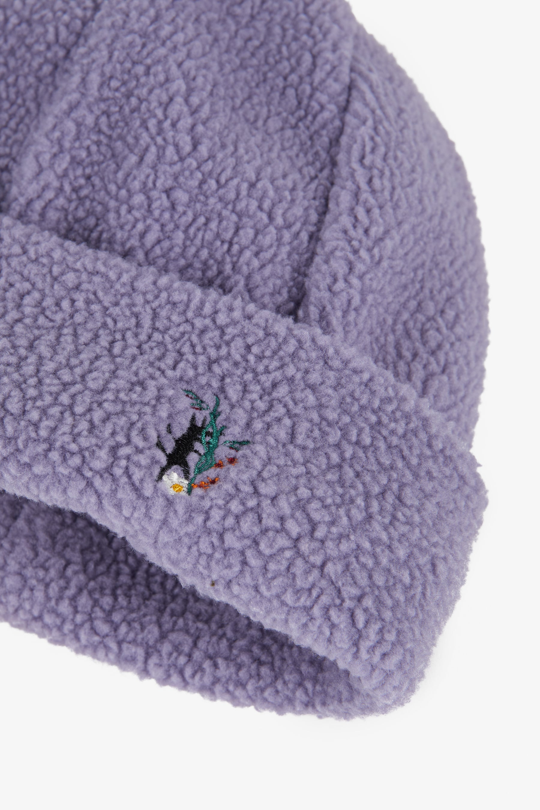 Sherpa fleece beanie with folded brim and small mascot embroidery