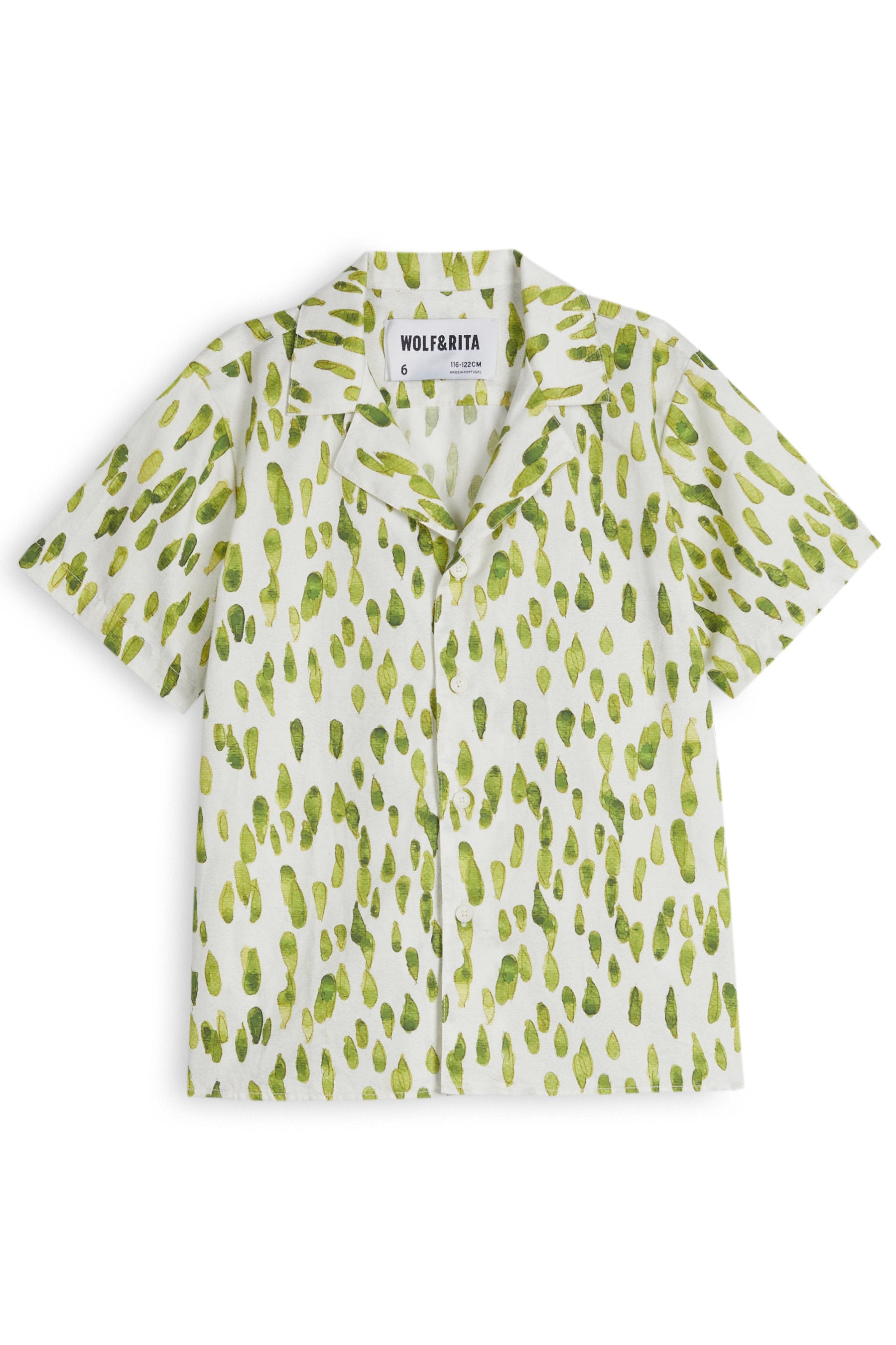 Short sleeved button-up shirt with notched lapel