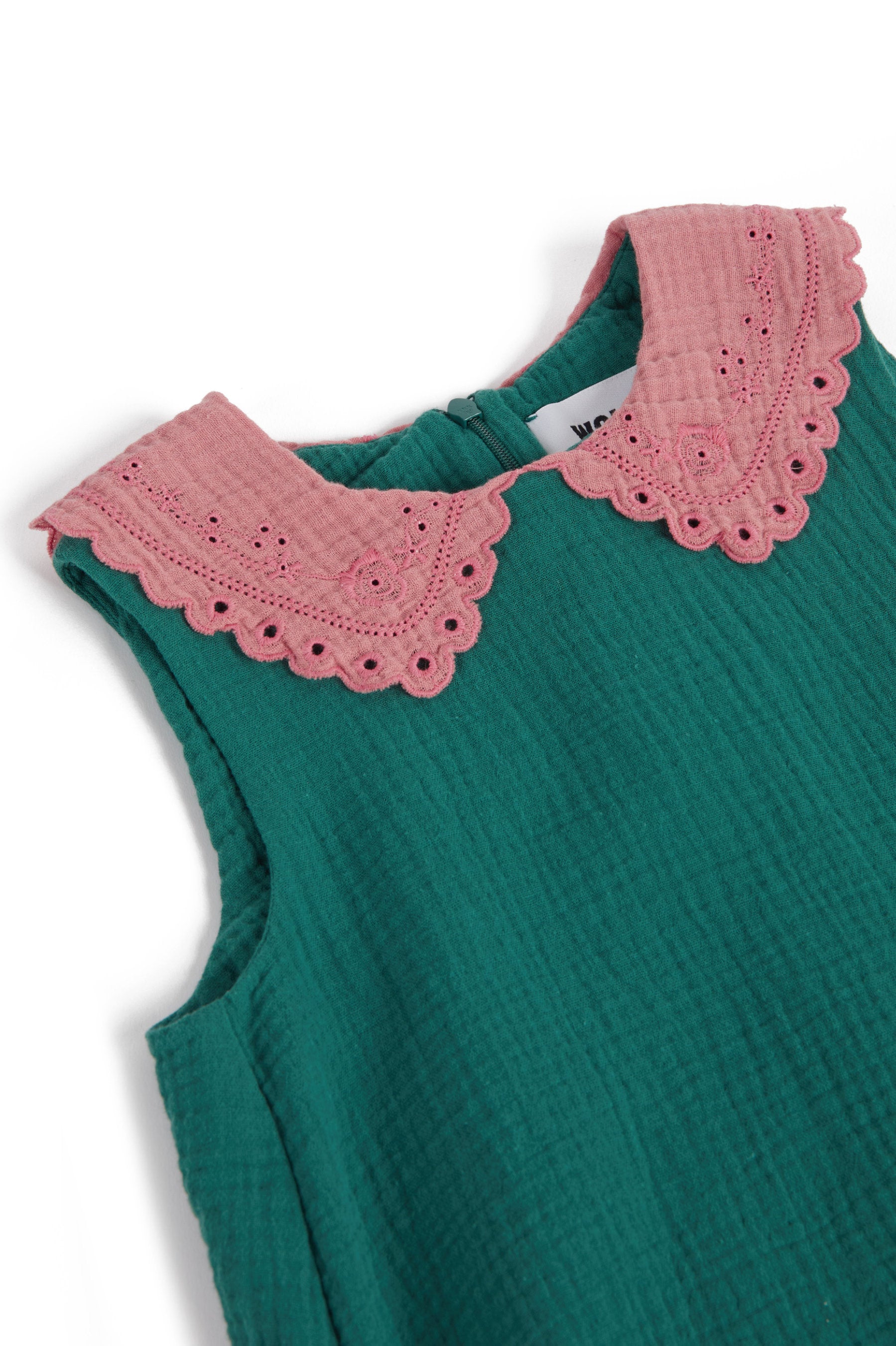 Sleeveless A-line dress with contrasted embroidered collar and inner side pockets