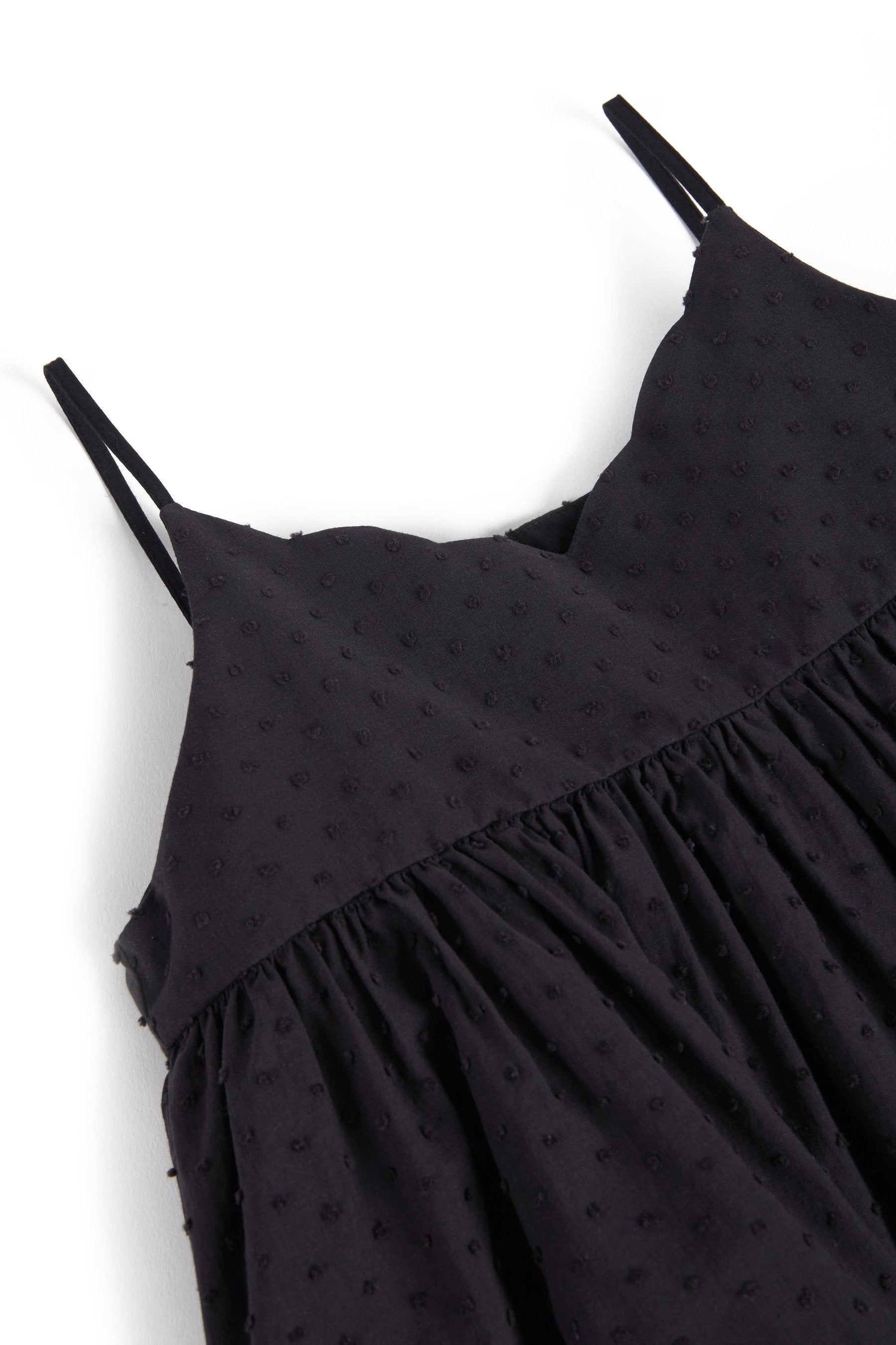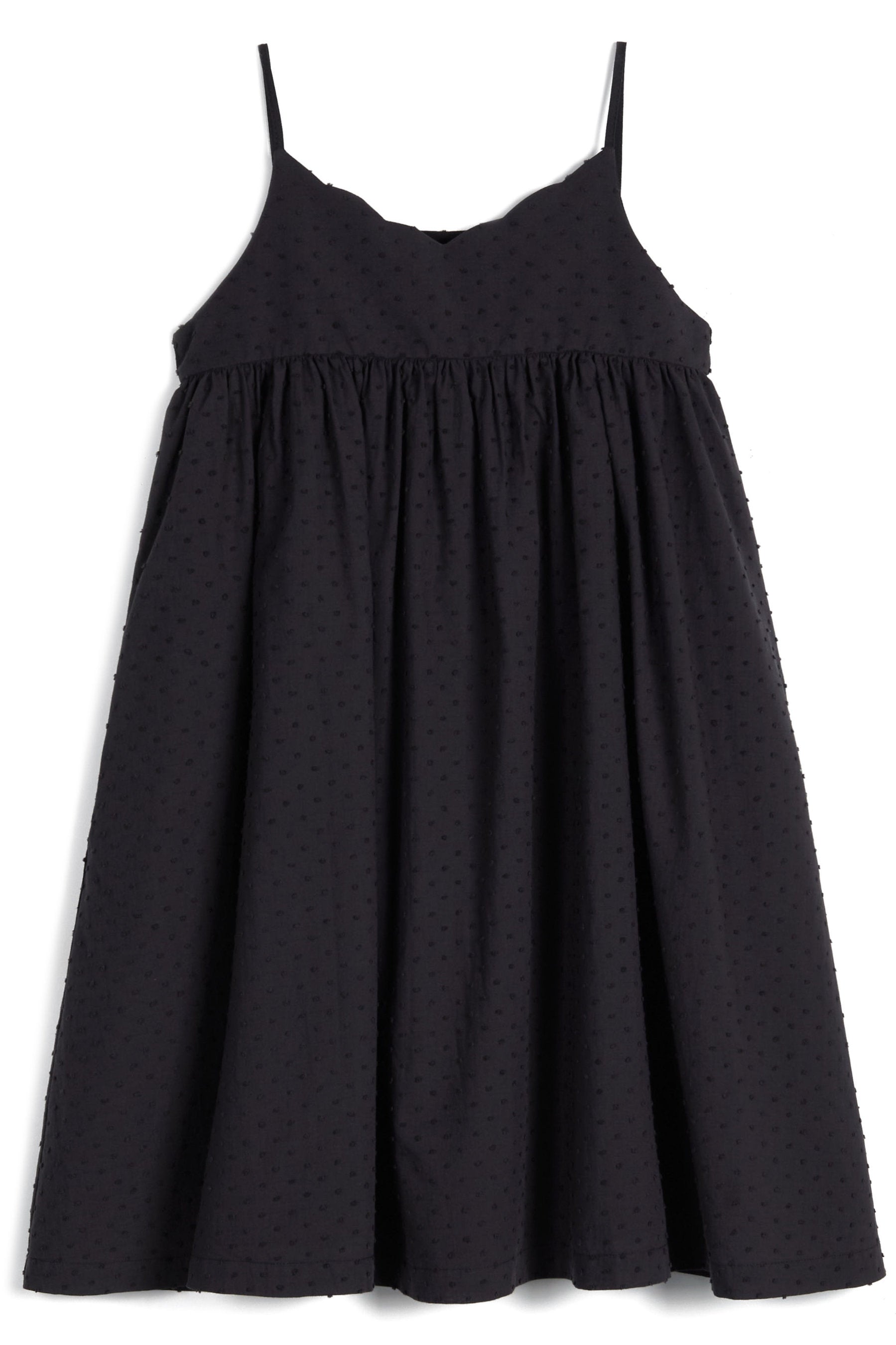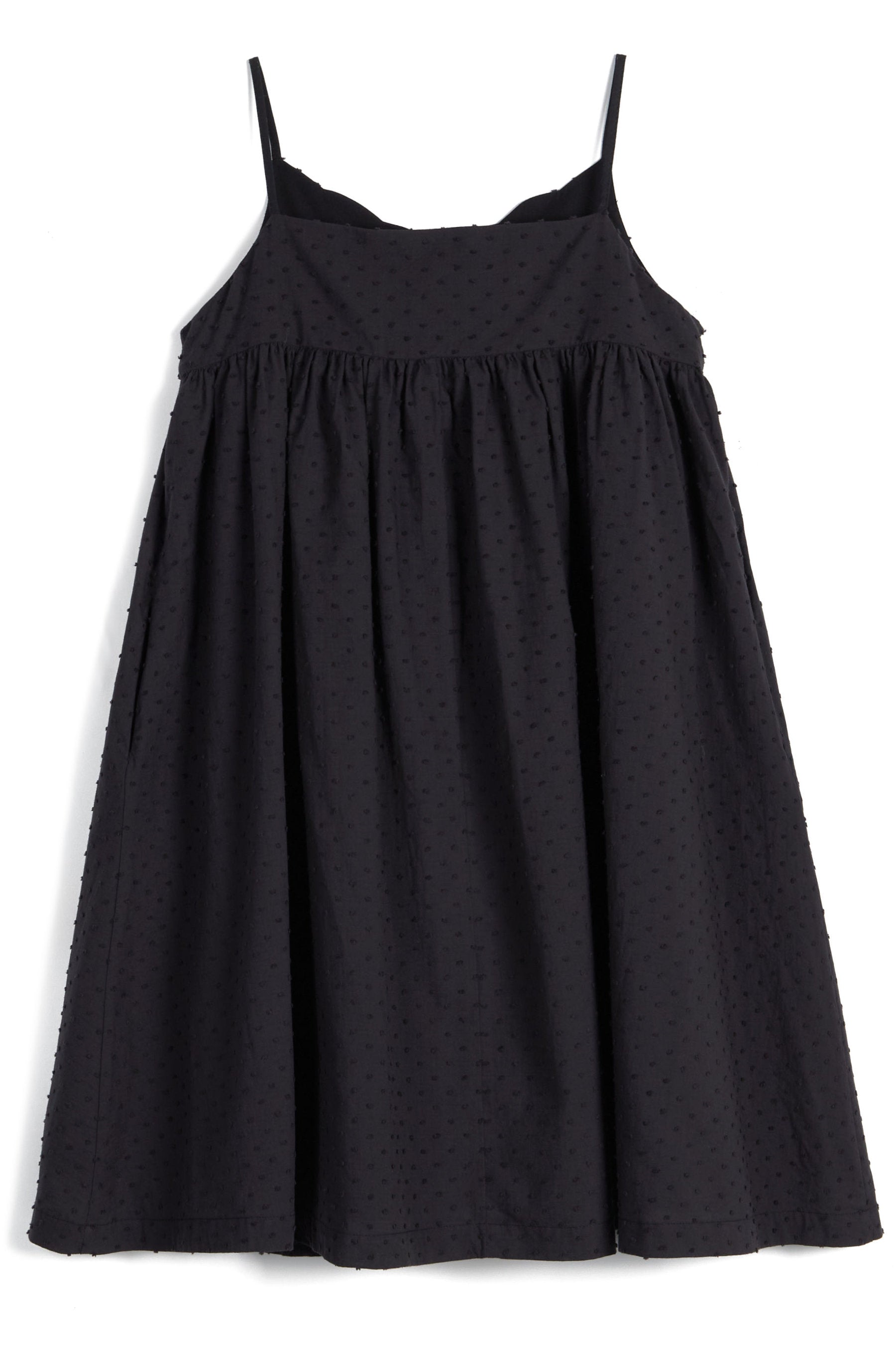 Sundress with thin straps, scalloped neckline, and inner side pockets