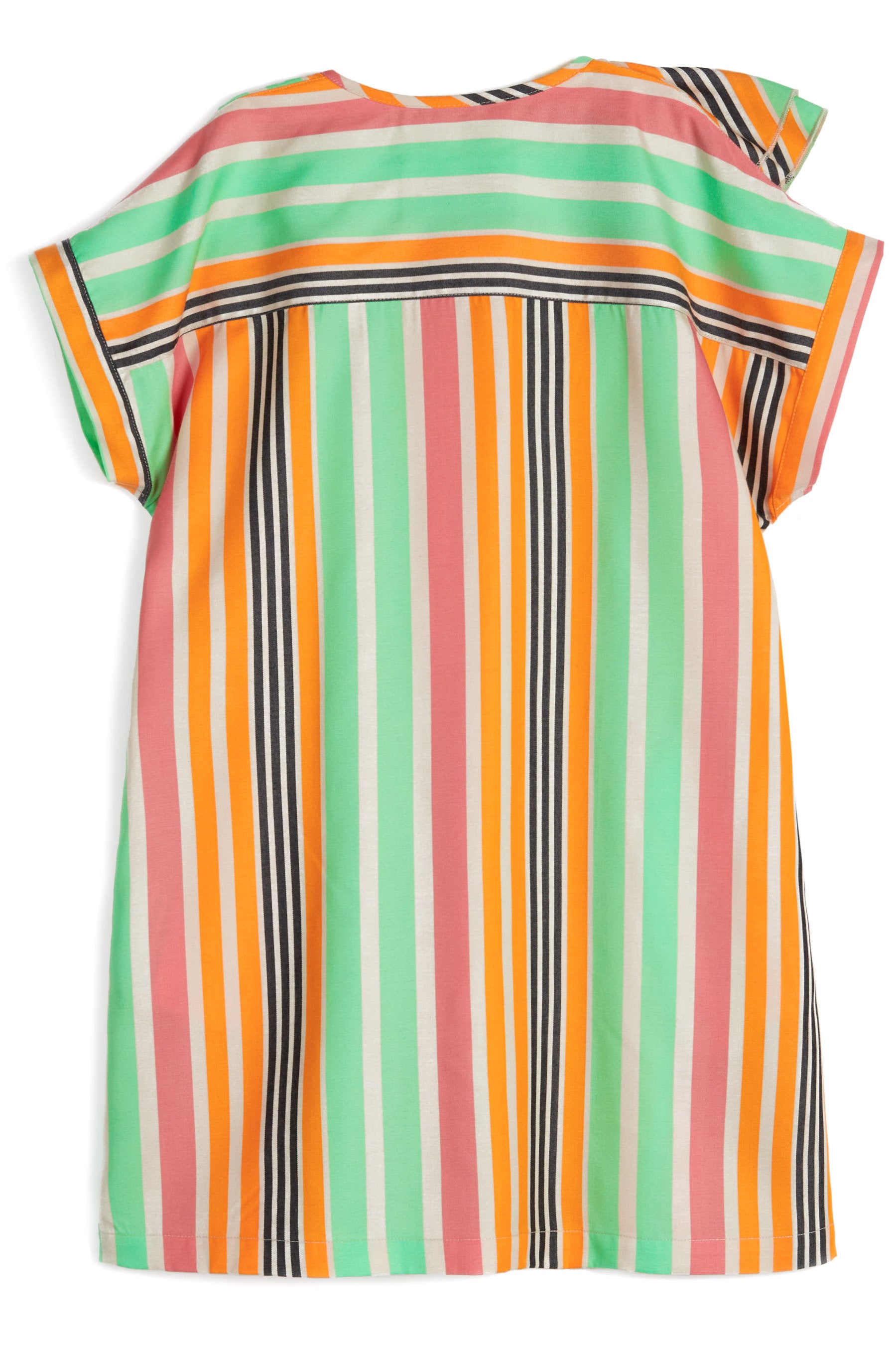 Lyocell short sleeved dress with gathered detail on shoulder, inner side pockets and front buttons