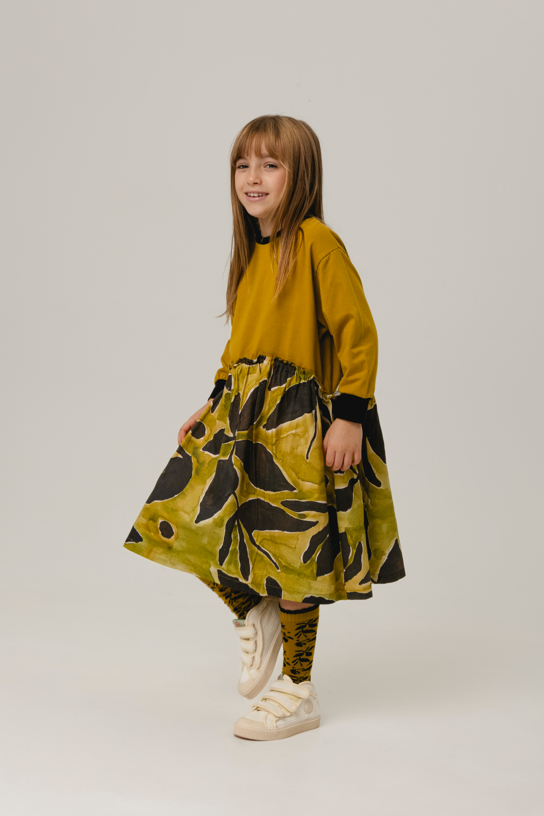 Clara is 123cm tall and is wearing size 6Y