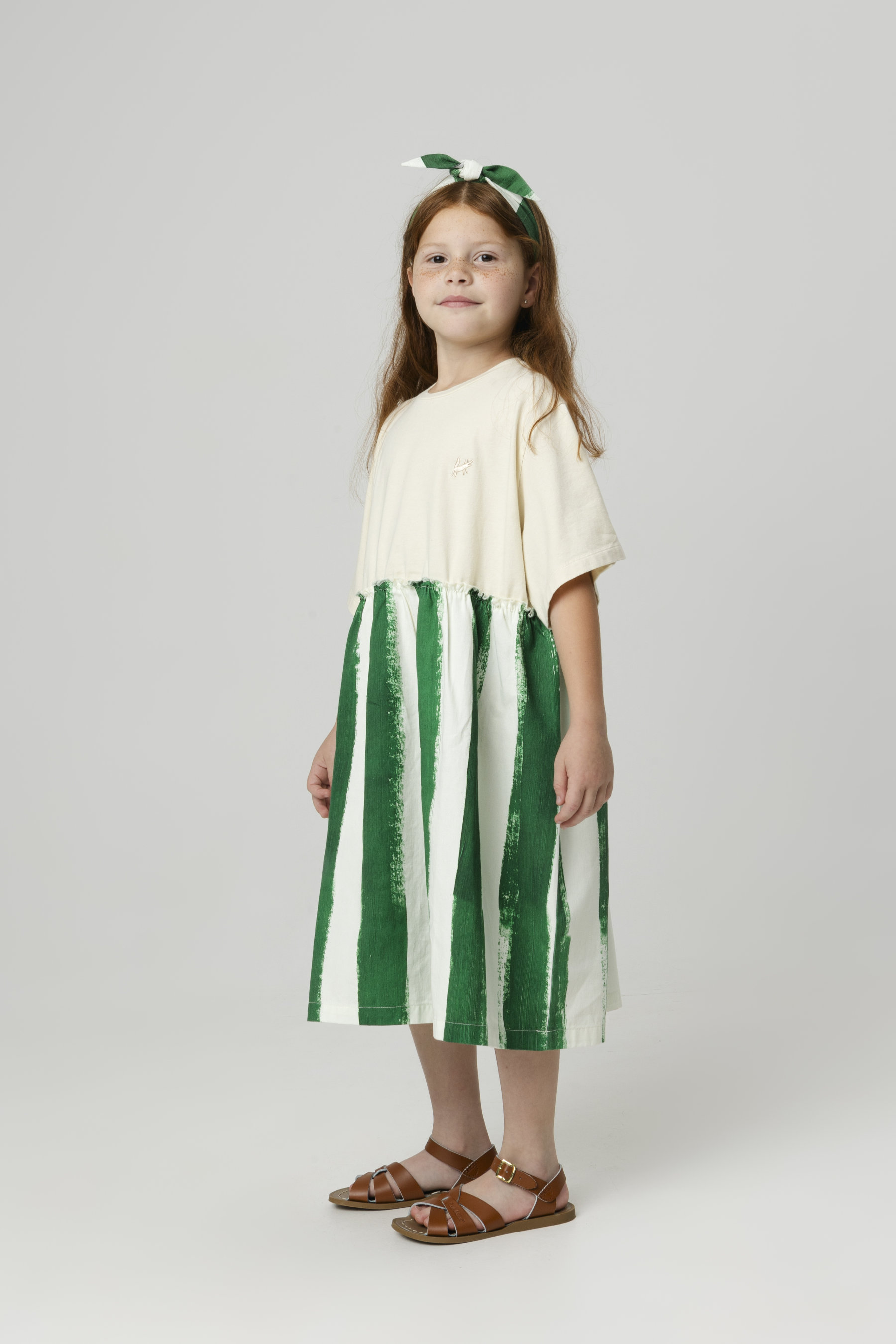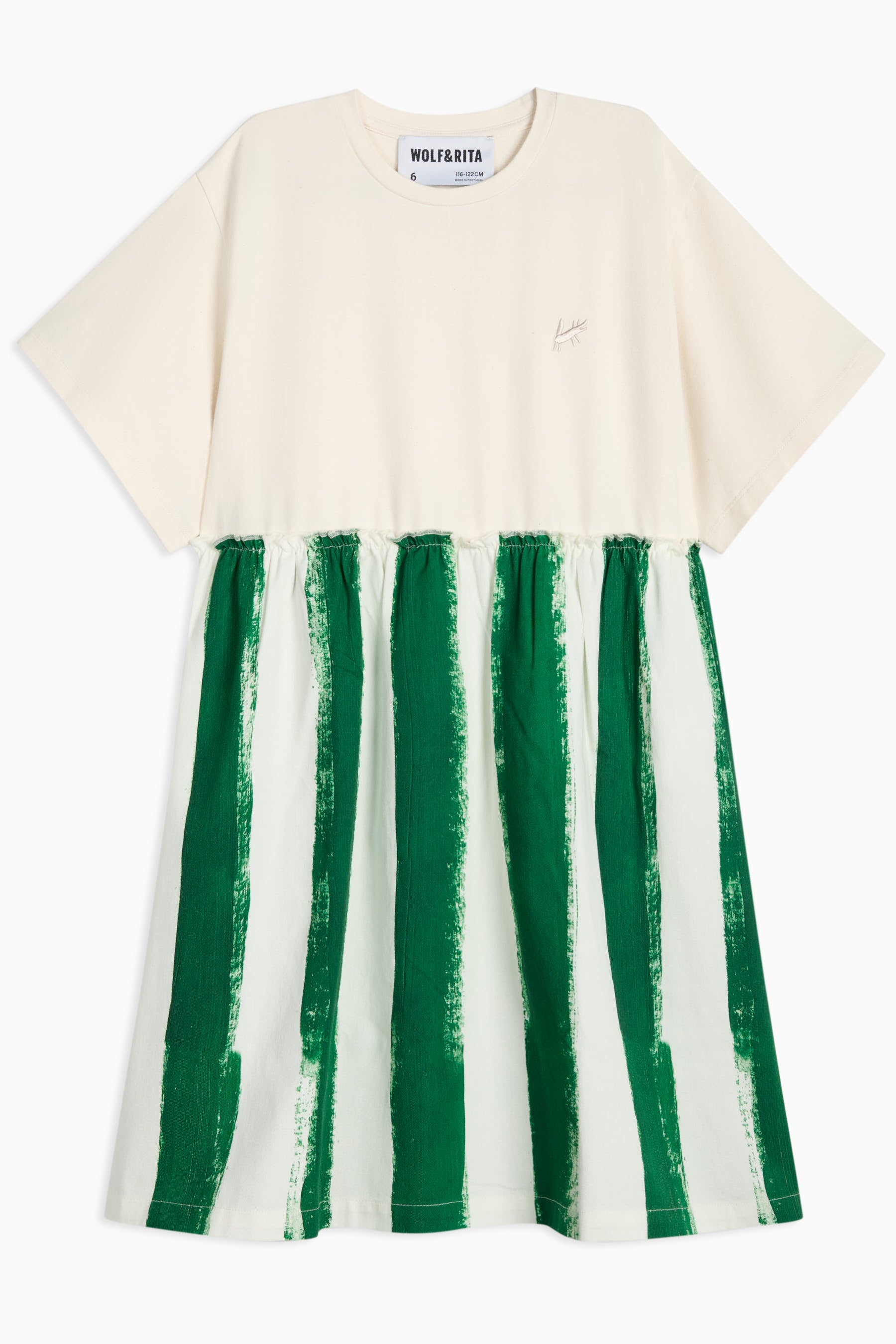 T-shirt dress with contrasted skirt and small embroidered mascot