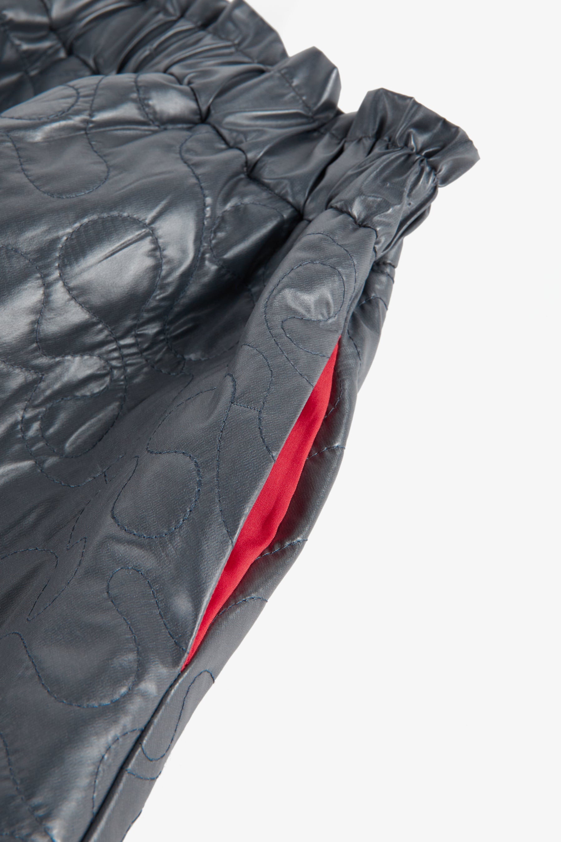Below the knee flared skirt, padded, with custom WR pattern and contrasted lining, side pockets, elastic waist