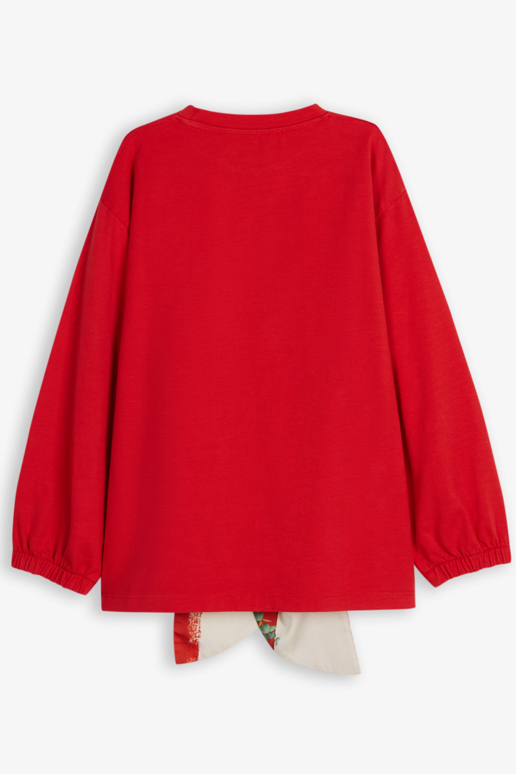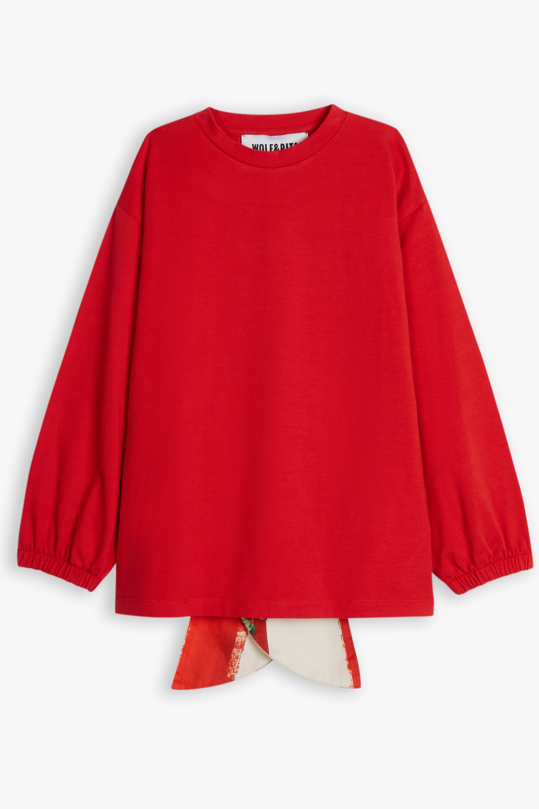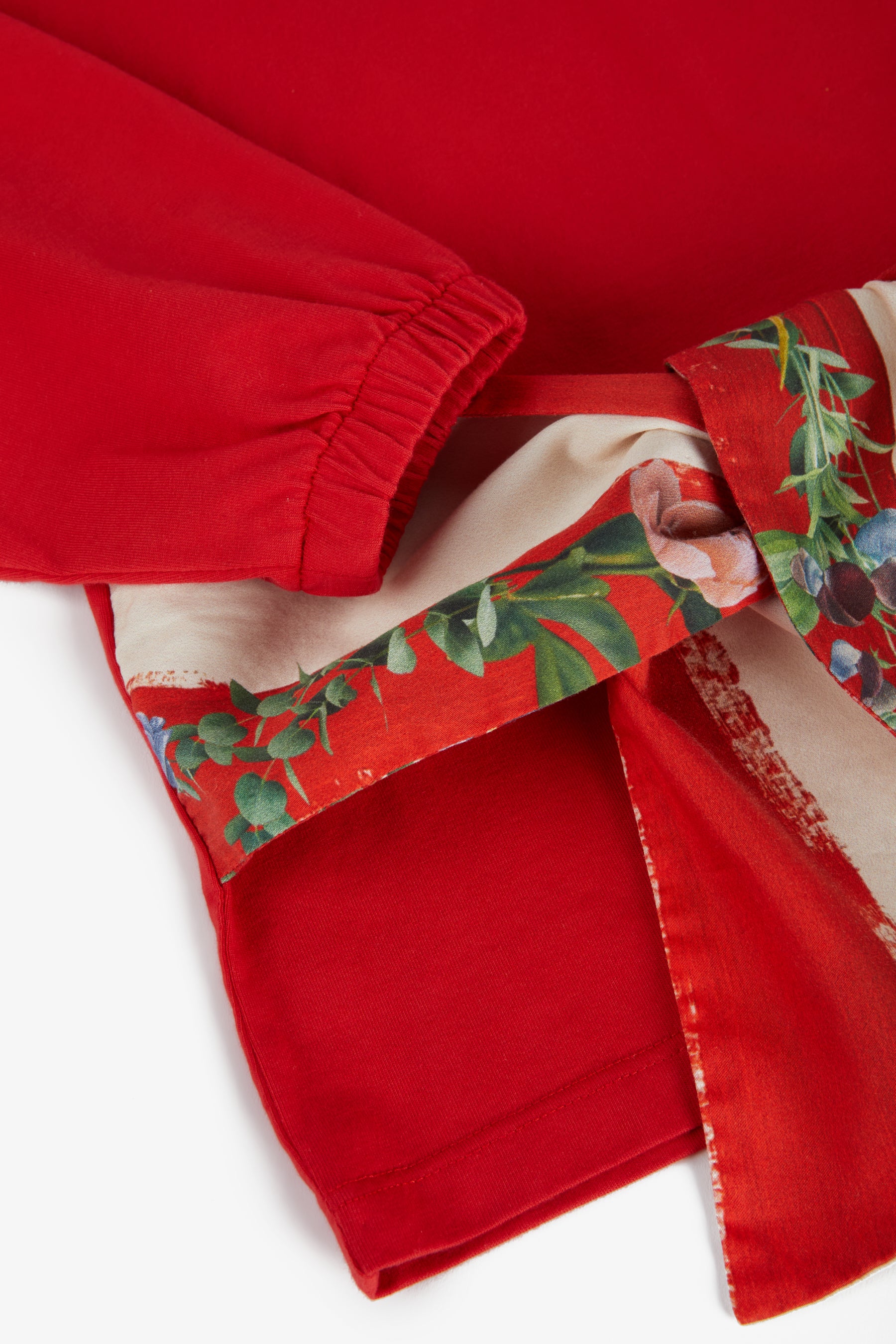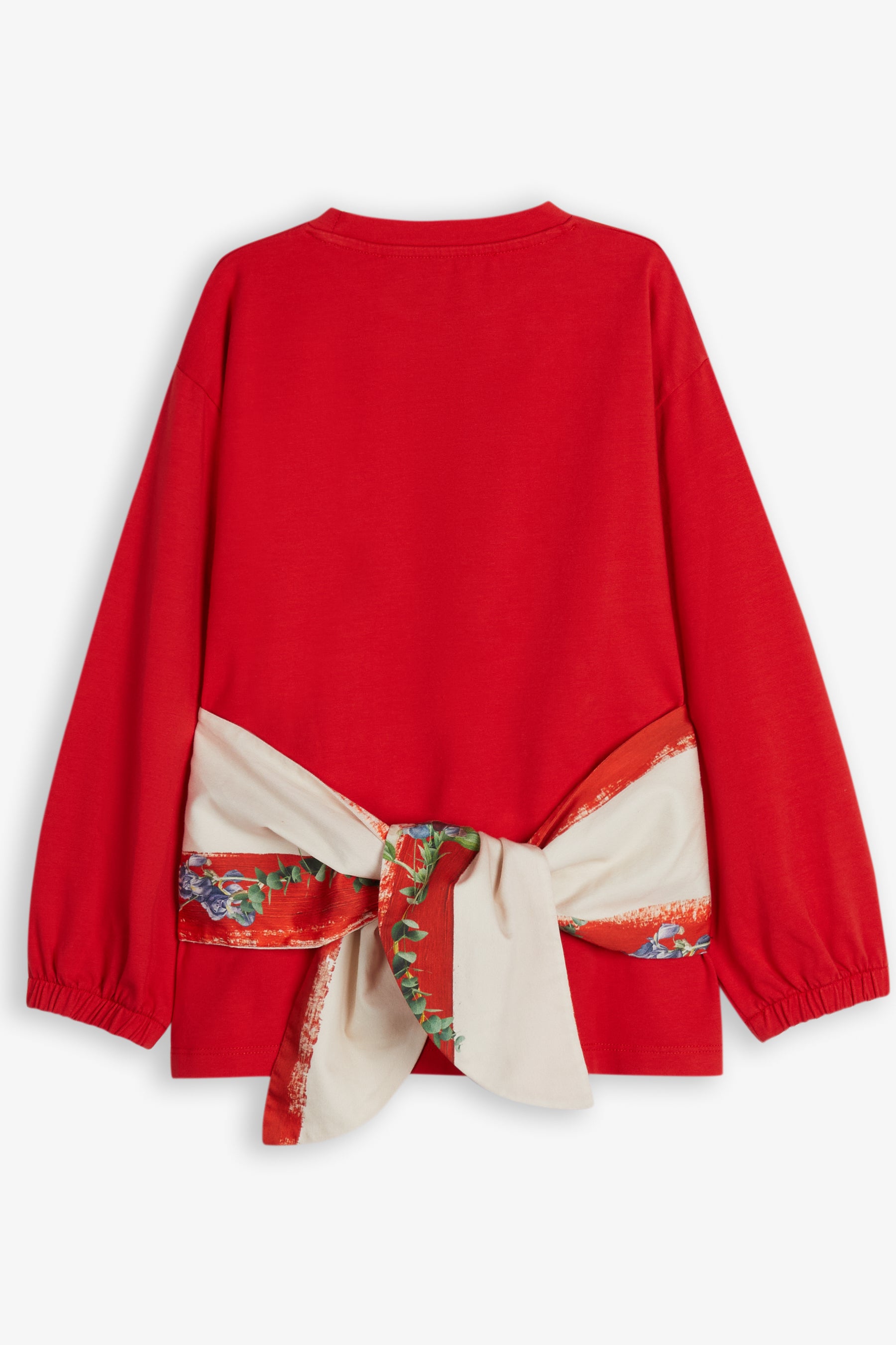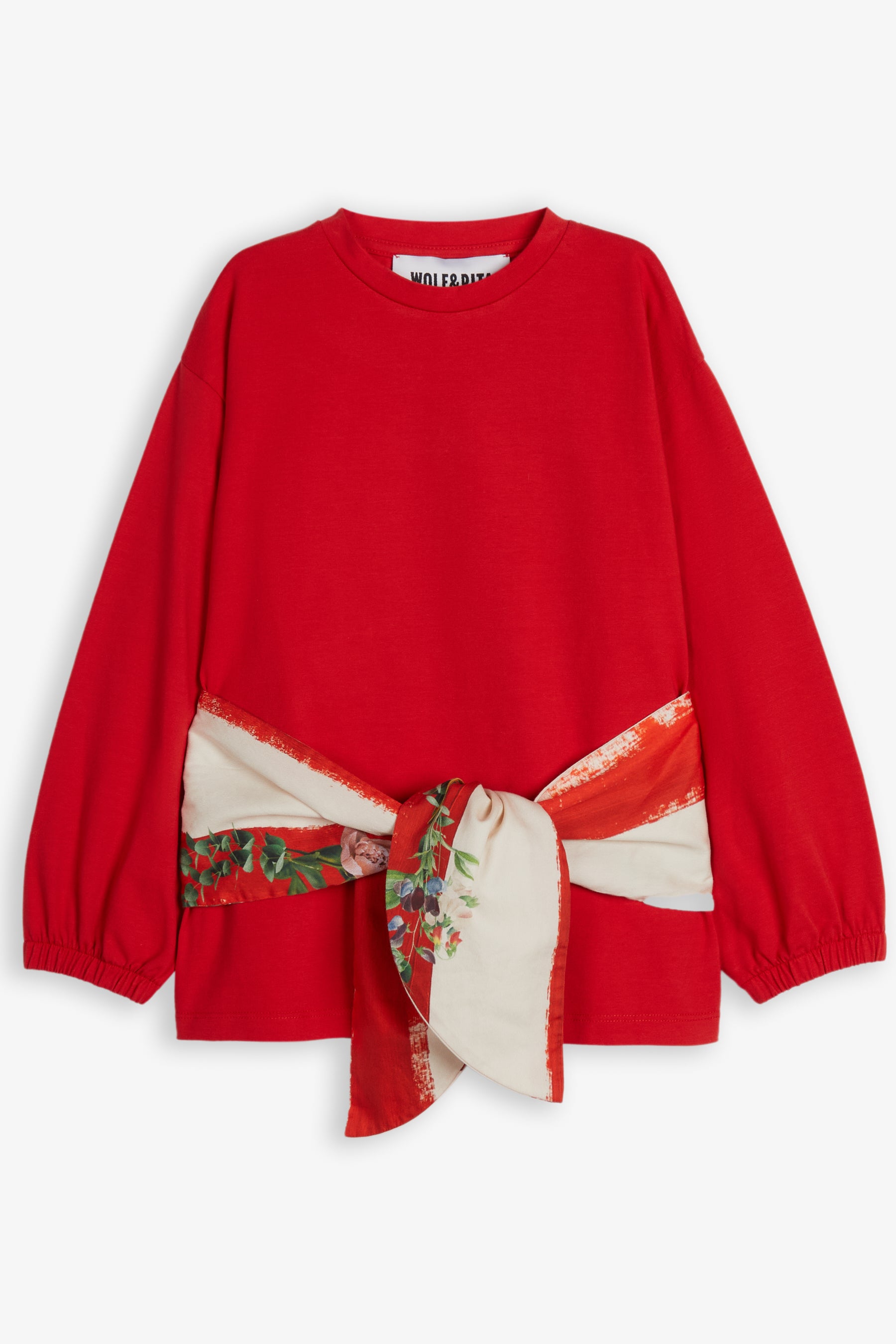 Long sleeved t-shirt, elastic cuffs, contrasted belt (tie back or front)