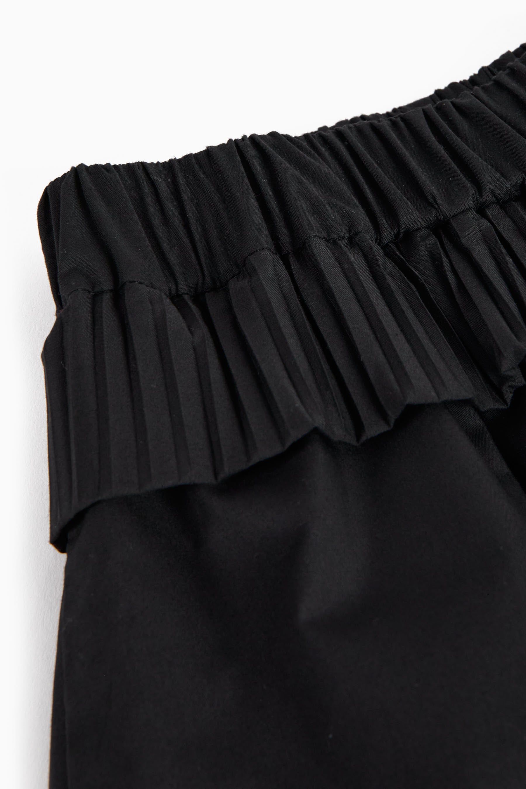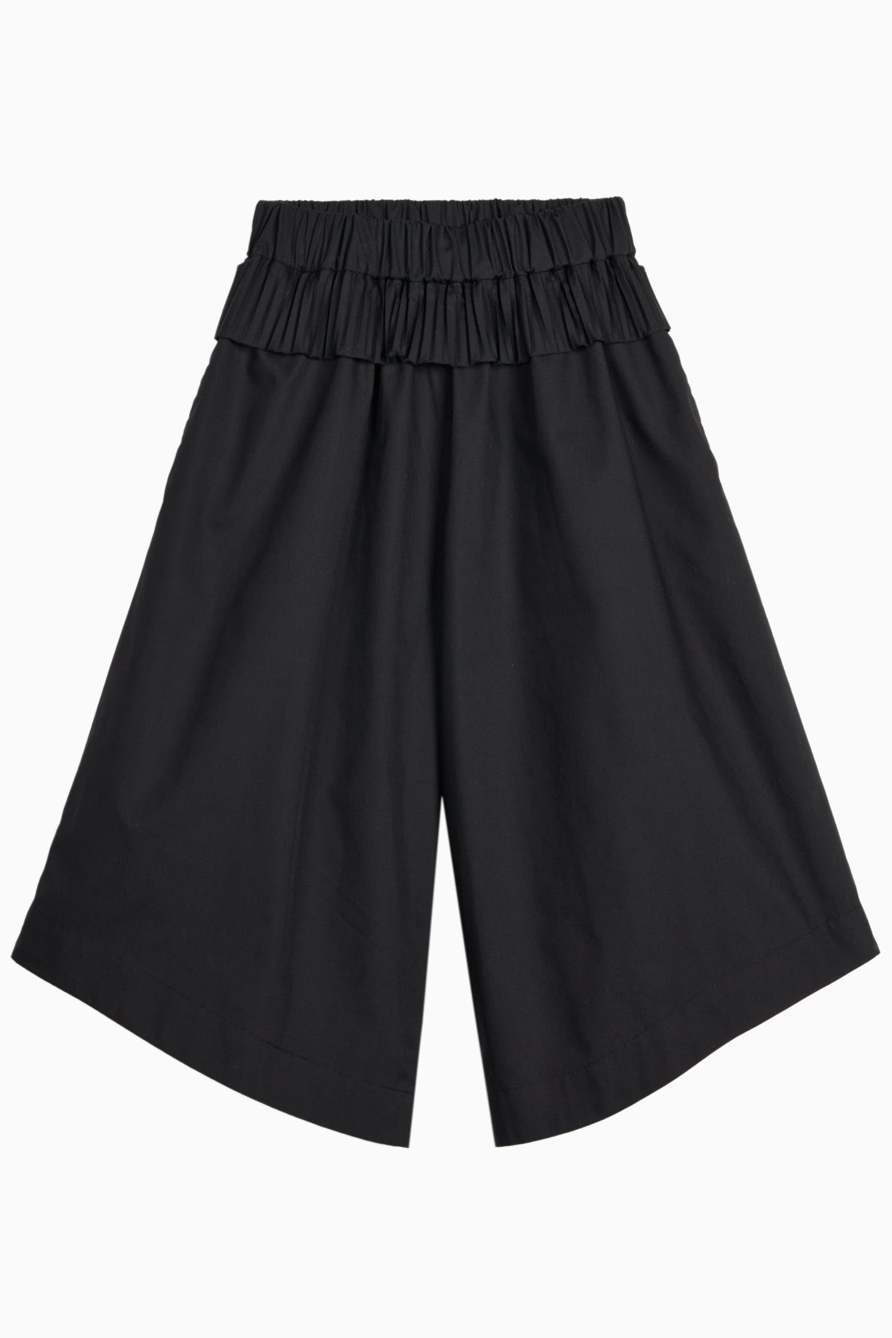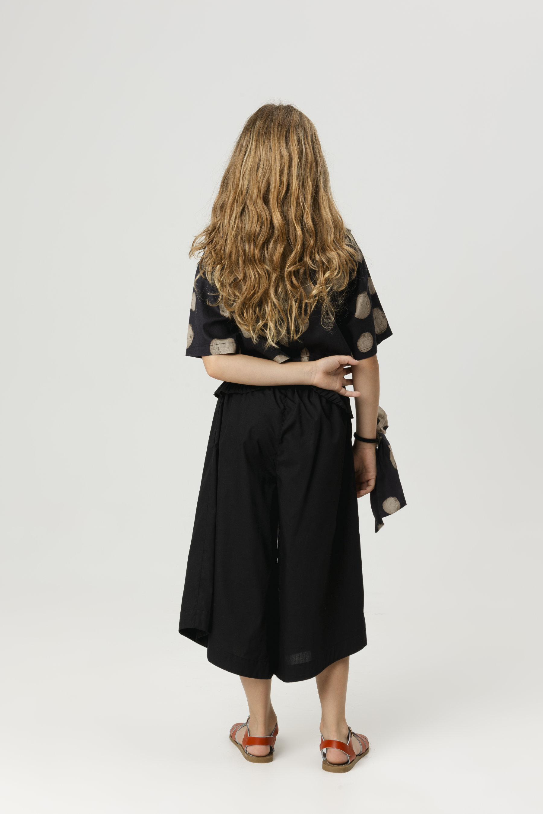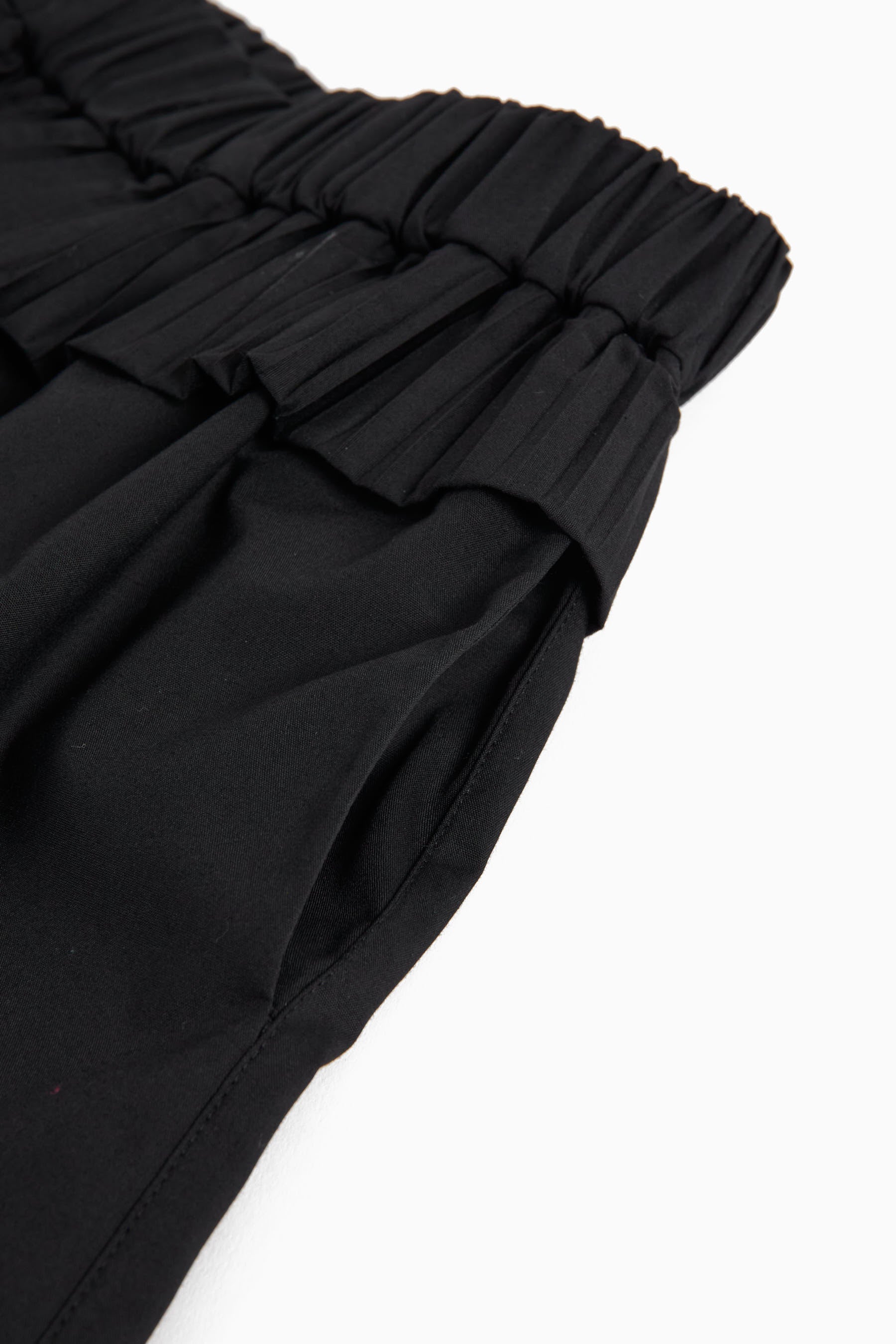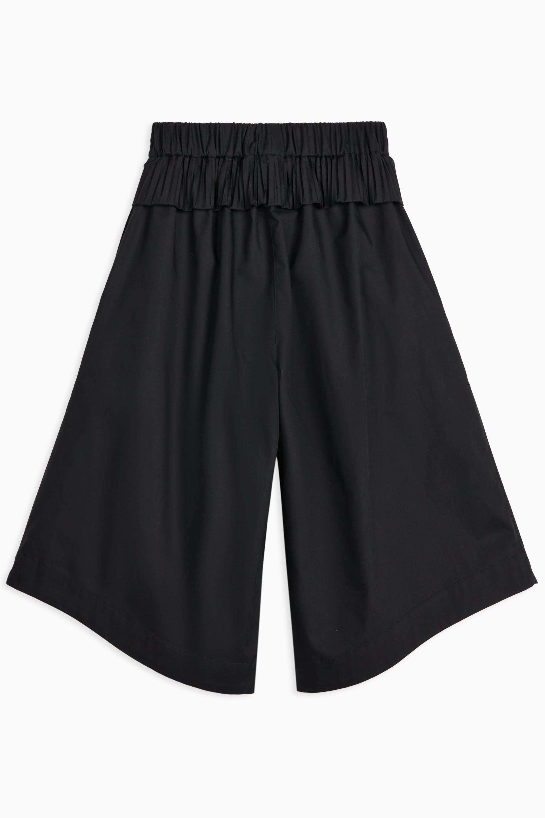 Wide-leg cropped asymmetric trousers, pleated fabric detail and seam pockets