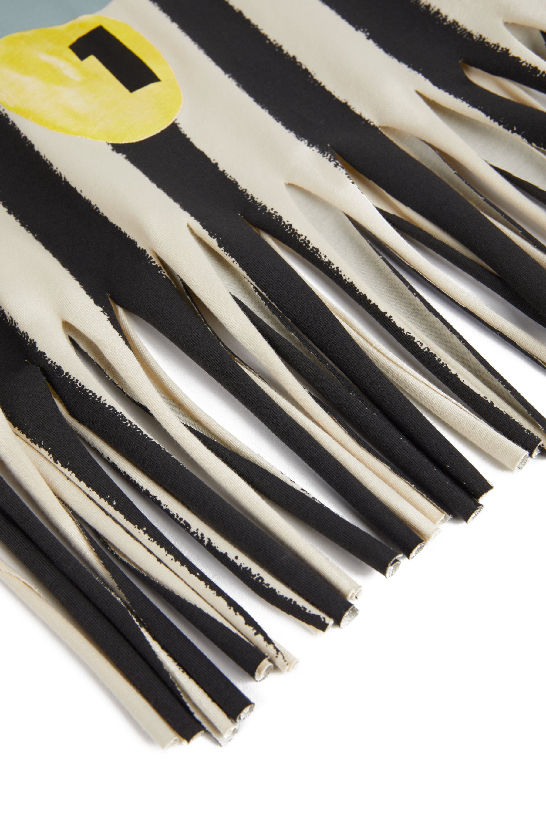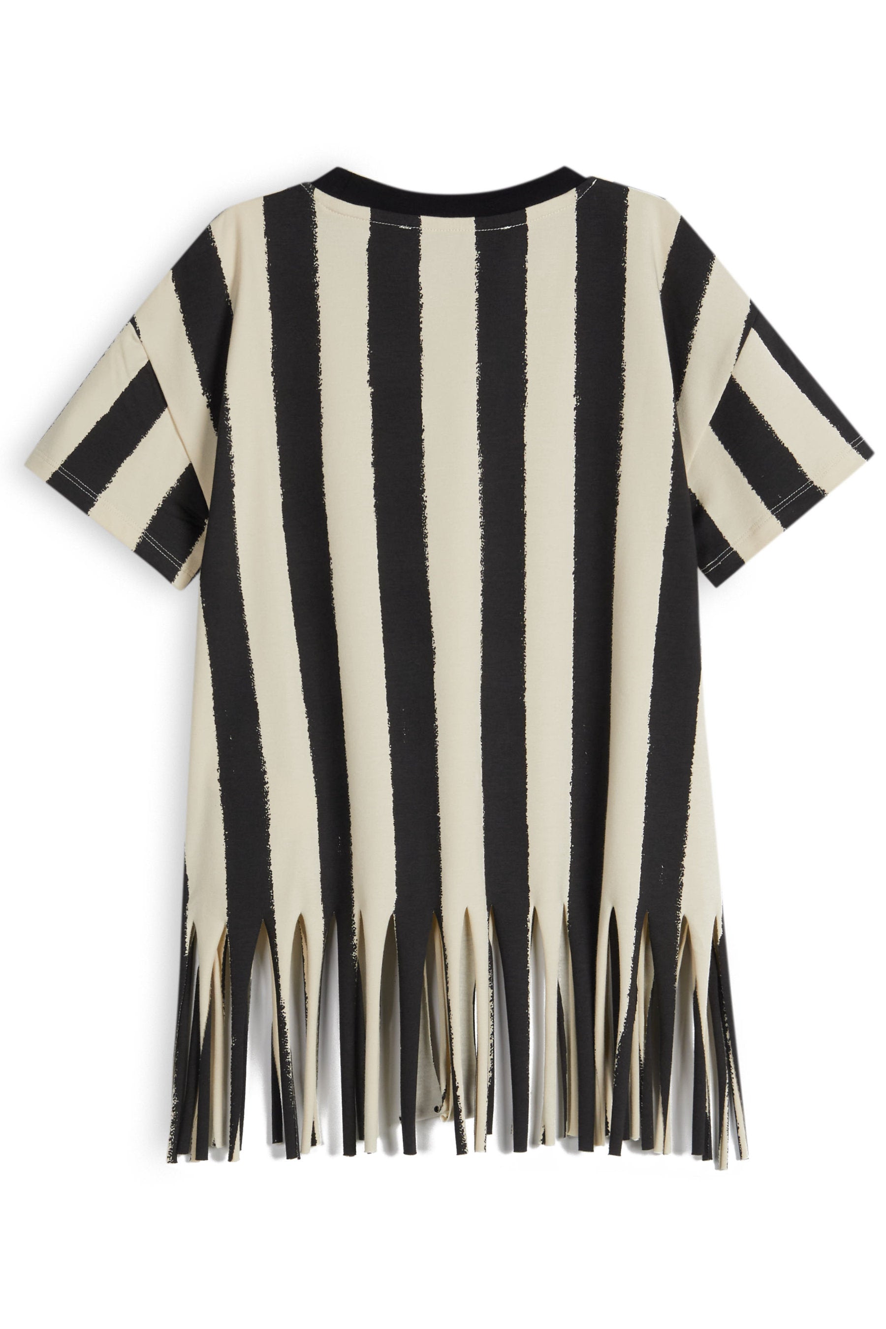 Short sleeved, relaxed fit tunic with print and fringe bottom