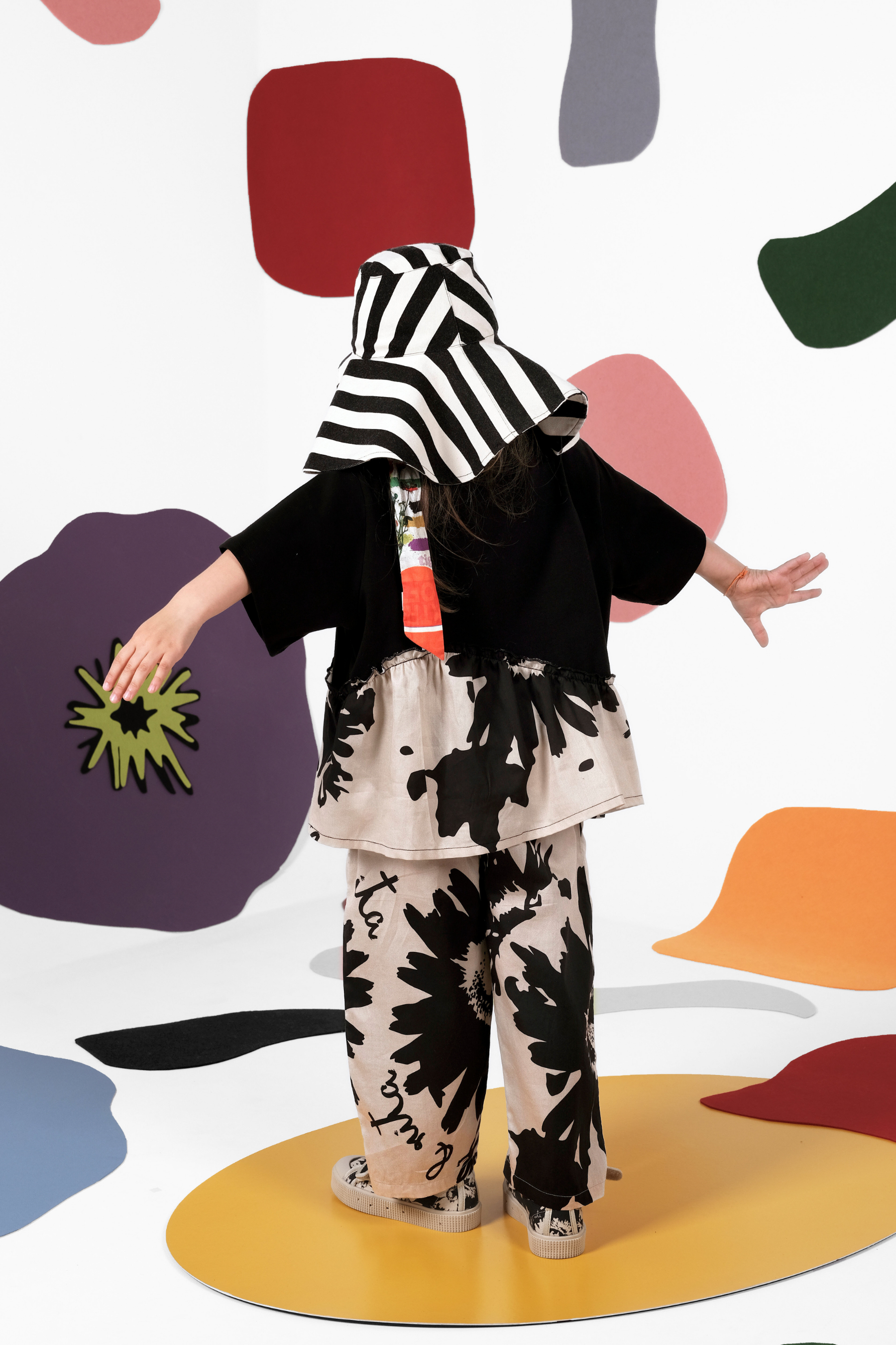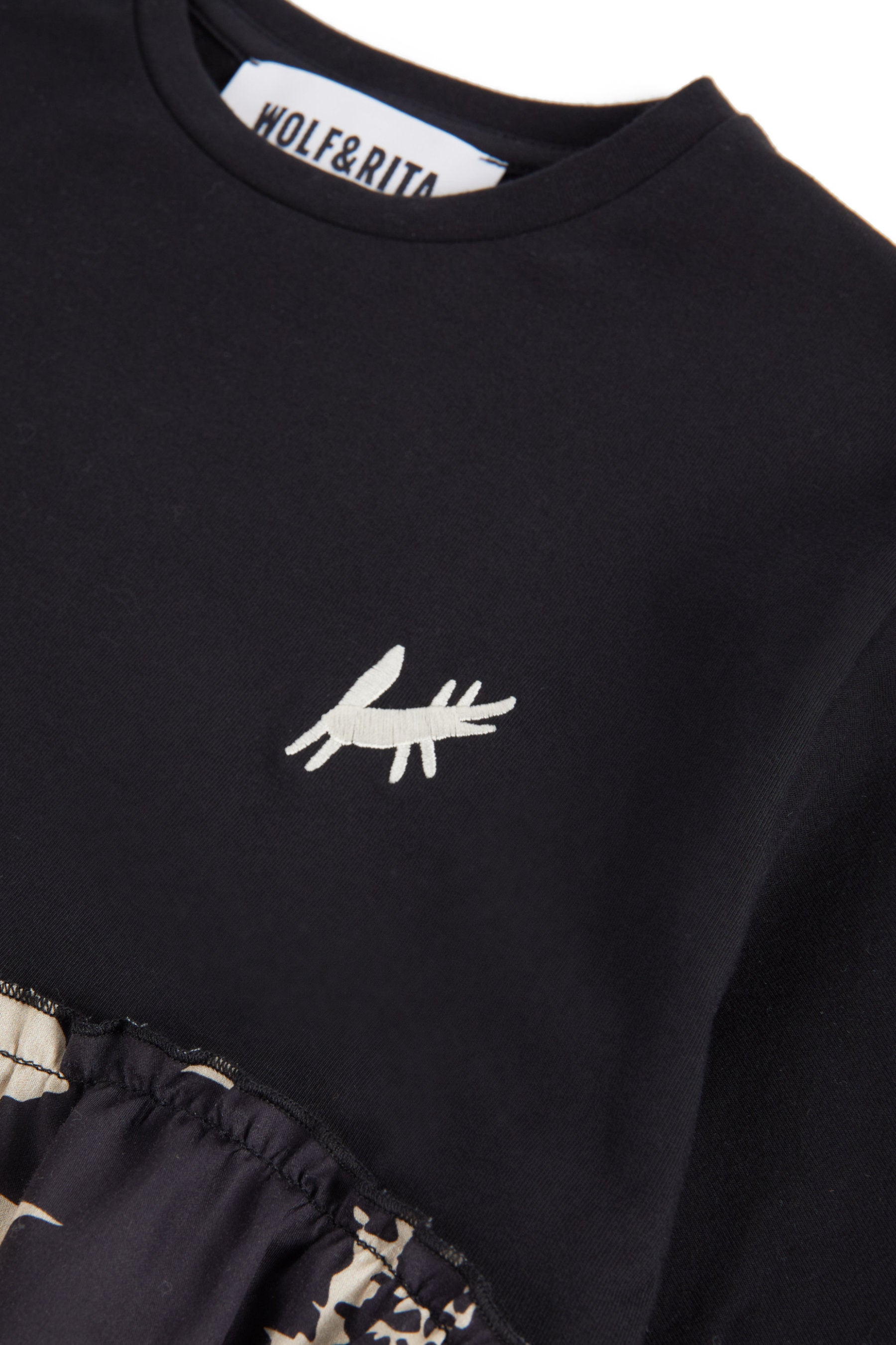 Short sleeved t-shirt with contrasted gathered bottom and small mascot embroidery