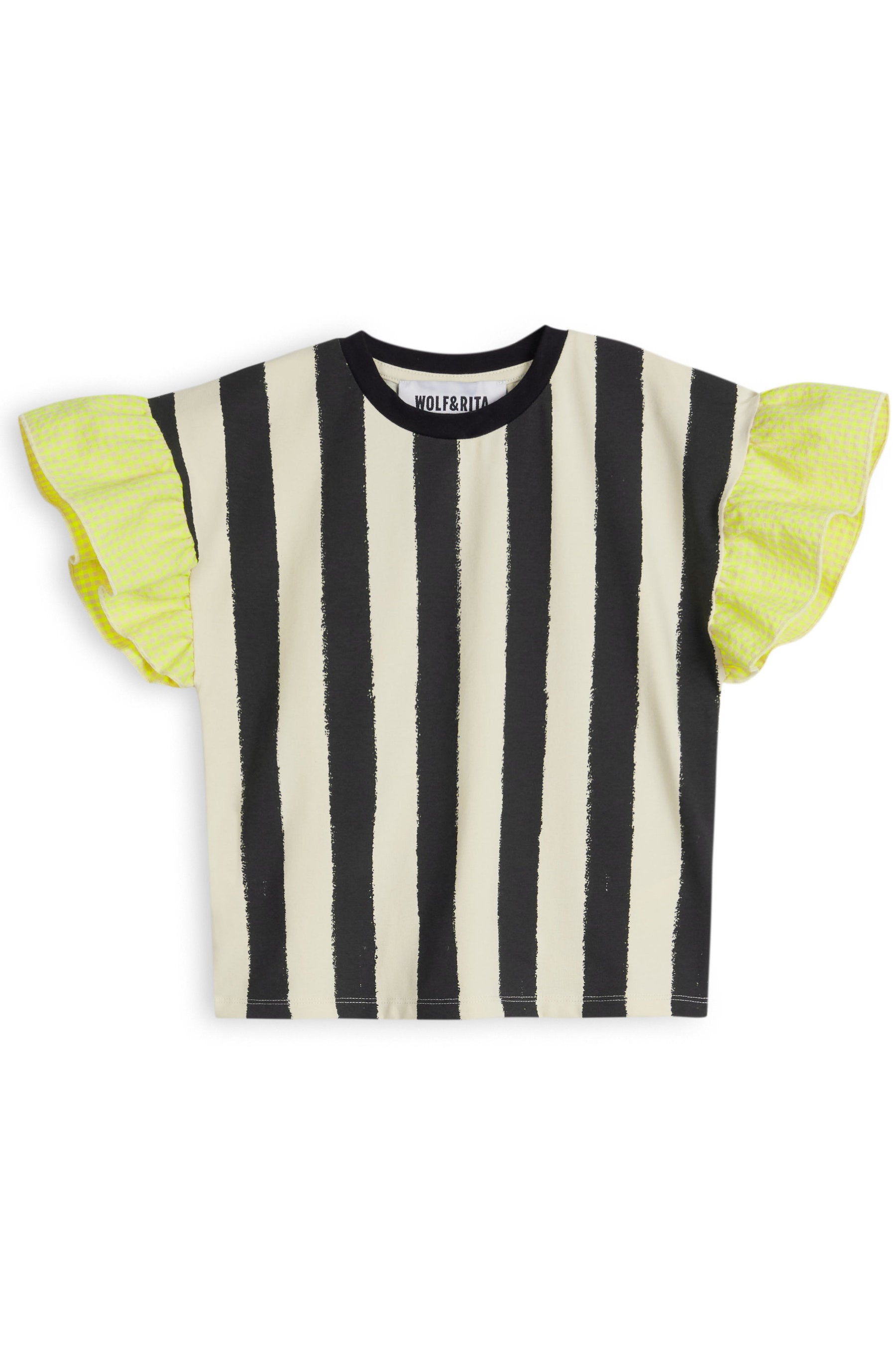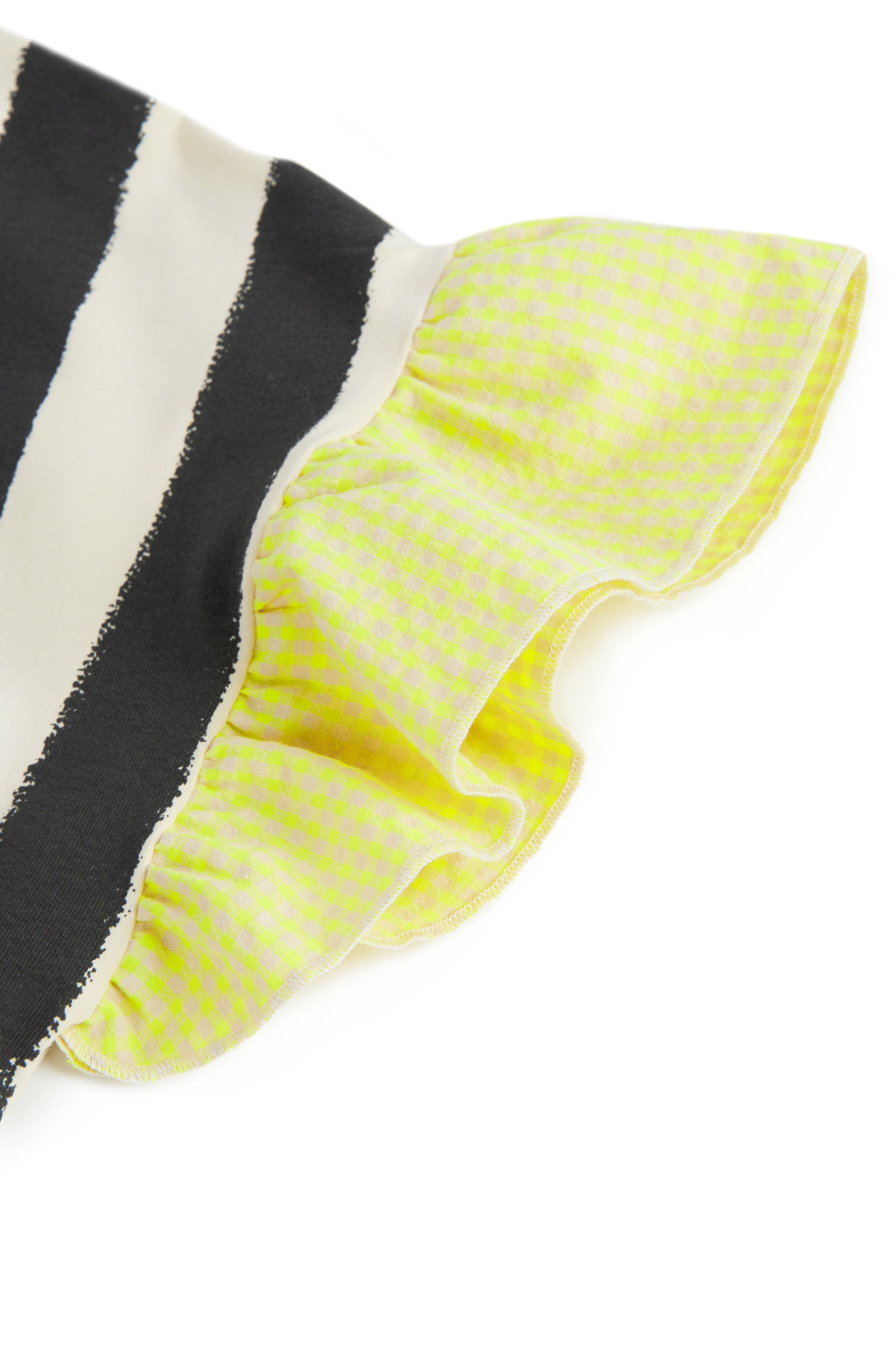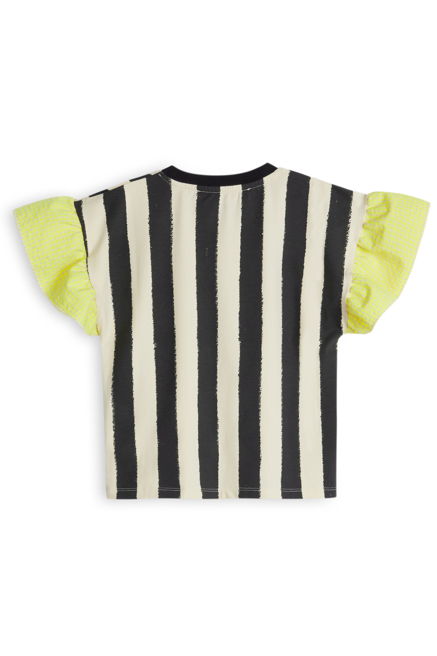 T-shirt with frilled contrasted sleeves and contrasted collar