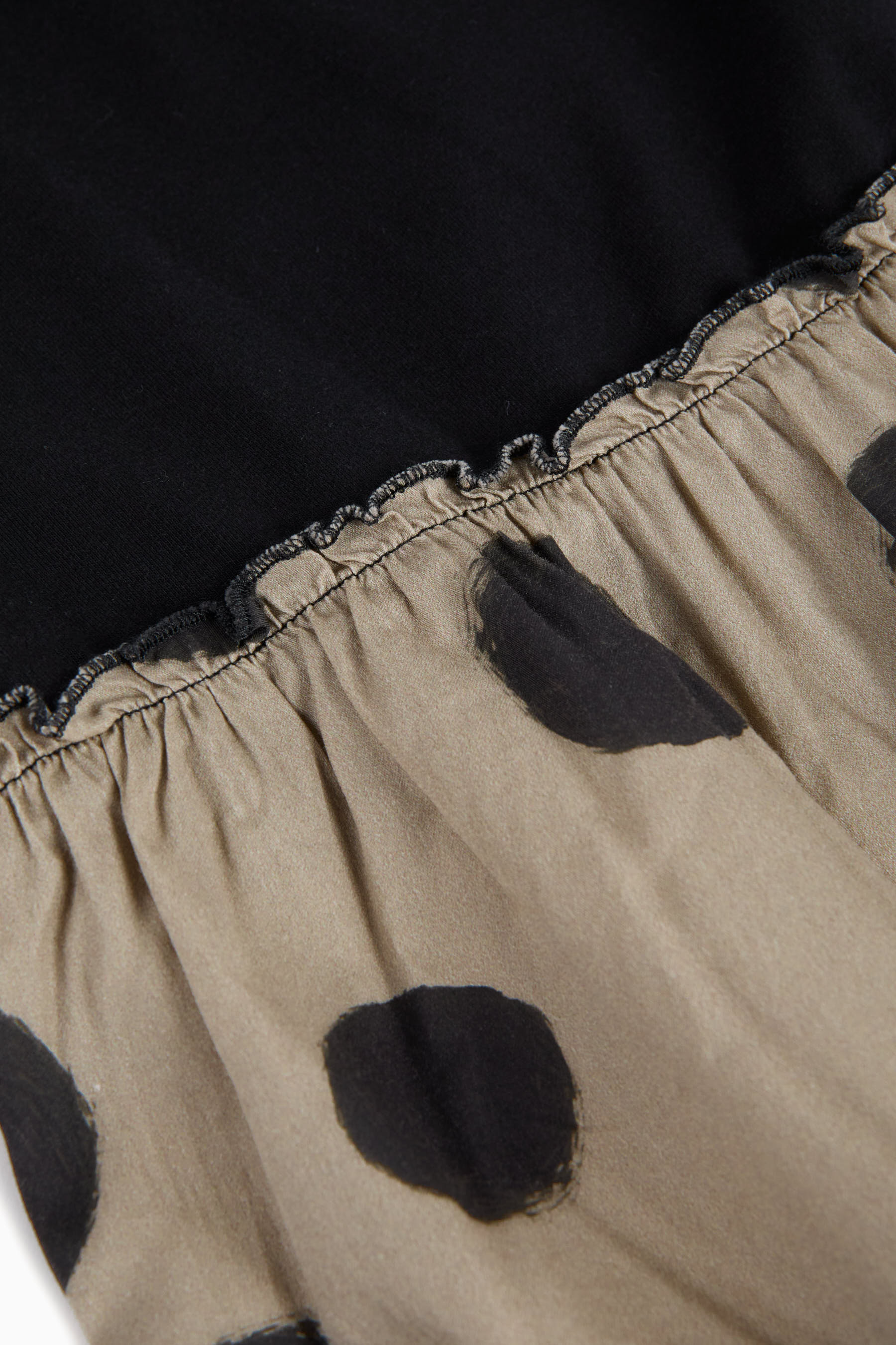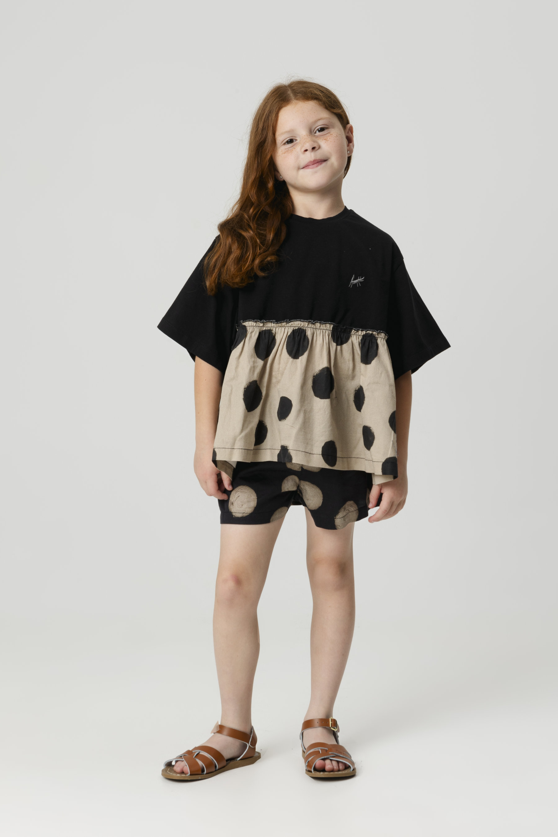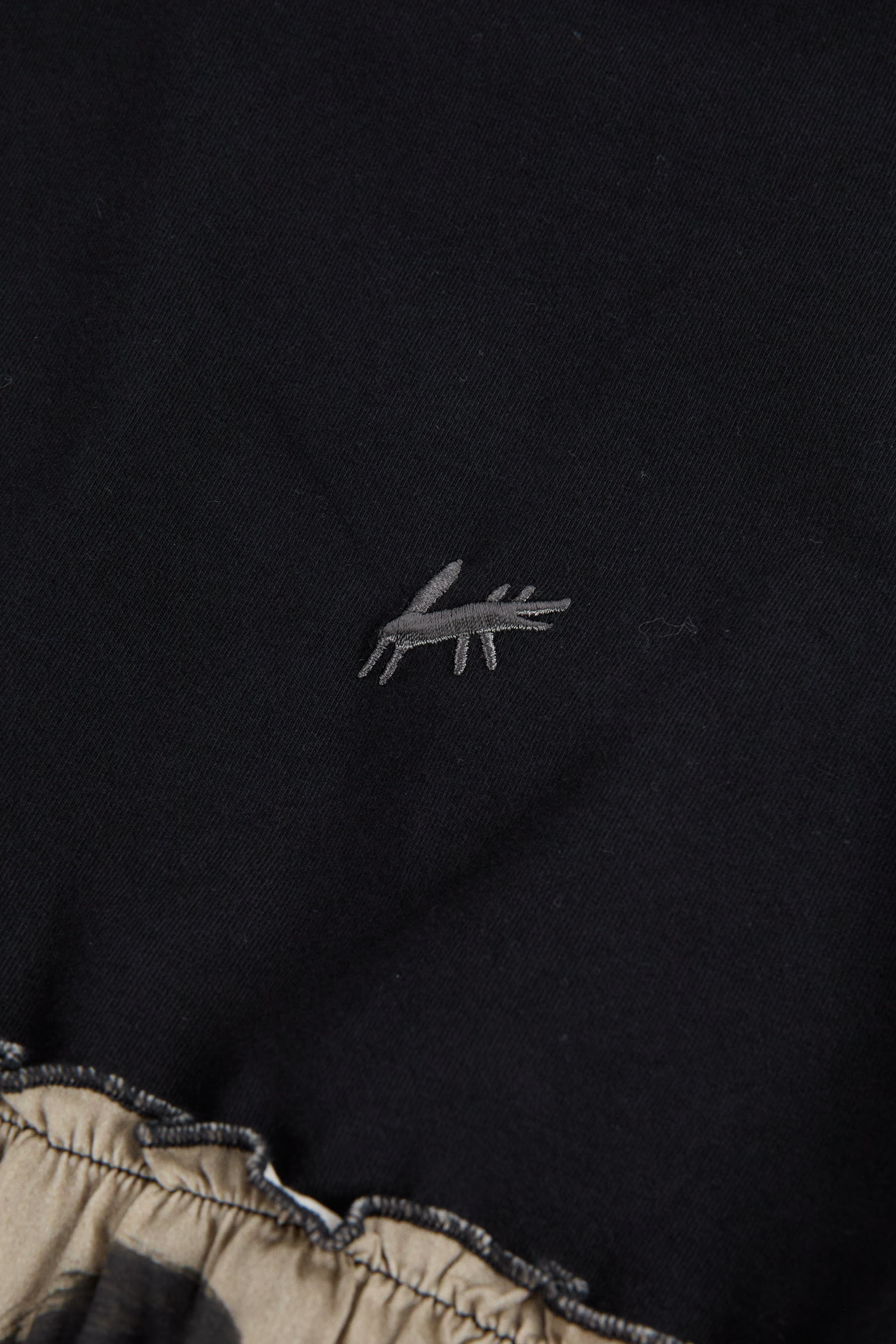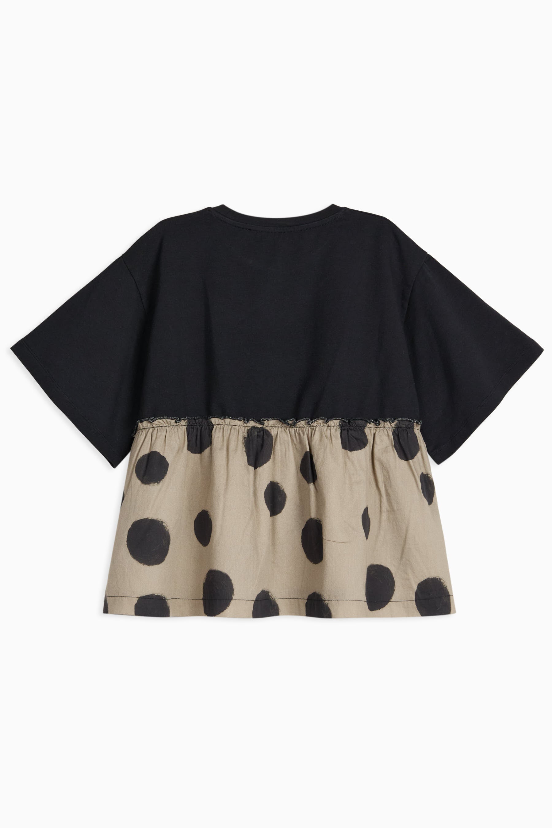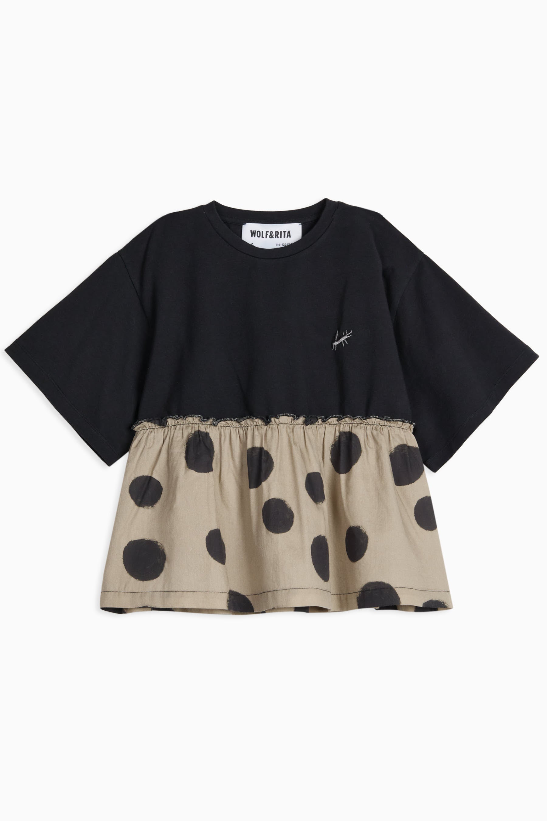 Short sleeved t-shirt with contrasted gathered bottom and small mascot embroidery