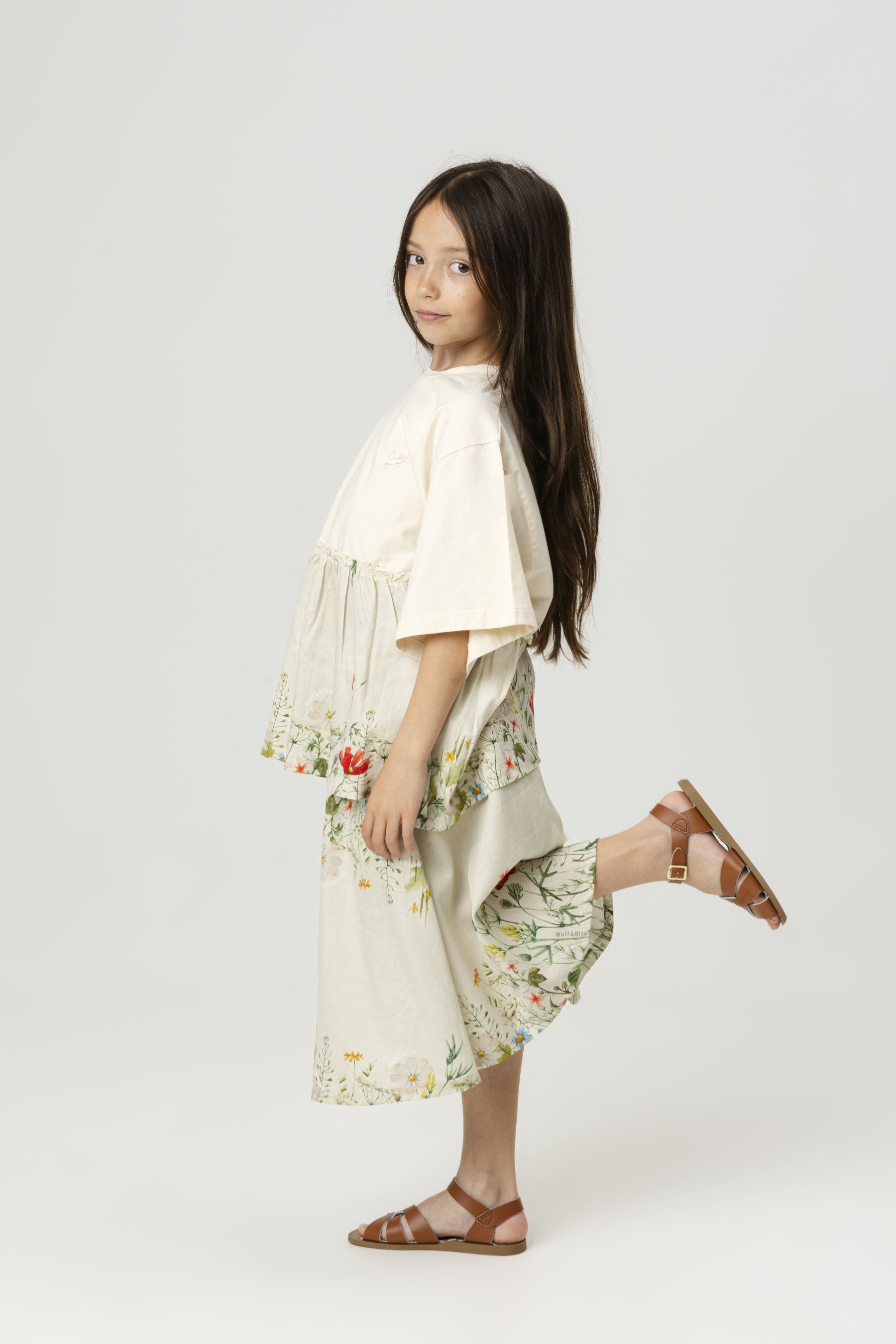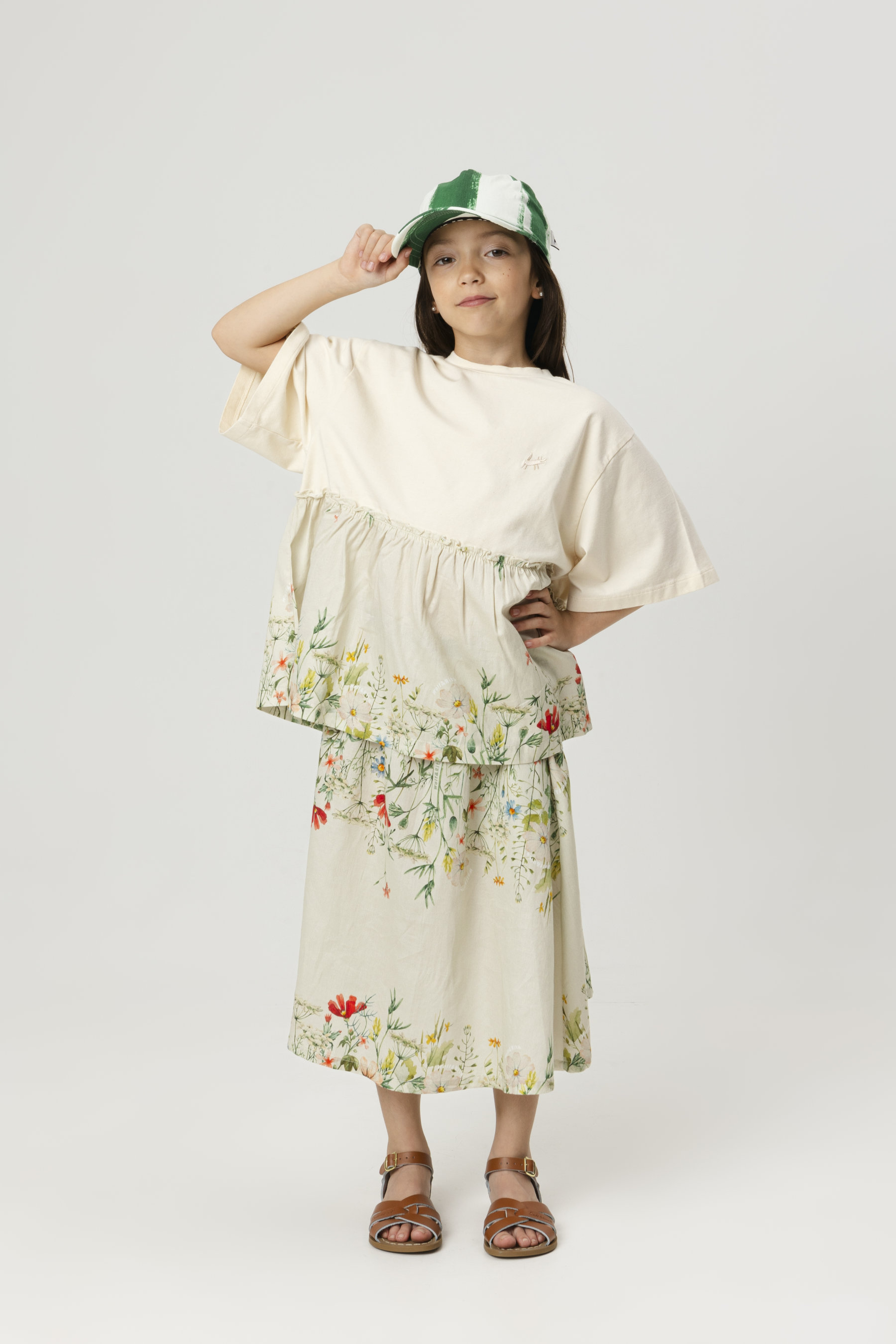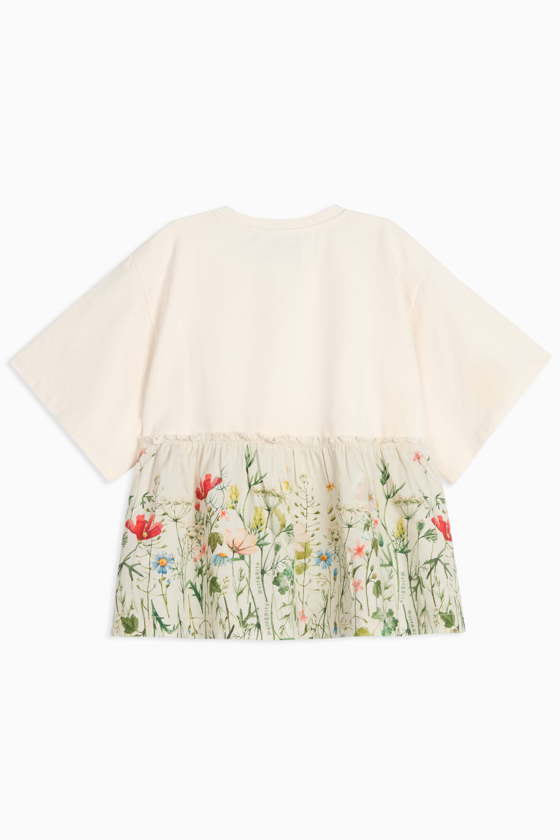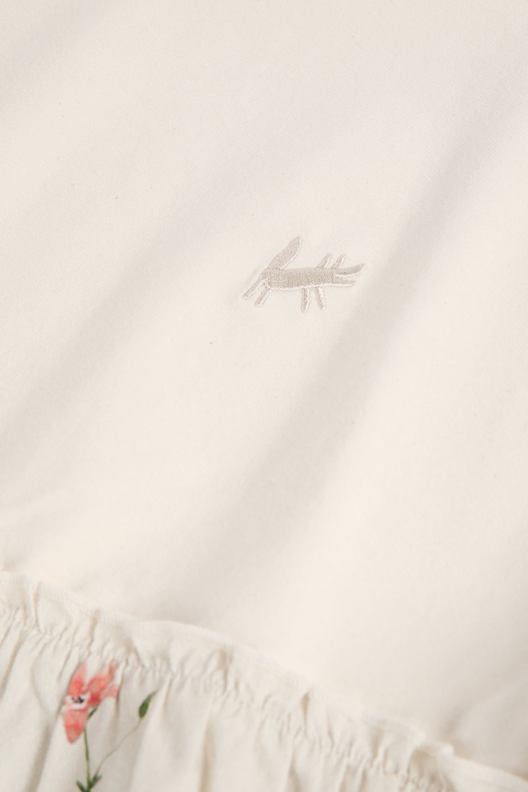 Short sleeved t-shirt with contrasted gathered bottom and small mascot embroidery