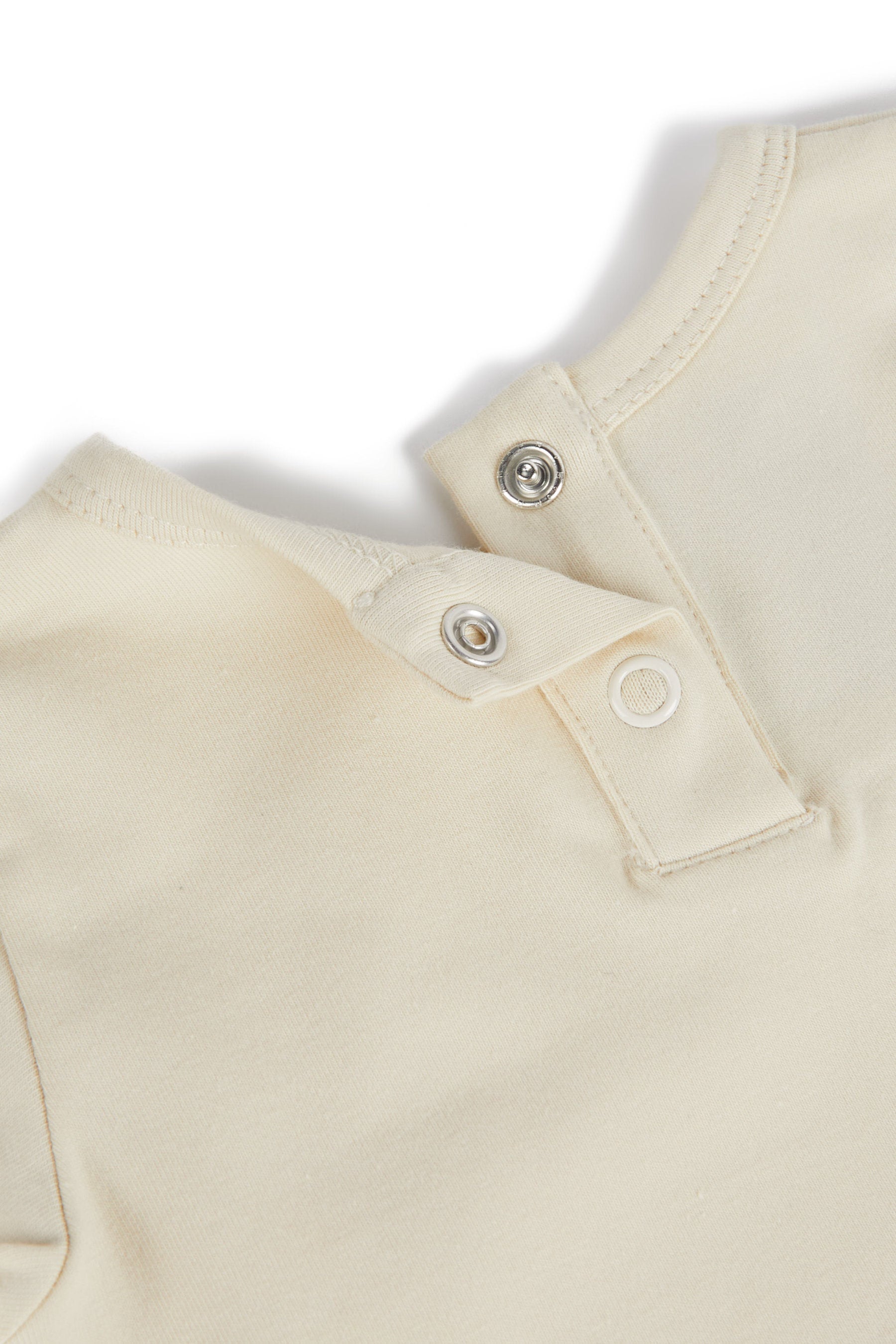 Short sleeved bodysuit with removable collar and snap buttons between the legs