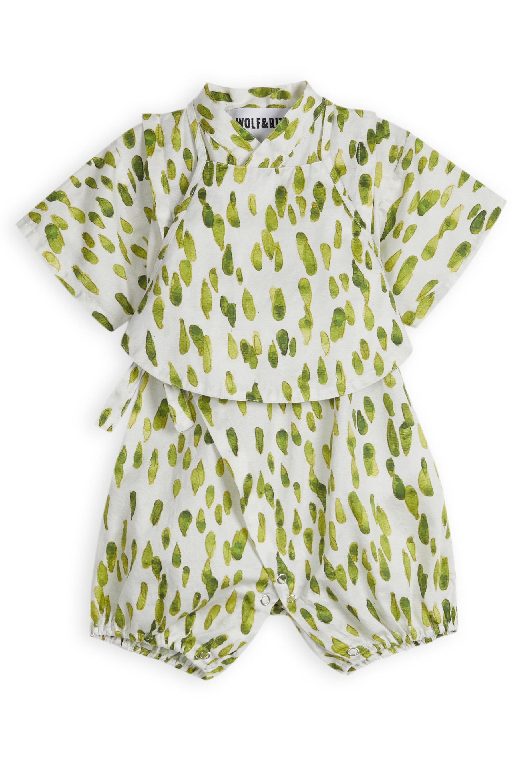 Classic babies Jinbei set, with kimono cross over style jumpsuit and bibe