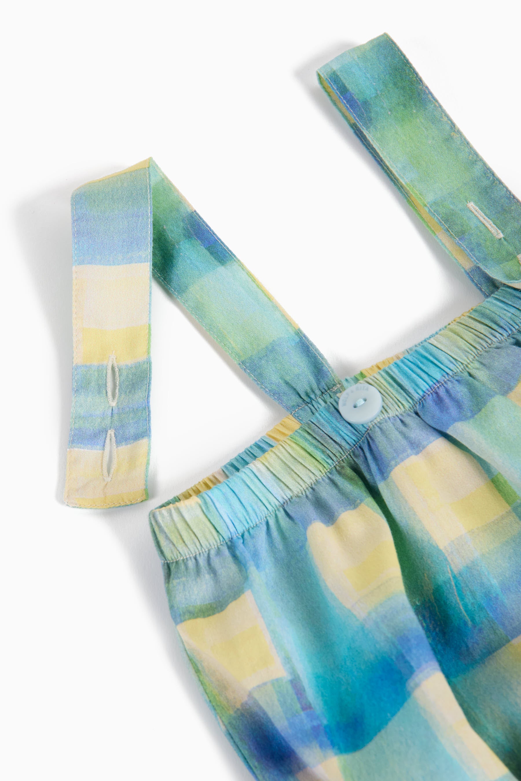 Sleeveless jumpsuit with frills on the legs, gathered (elastic) chest line and adjustable straps
