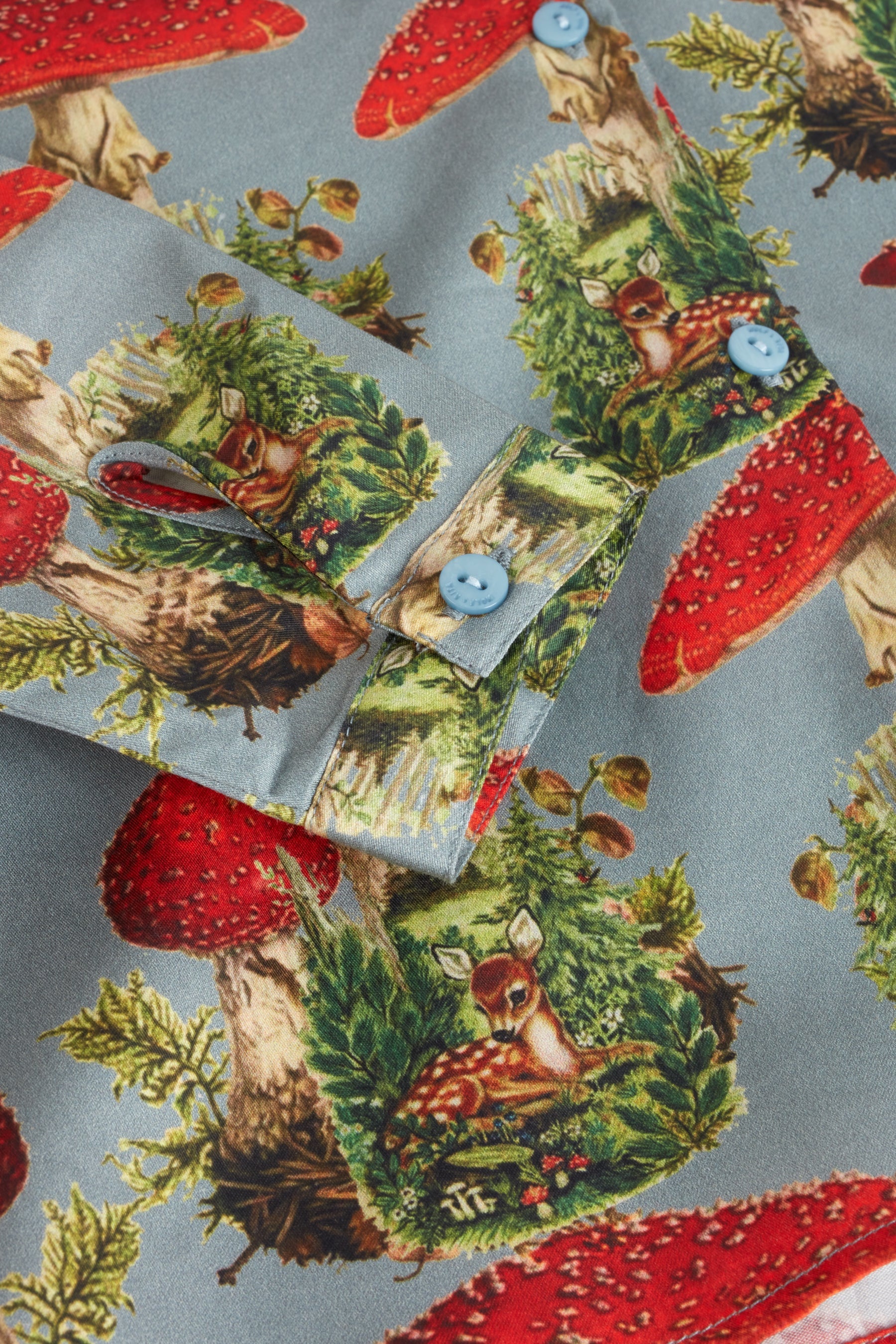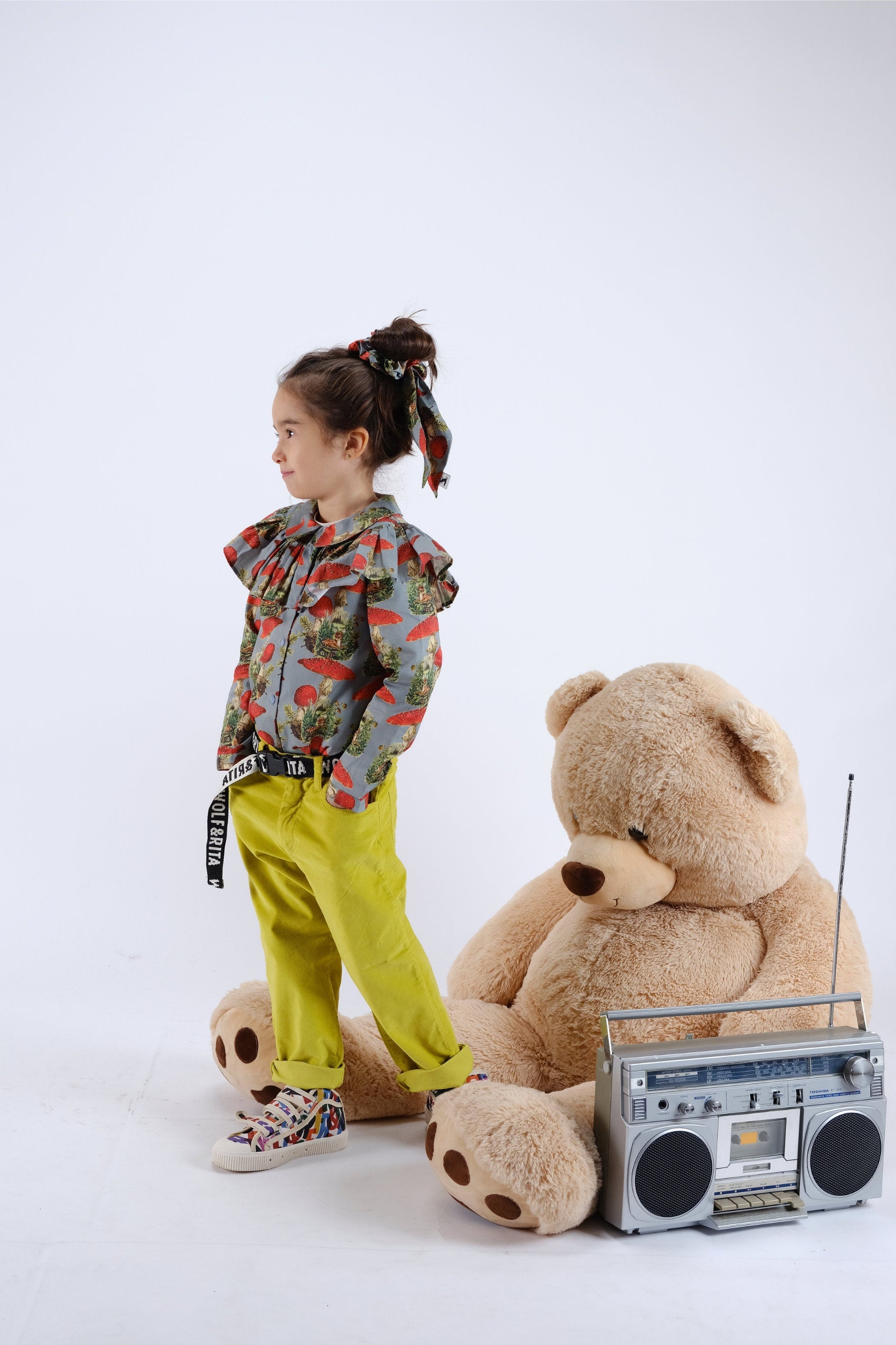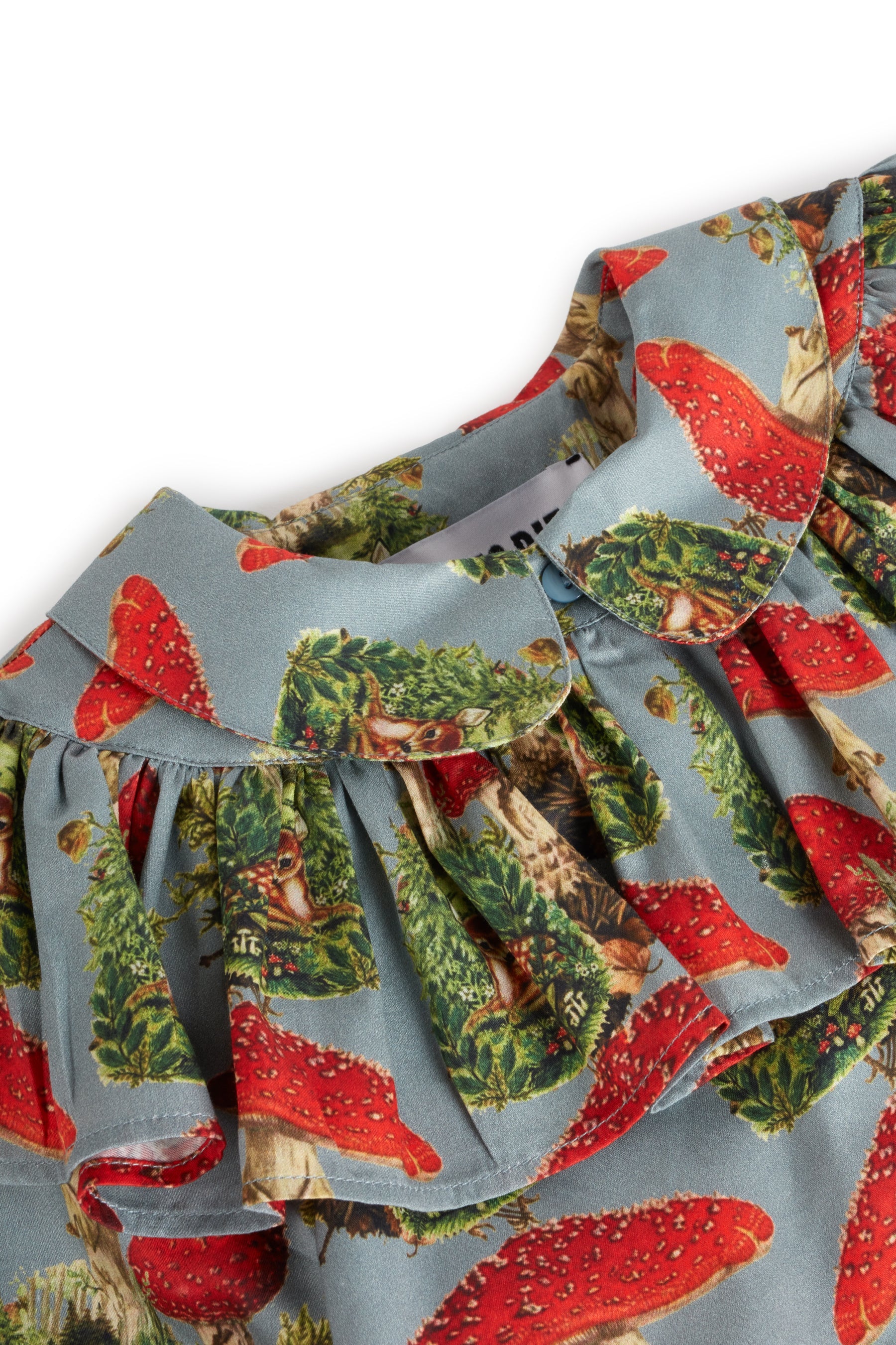Long sleeved blouse, with front buttons, shirt collar, longer back and frill detail