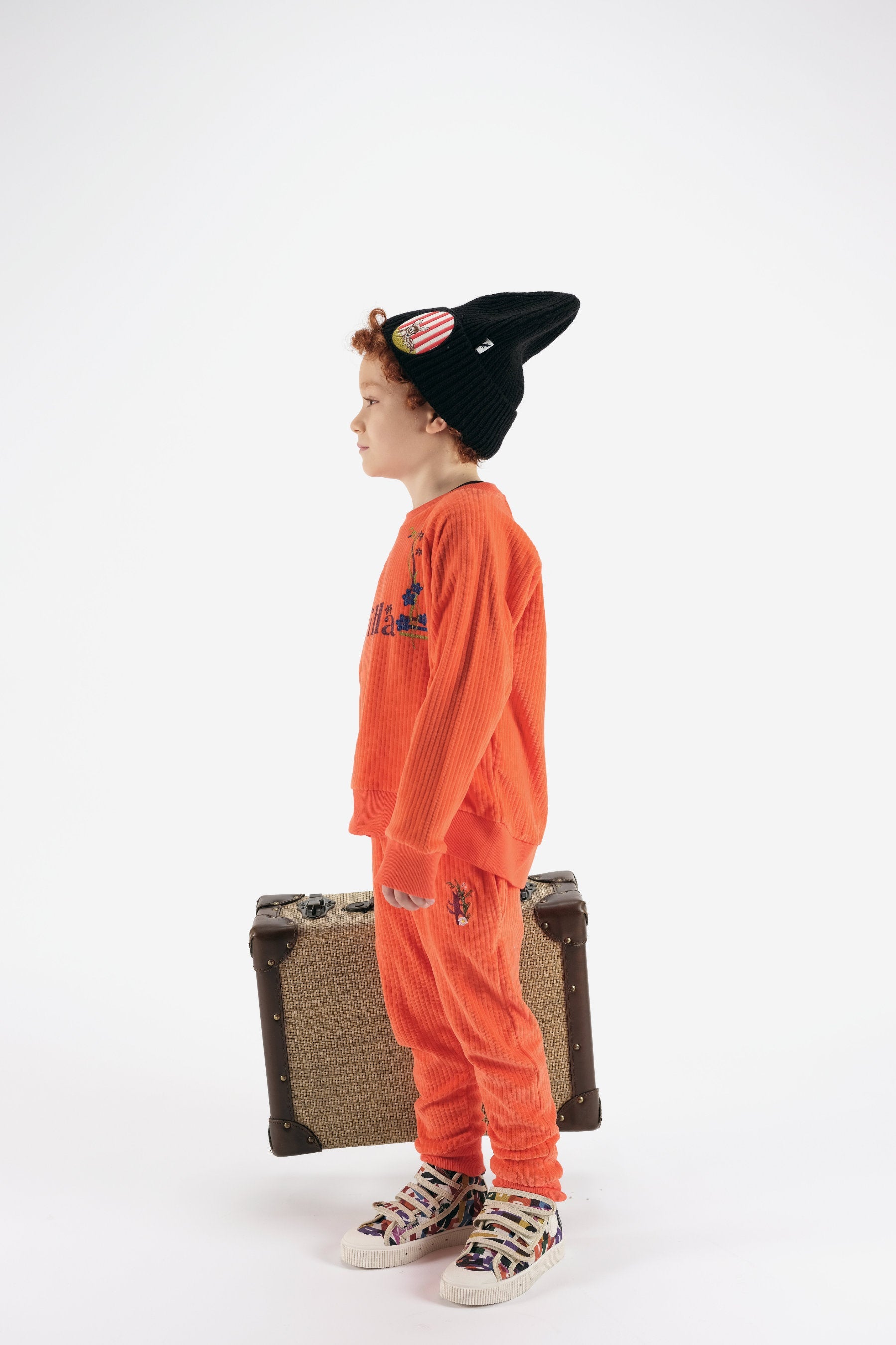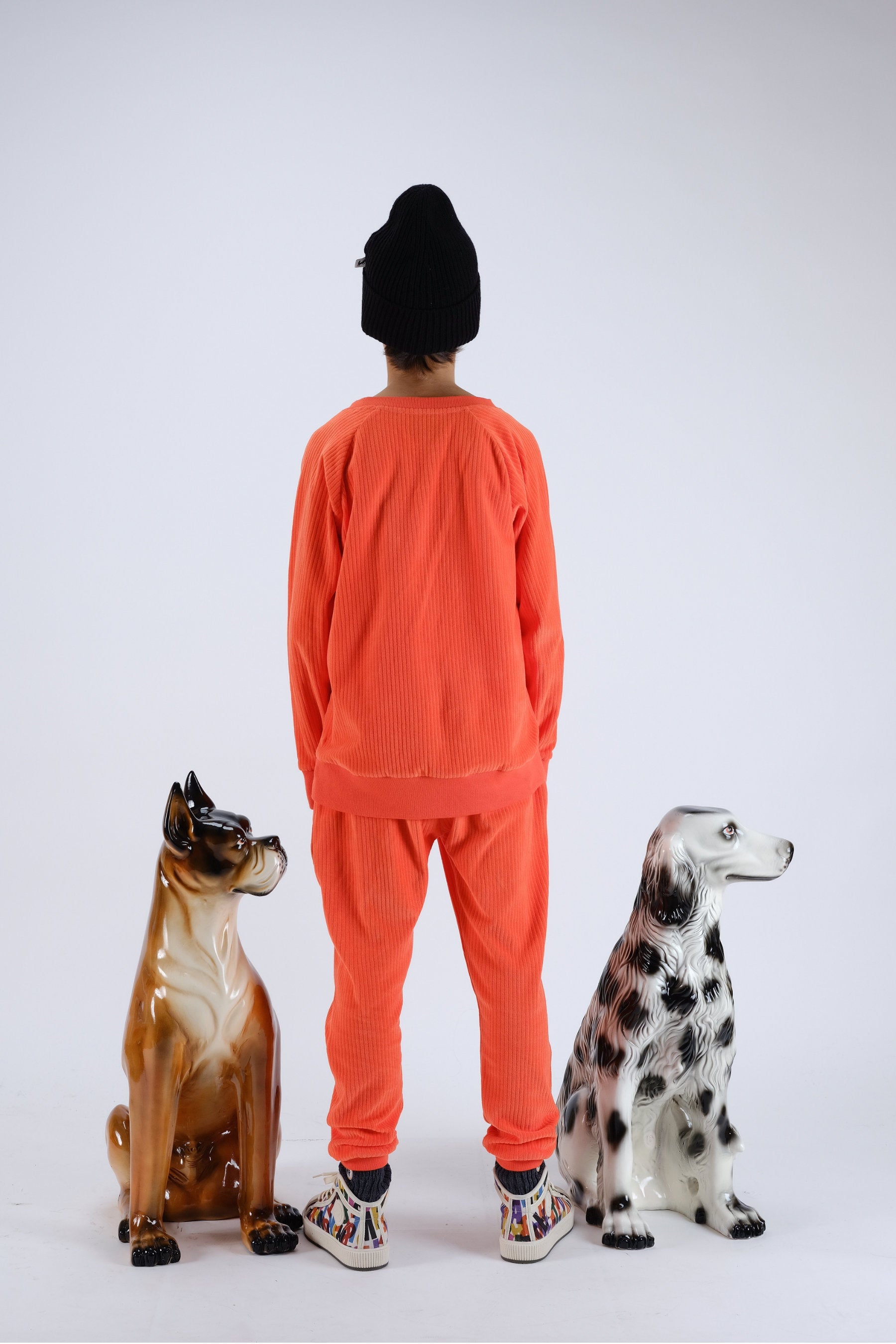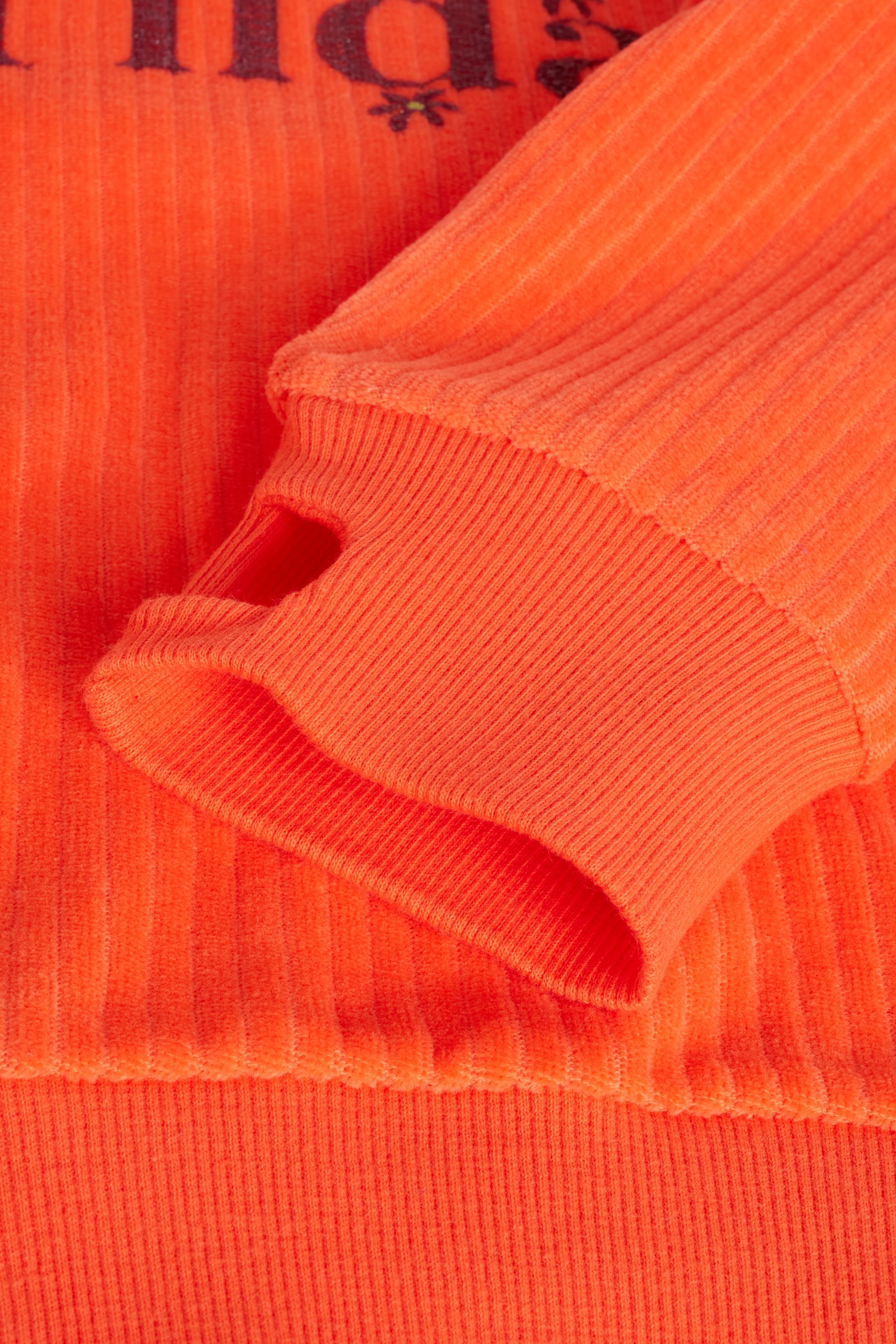 Corduroy sweatshirt with long raglan sleeves, with thumbholes and print