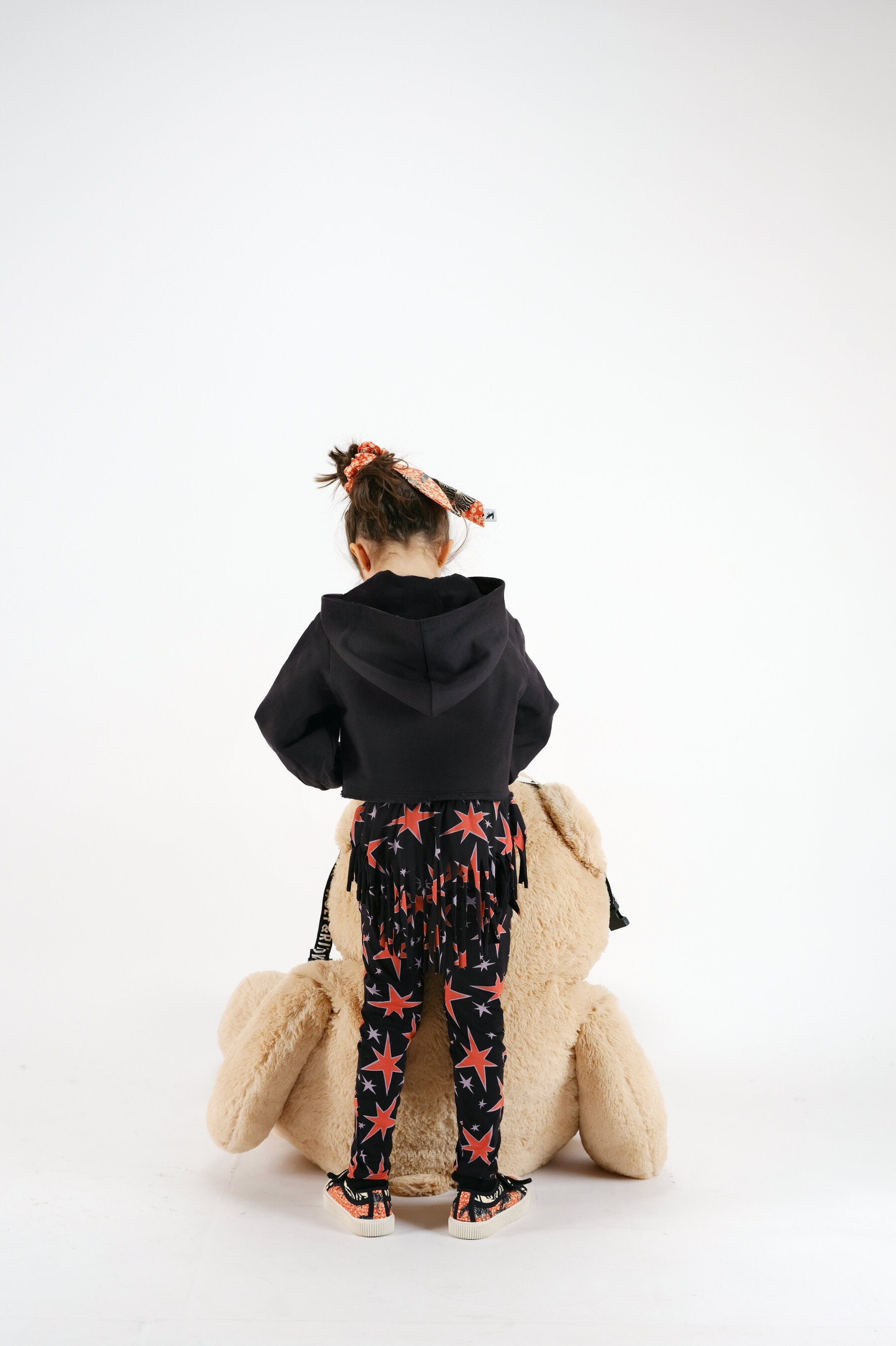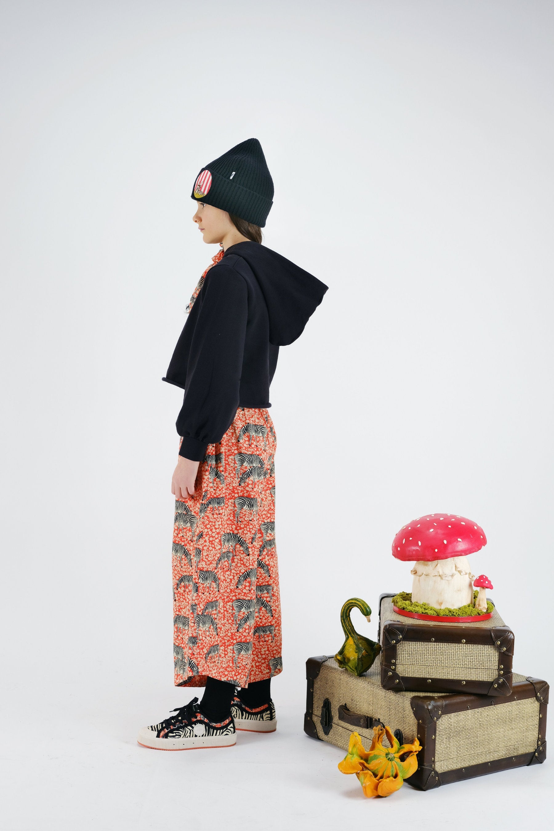 Cropped sweatshirt with long ballooned sleeves, hoodie (contrasted inner lining) and print