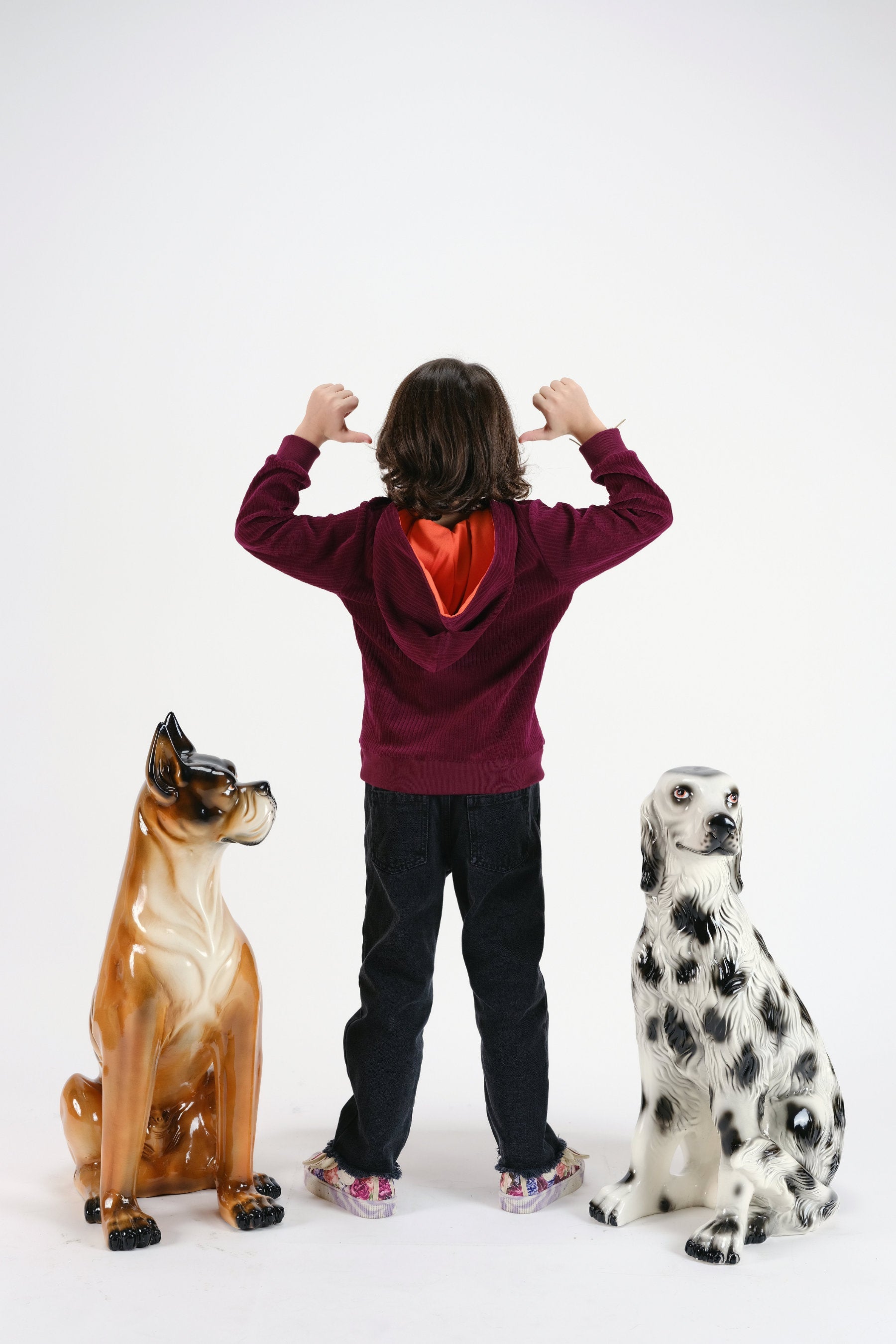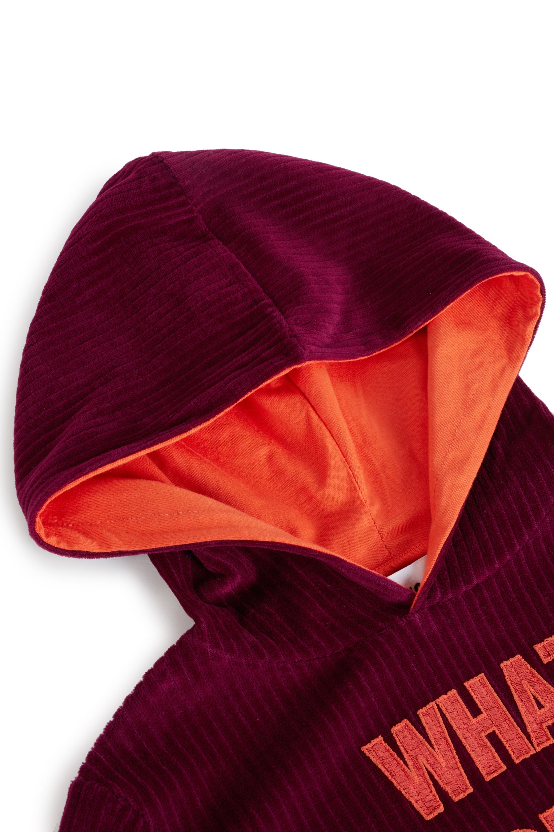 Long sleeved sweatshirt, with hoodie (with contrasted inner lining), canguru pocket, and print