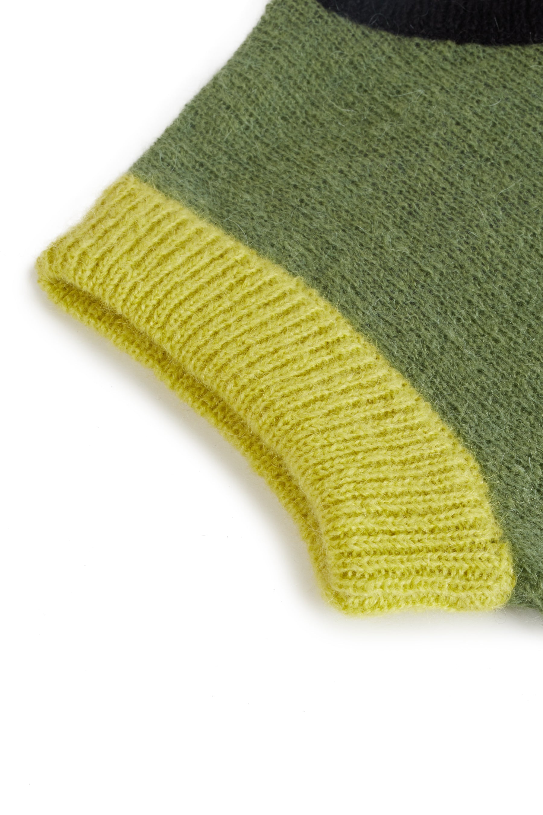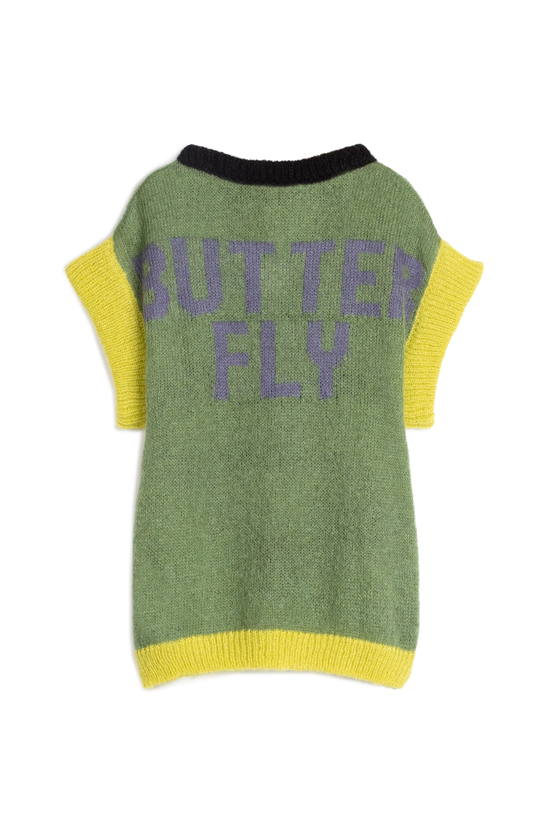 V-neck, jacquard knitted vest, sleeveless and contrasted cuffs