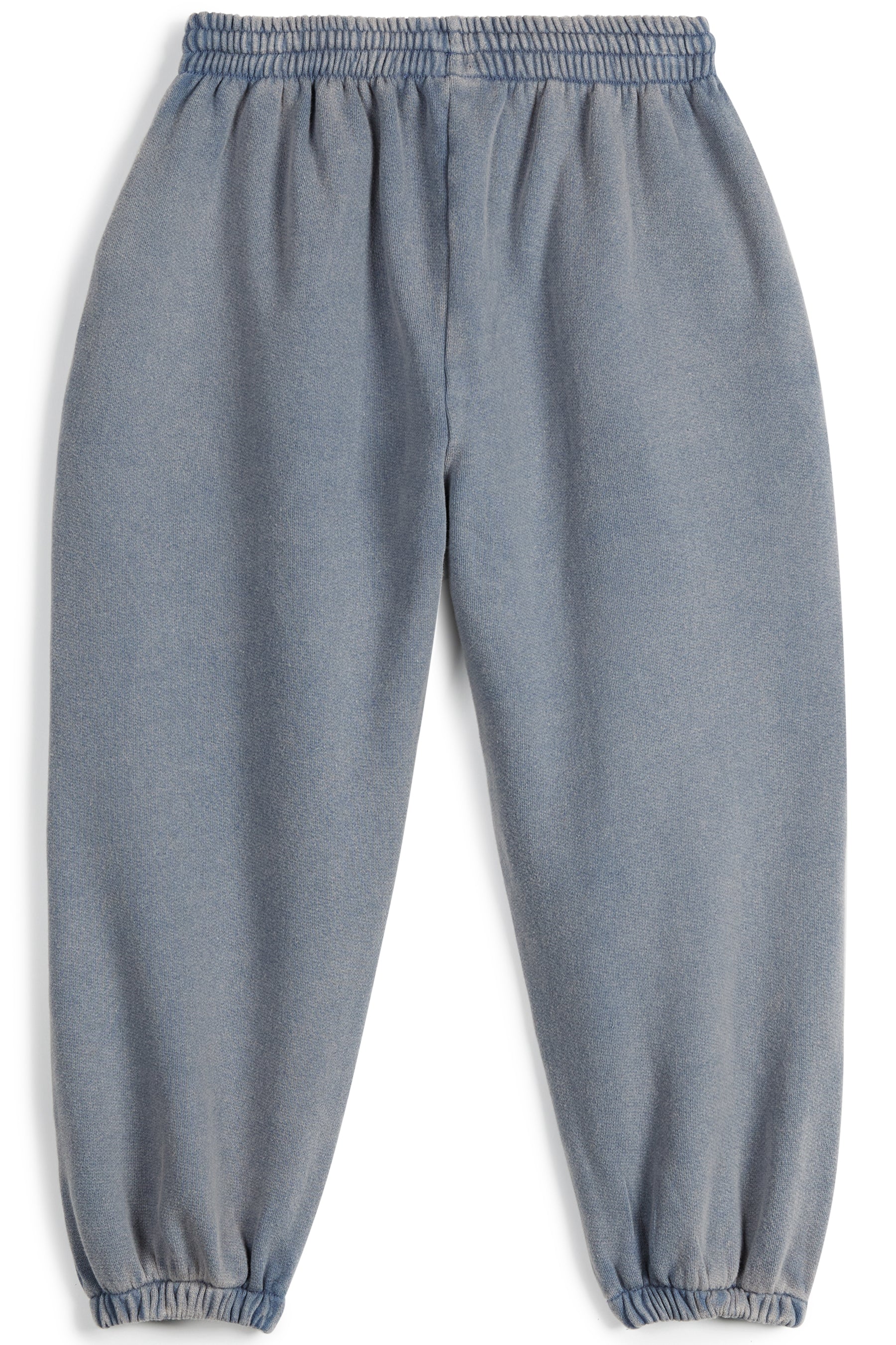 Stone washed fleece sweatpants with side pockets, waist string, patch and elasticated cuffs