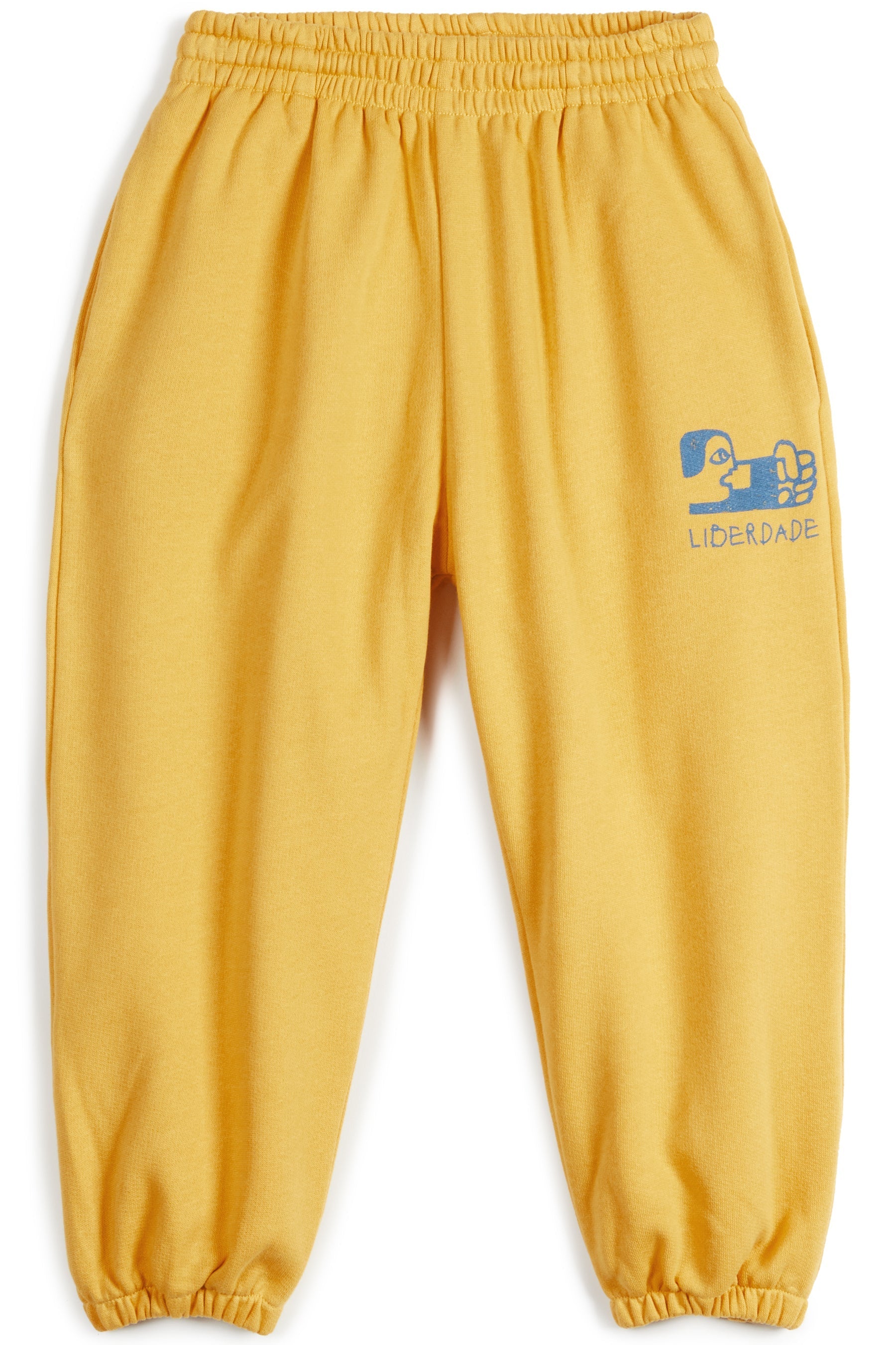Fleece sweatpants with side pockets, waist string, print and elasticated cuffs