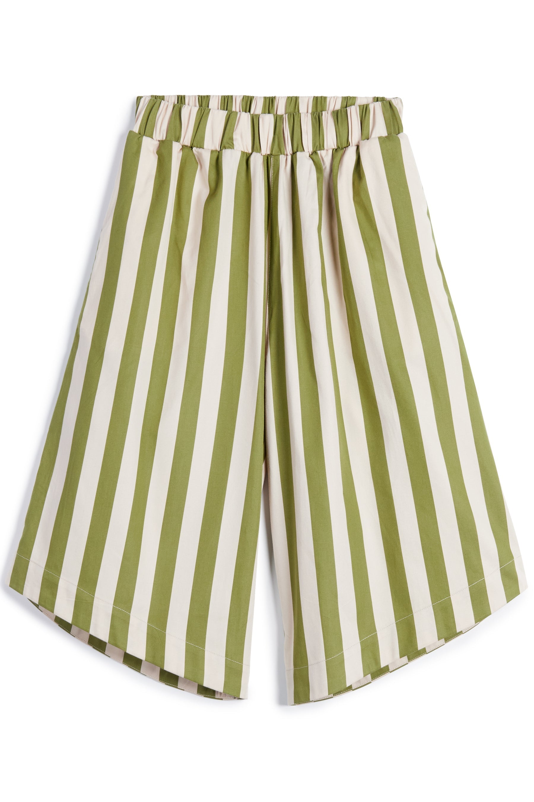 Cropped, asymmetric wide leg trousers with elastic waist and side pockets