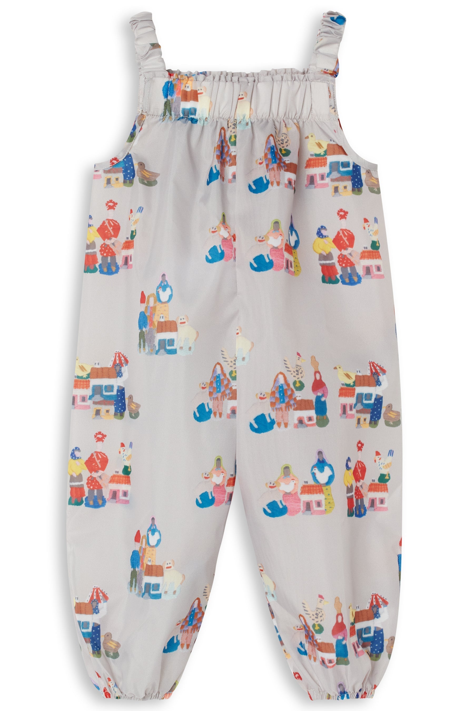 Sleeveless rainproof jumpsuit, with elasticated shoulder straps and leg cuffs