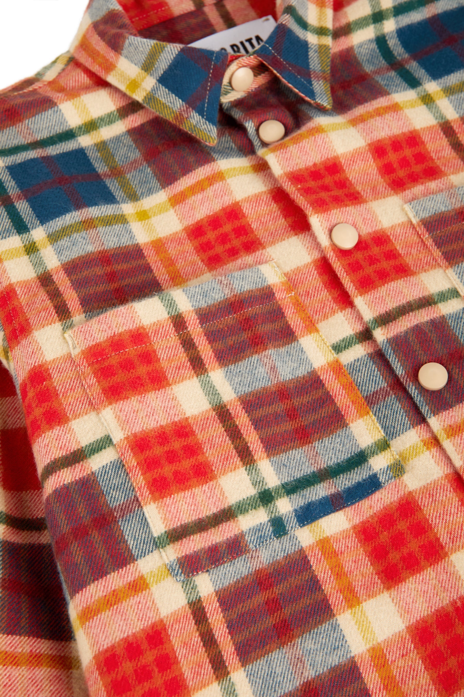 Long sleeved button-up shirt, loose fit, with front pockets, press buttons and center back pleat