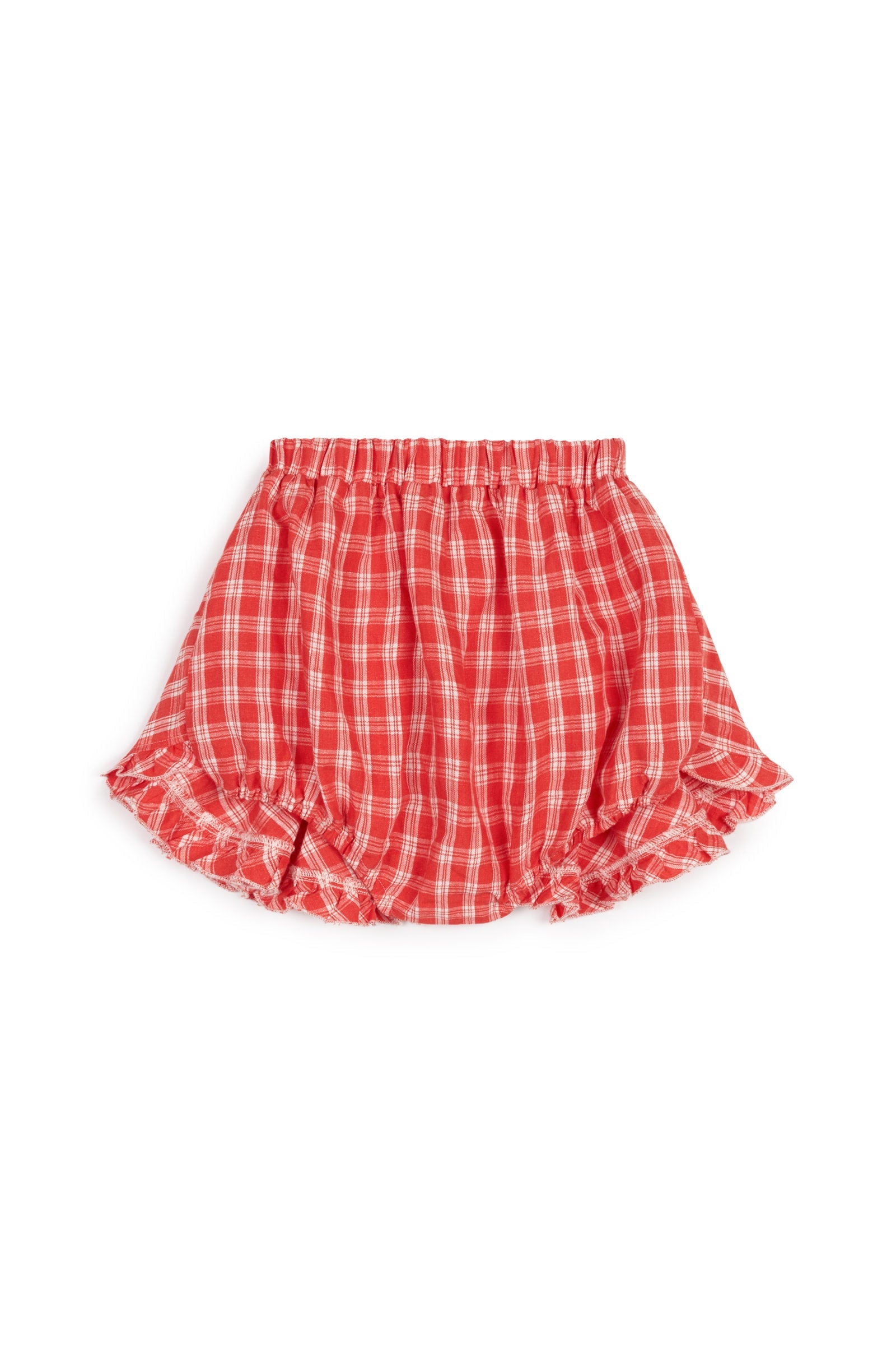 Shorts with gathered skirt on front and frill detail