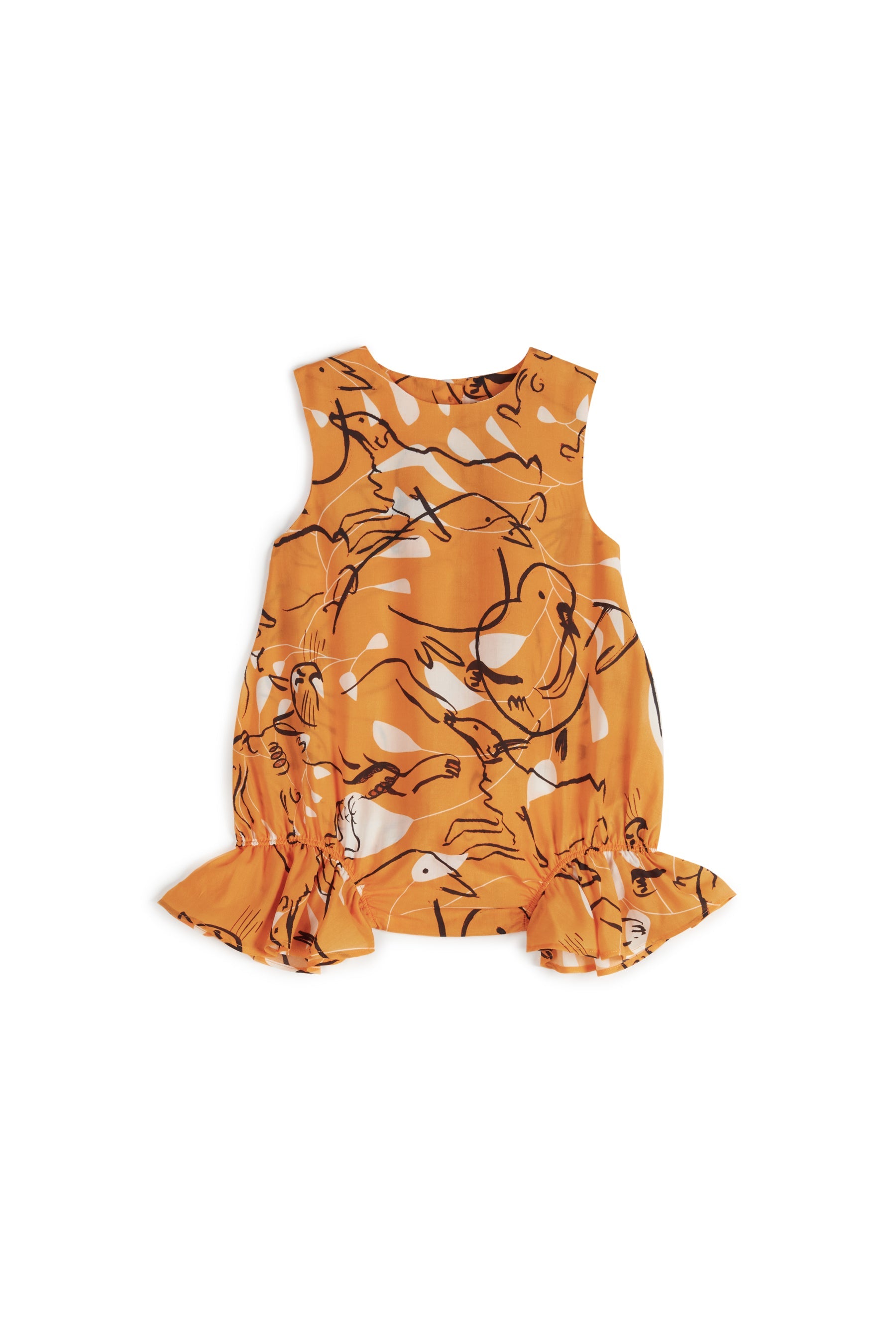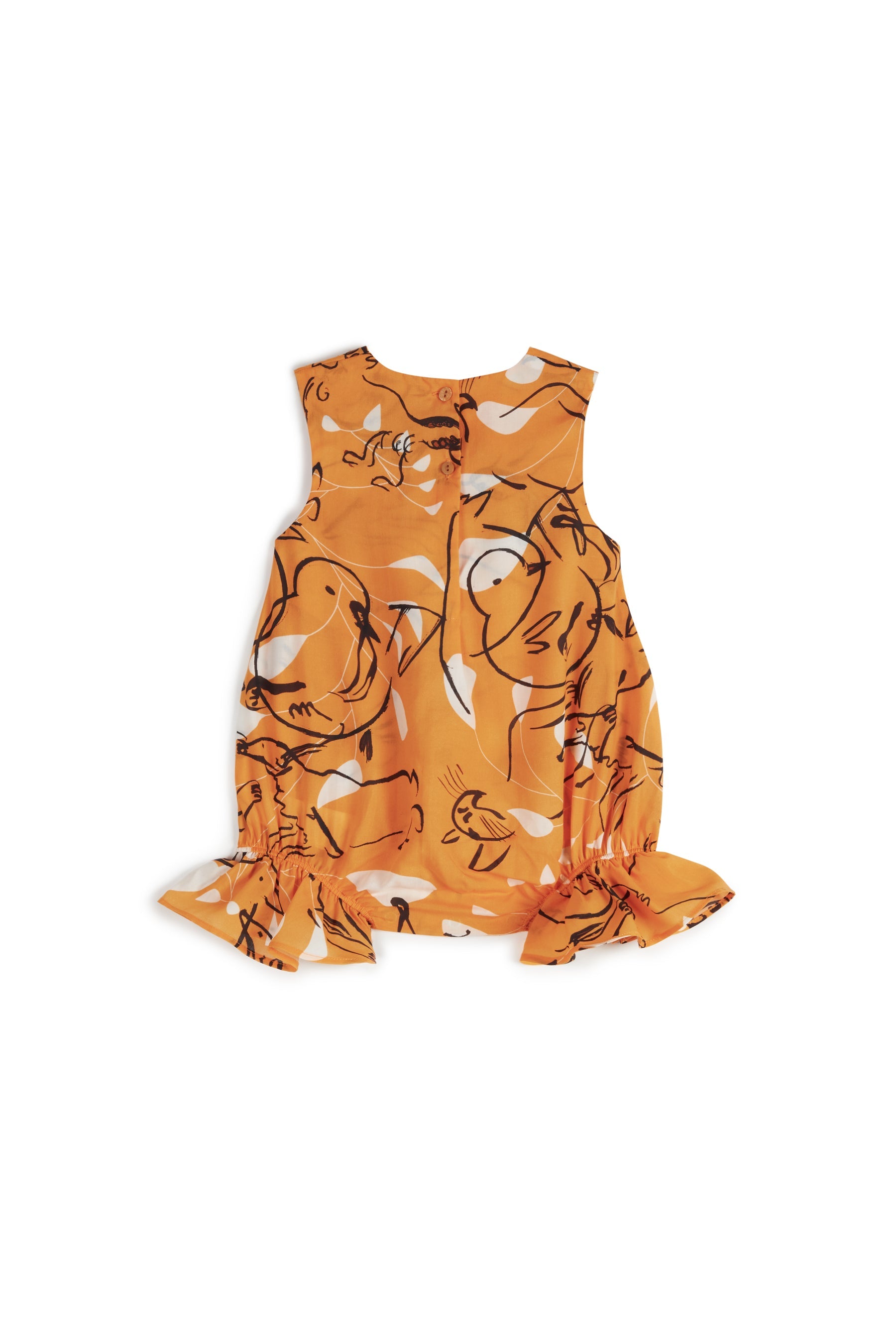 Sleeveless Tencel jumpsuit with frills on the legs, back button and snap buttons between the legs