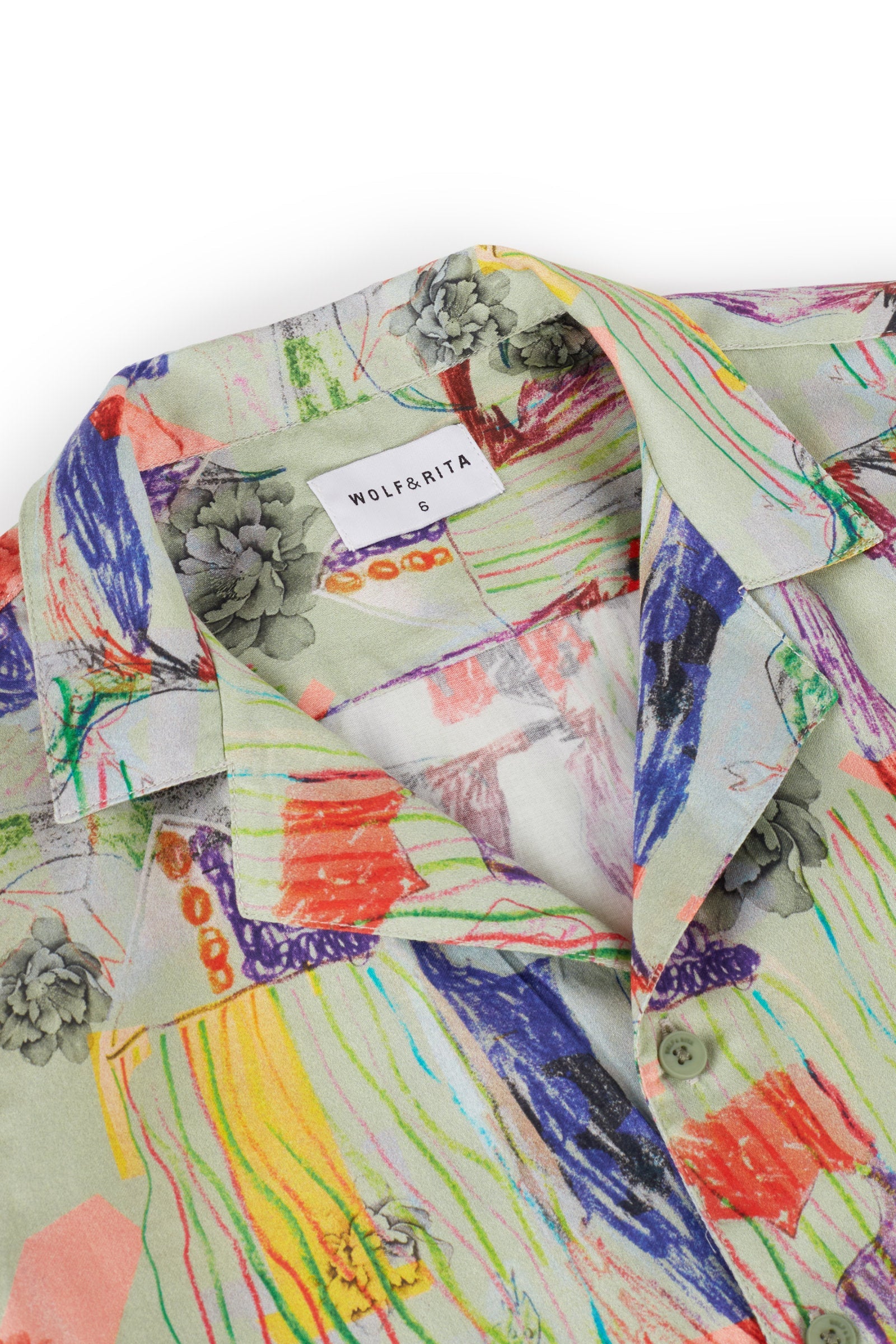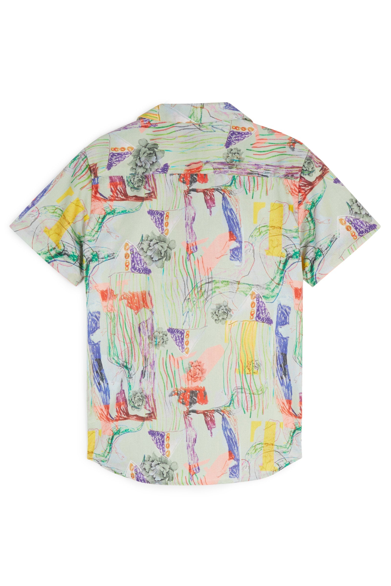 Short sleeved button-yp shirt with front pocket and notched lapel