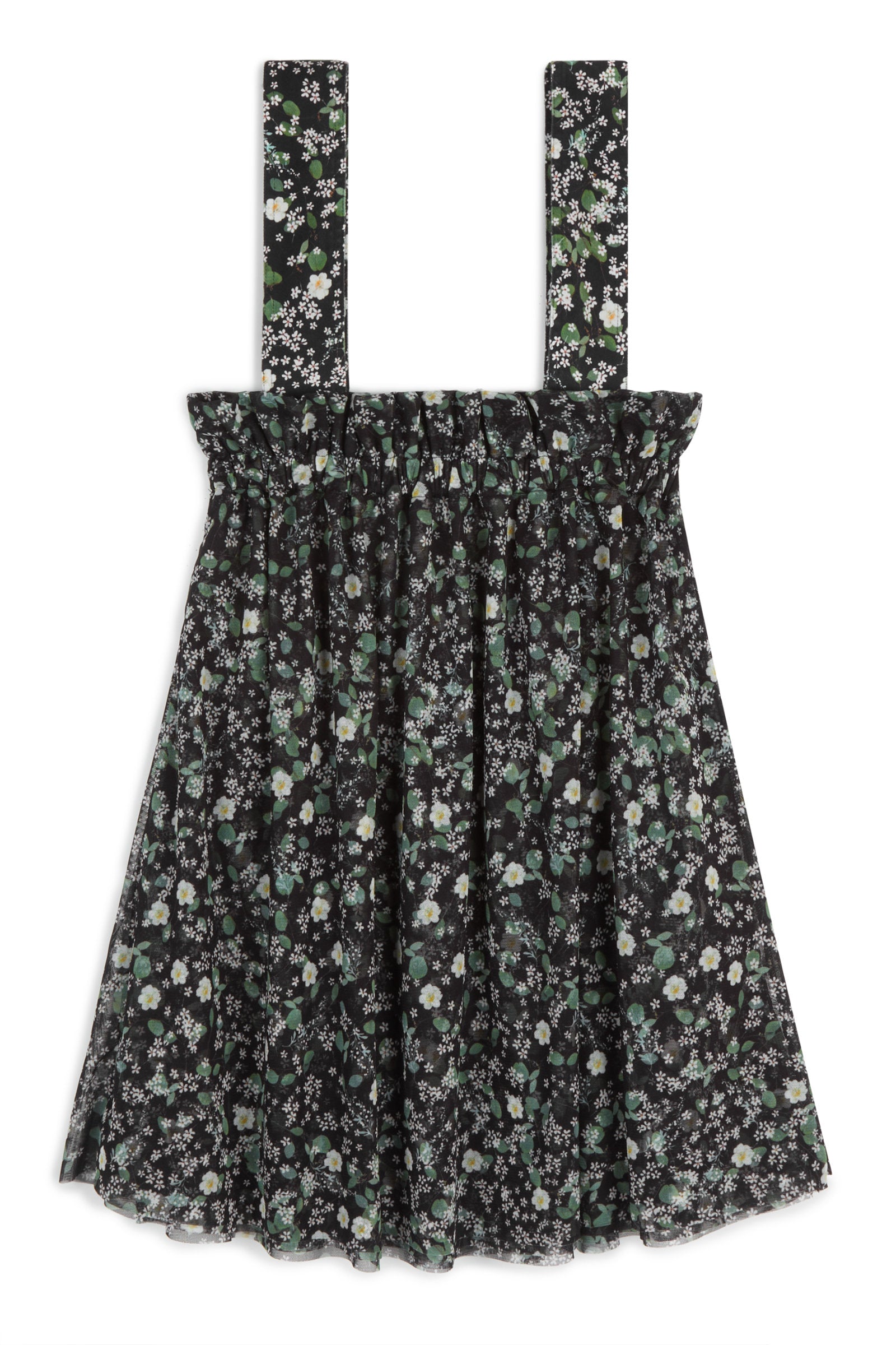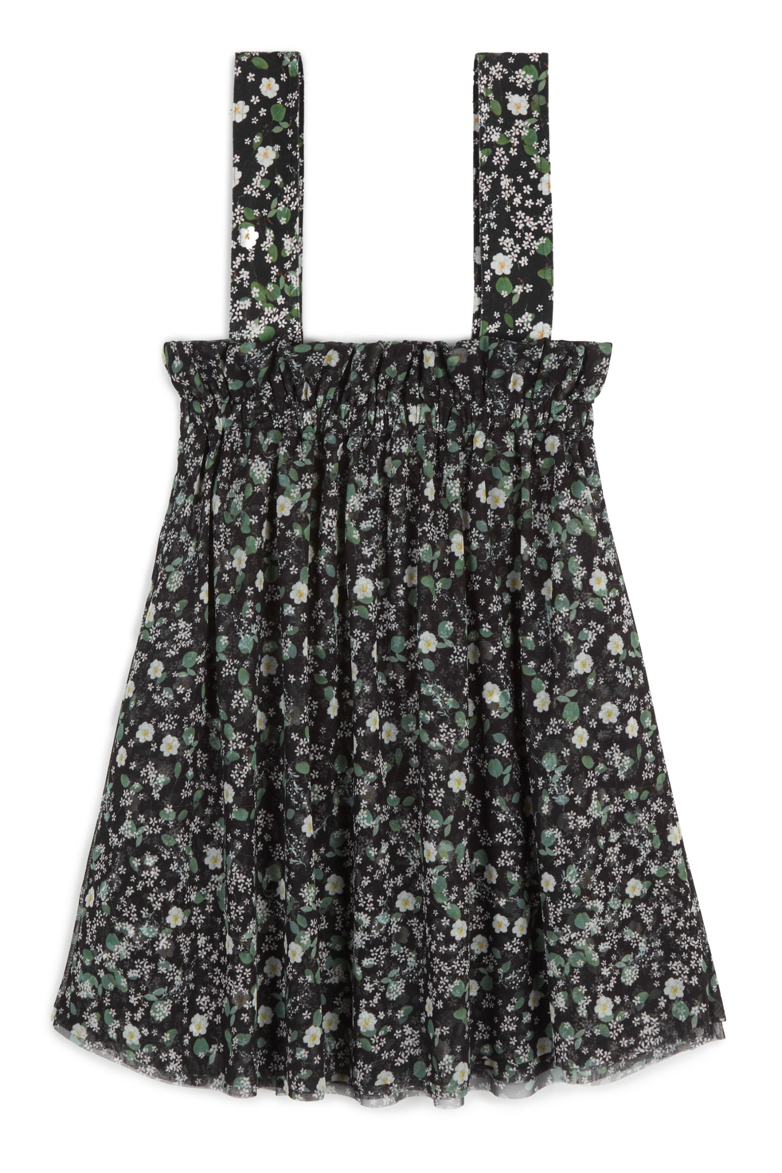 Tule layered gathered skirt with shoulder removable straps and elasticated waist