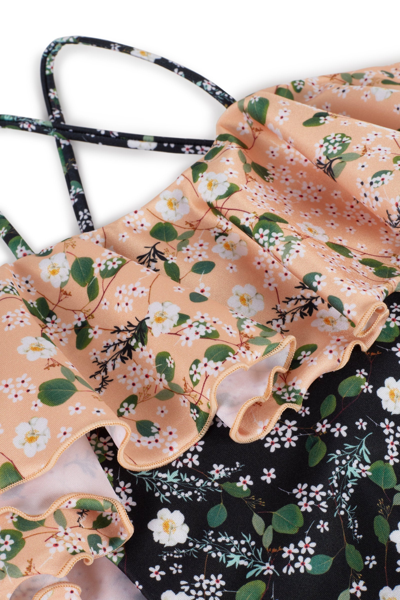 UV50+ swimsuit with thin straps and contrasted frills