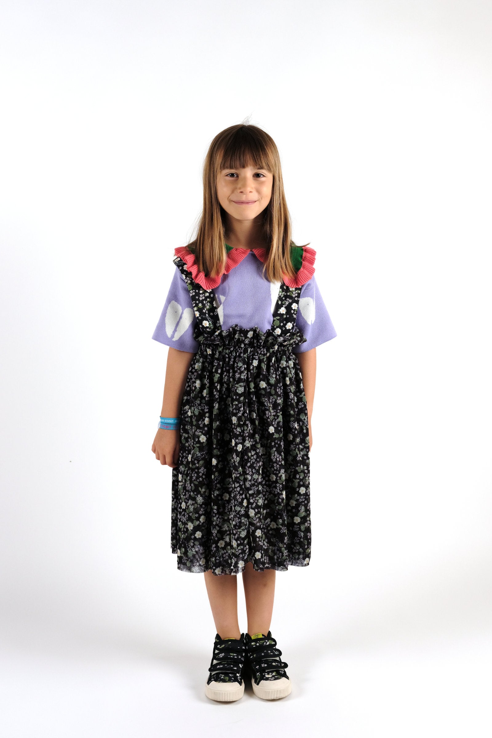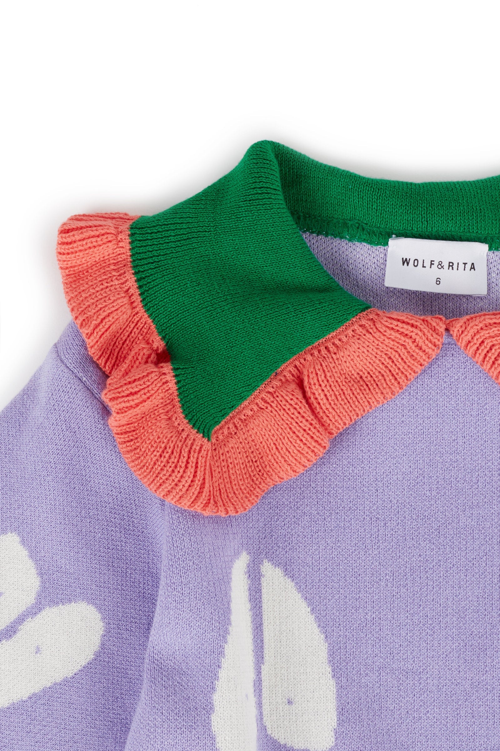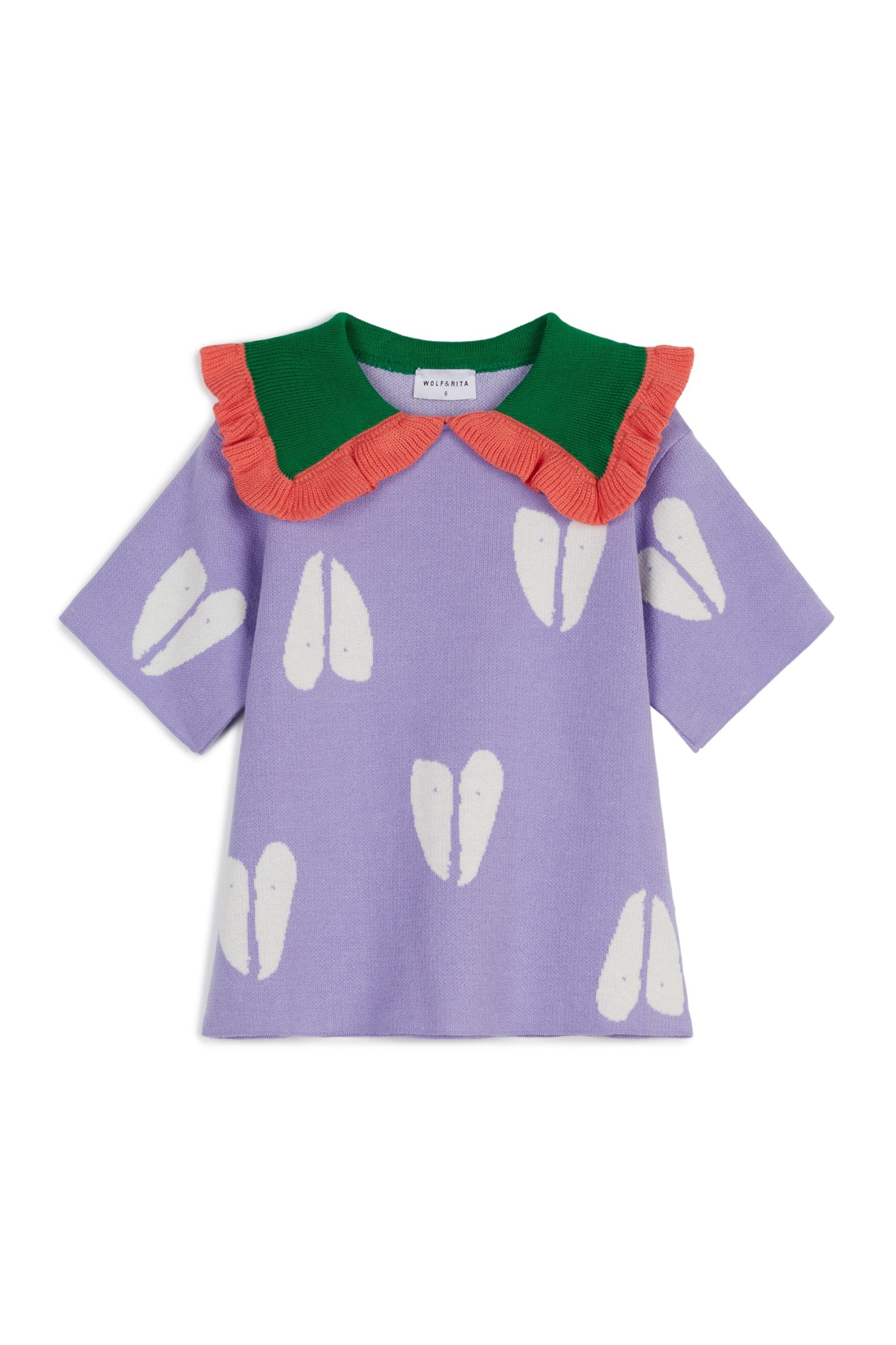 Short sleeved knitted jumper with oversize contrasted collar with frill