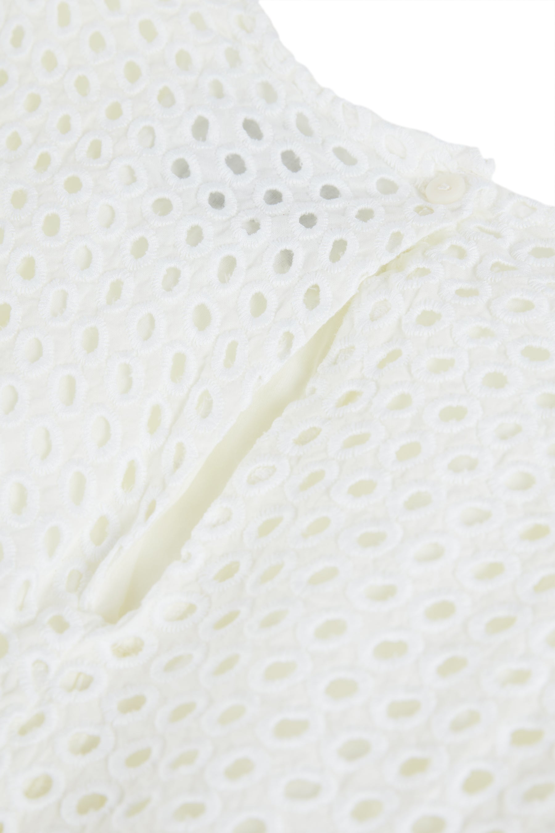 Dip dyed, embroidered (Broderie Anglaise) sleeveless, voluminous cape-like blouse with longer back and simple lining, button and opening on the back