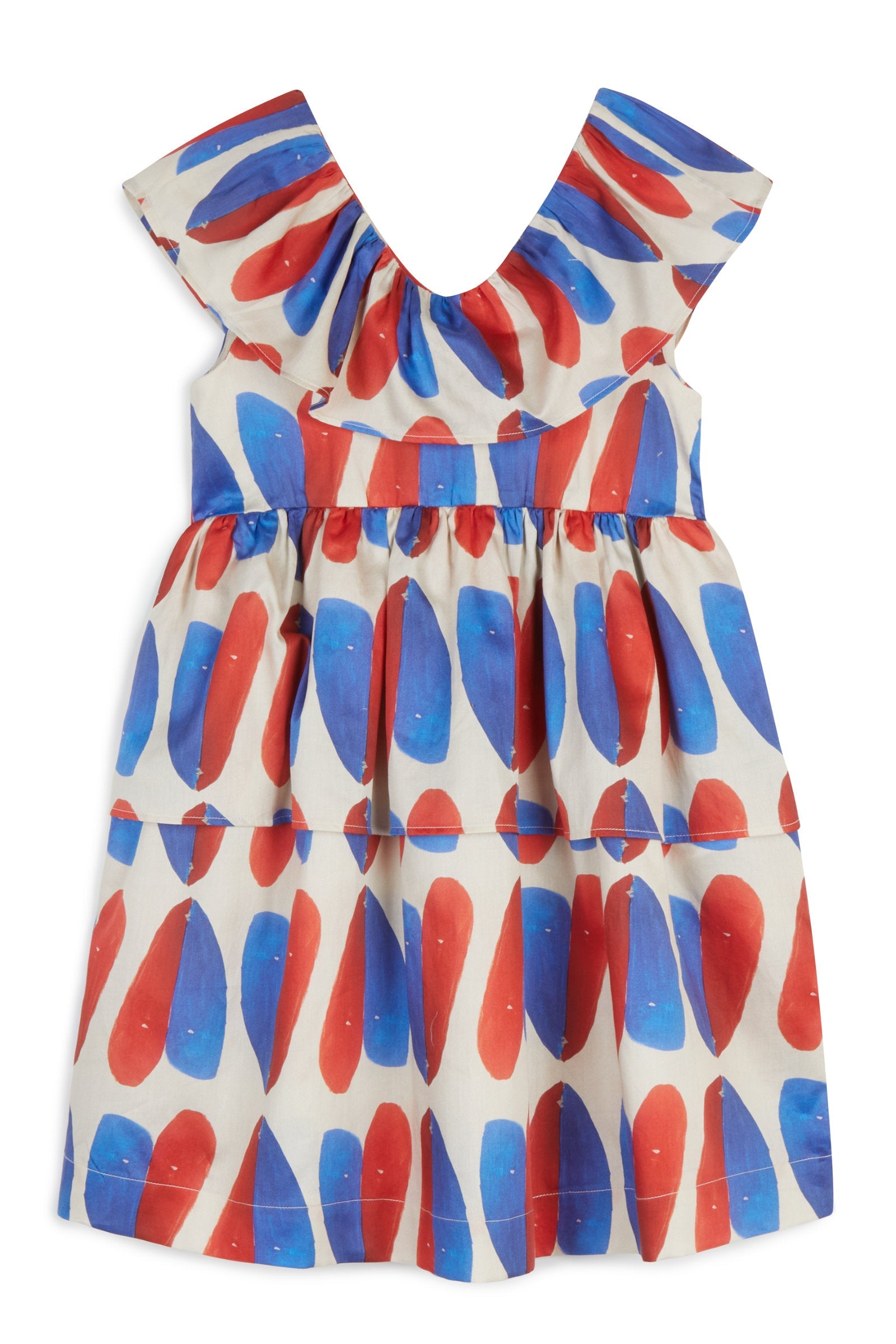 Mid-length sleeveless dress with frill over gathered skirt
