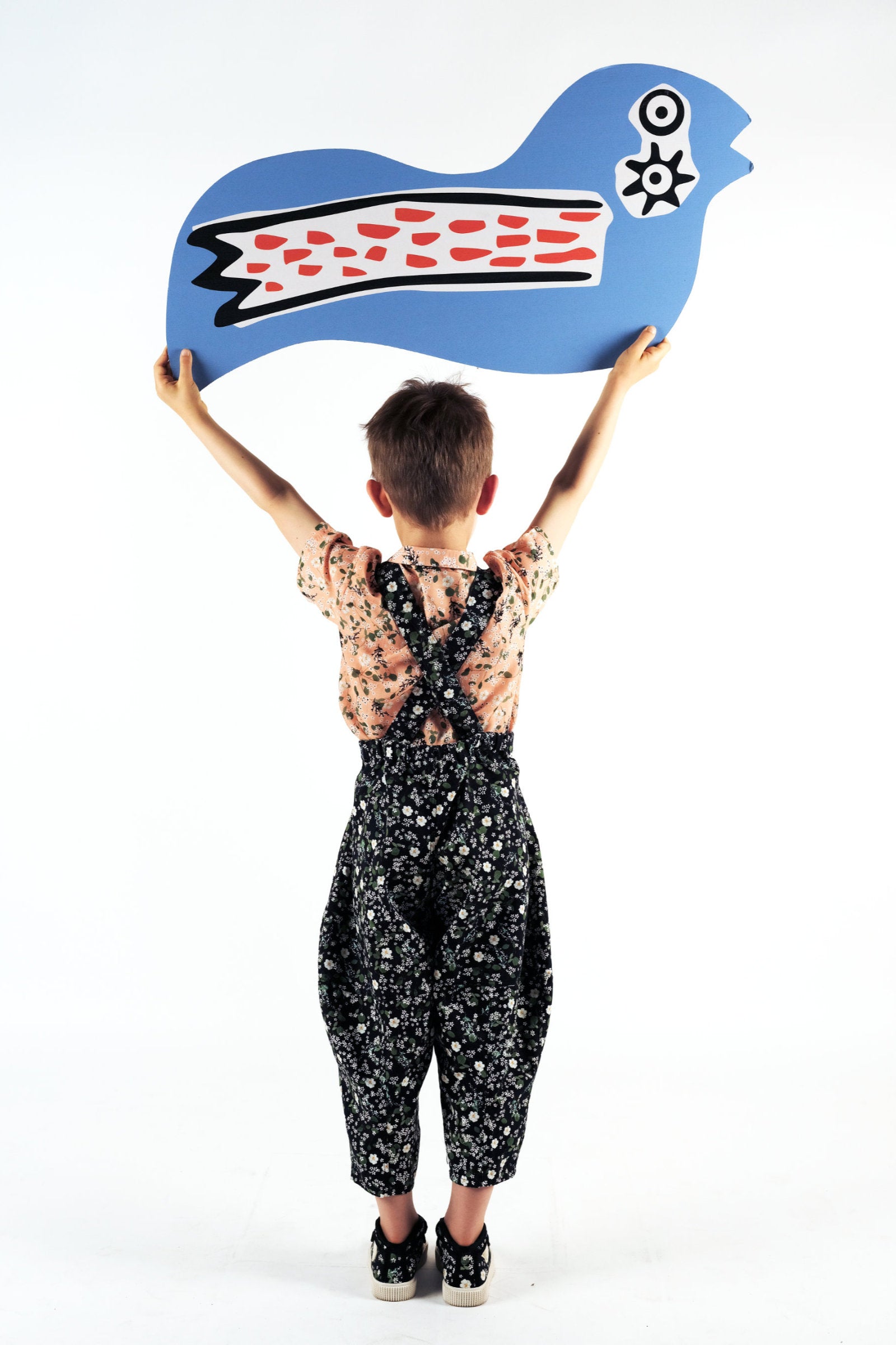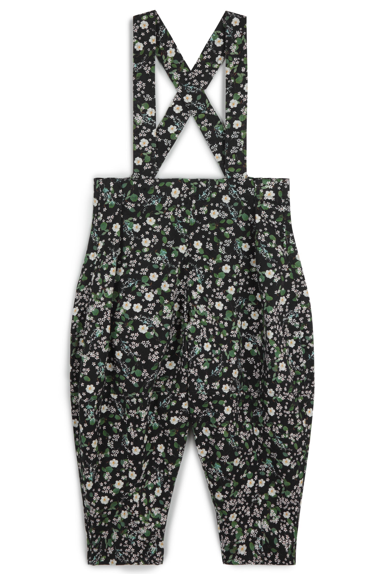 Relaxed fit trousers with shaping darts, removable adjustable straps and adjustable waist