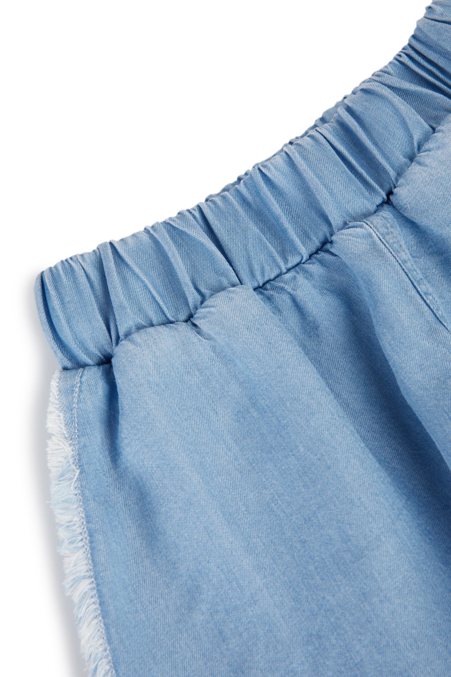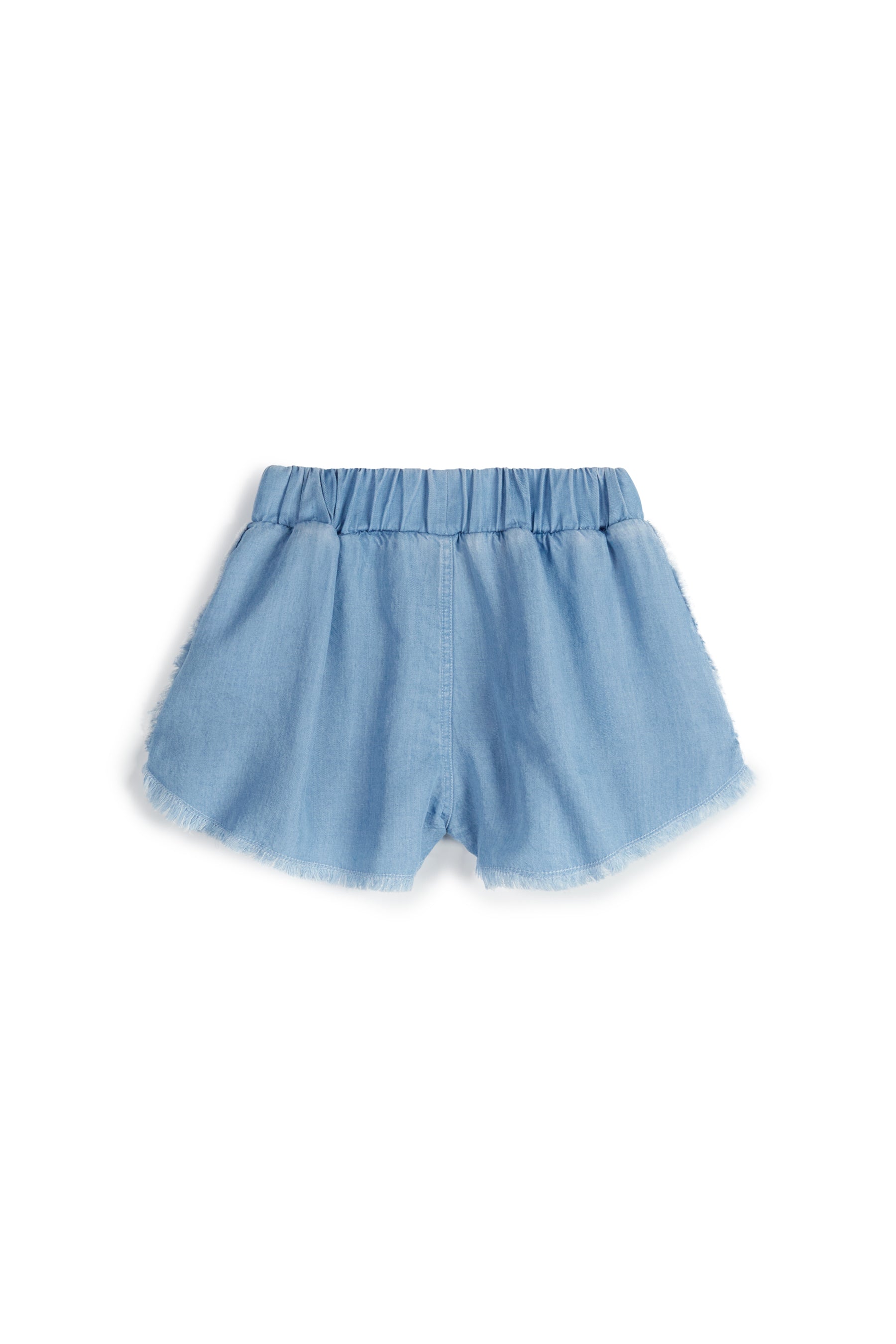 Lyocell shorts with elasticated waist, rough hem and small patch