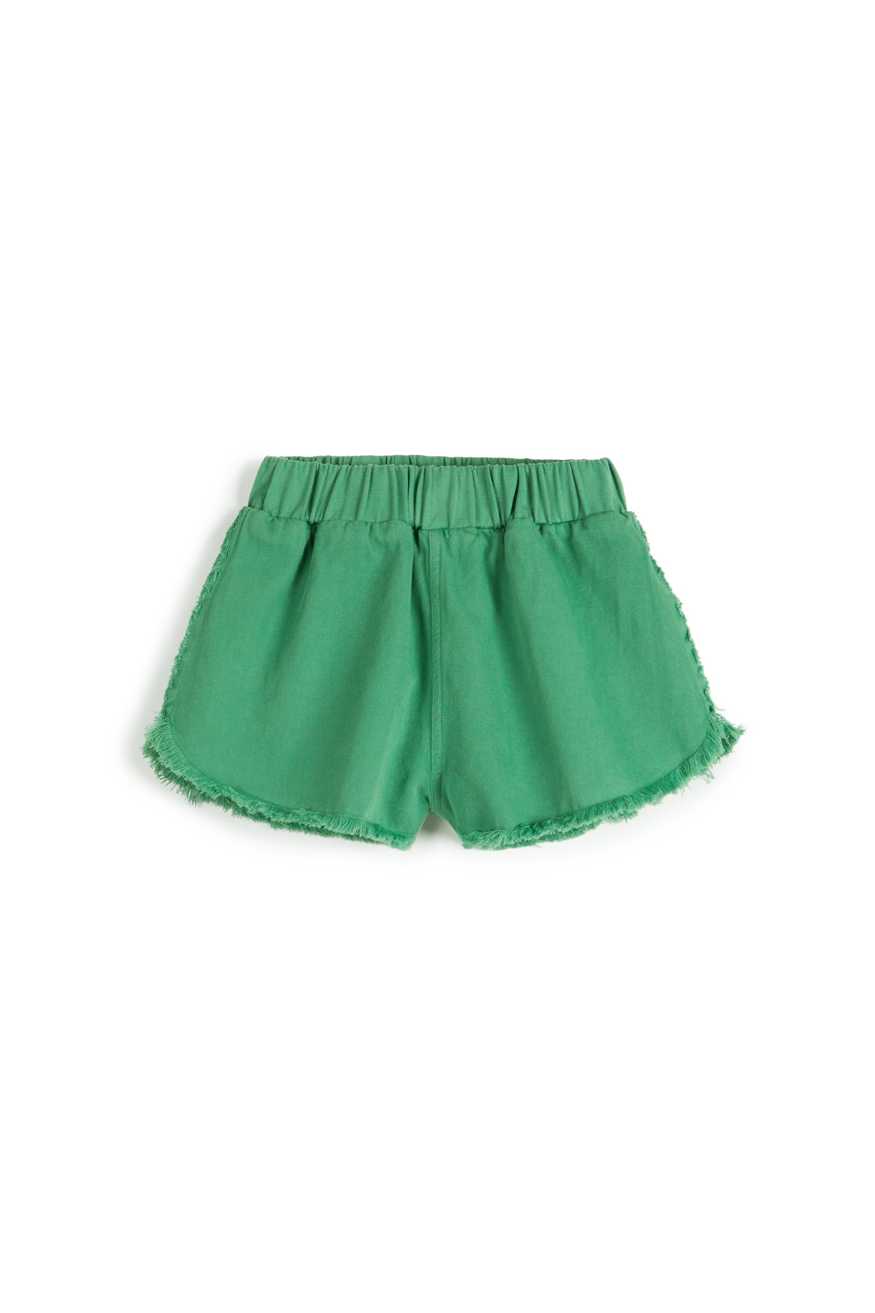 Shorts with elasticated waist, rough hem and small patch