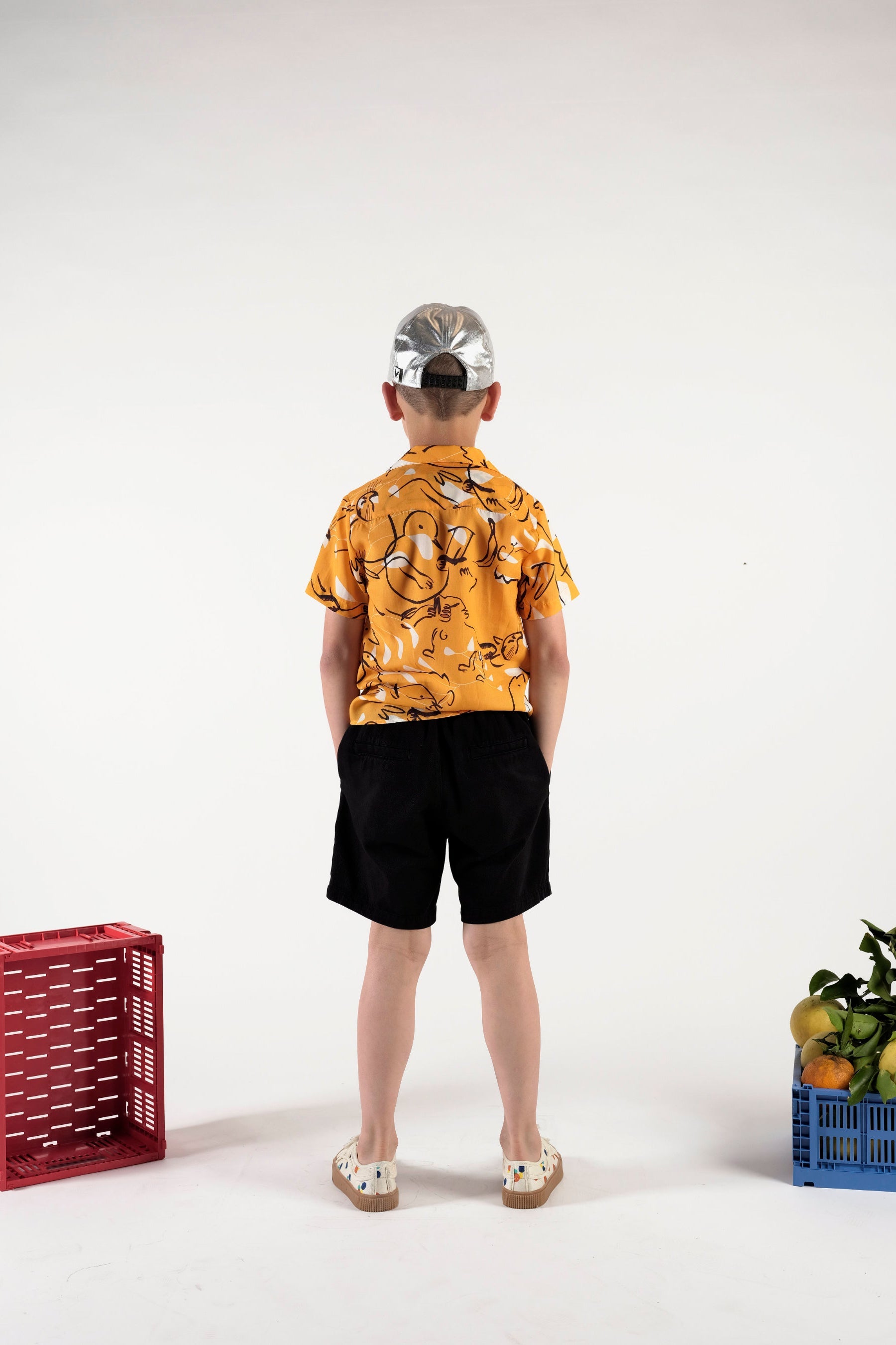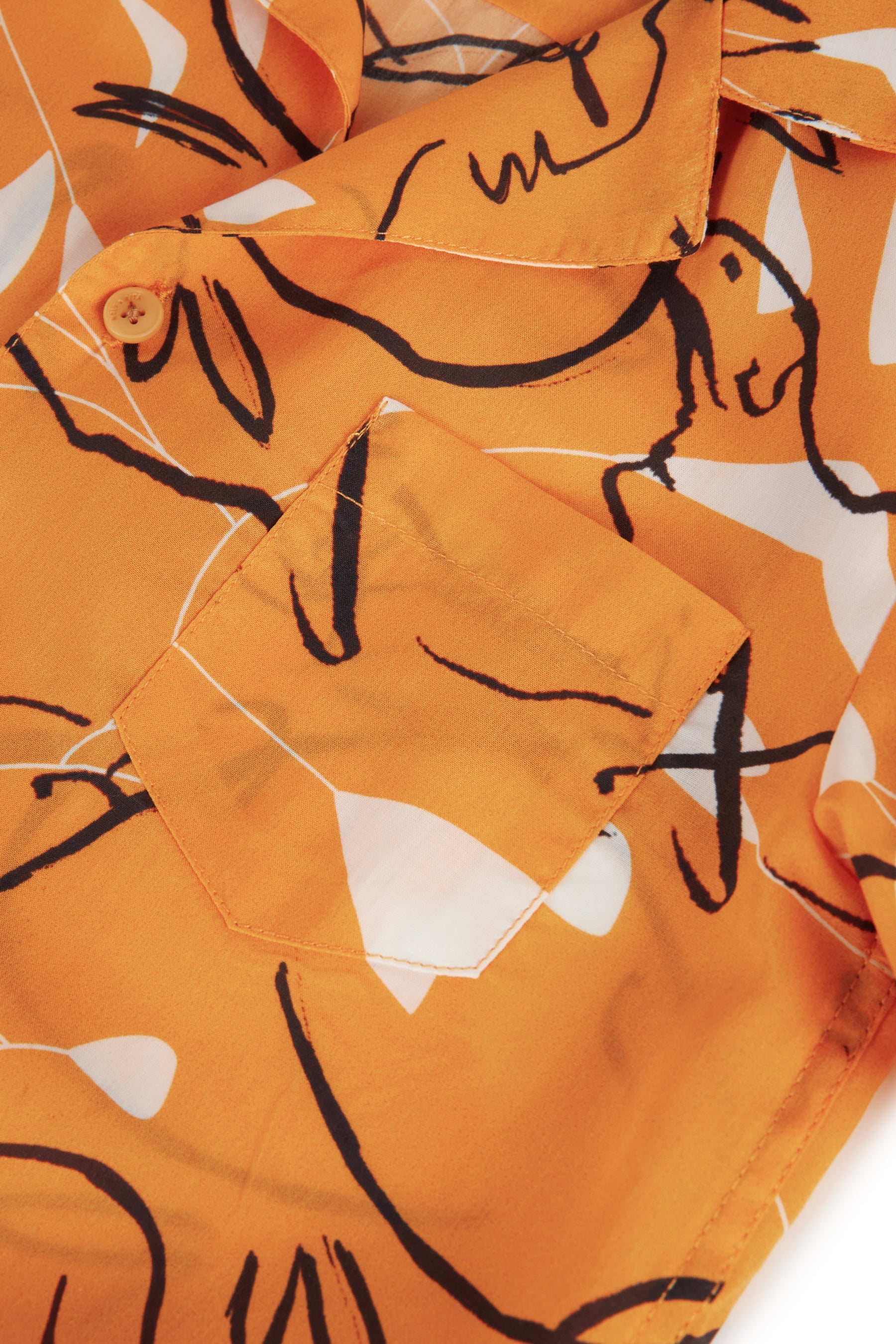 Short sleeved Tencel button-up shirt with front pocket and notched lapel