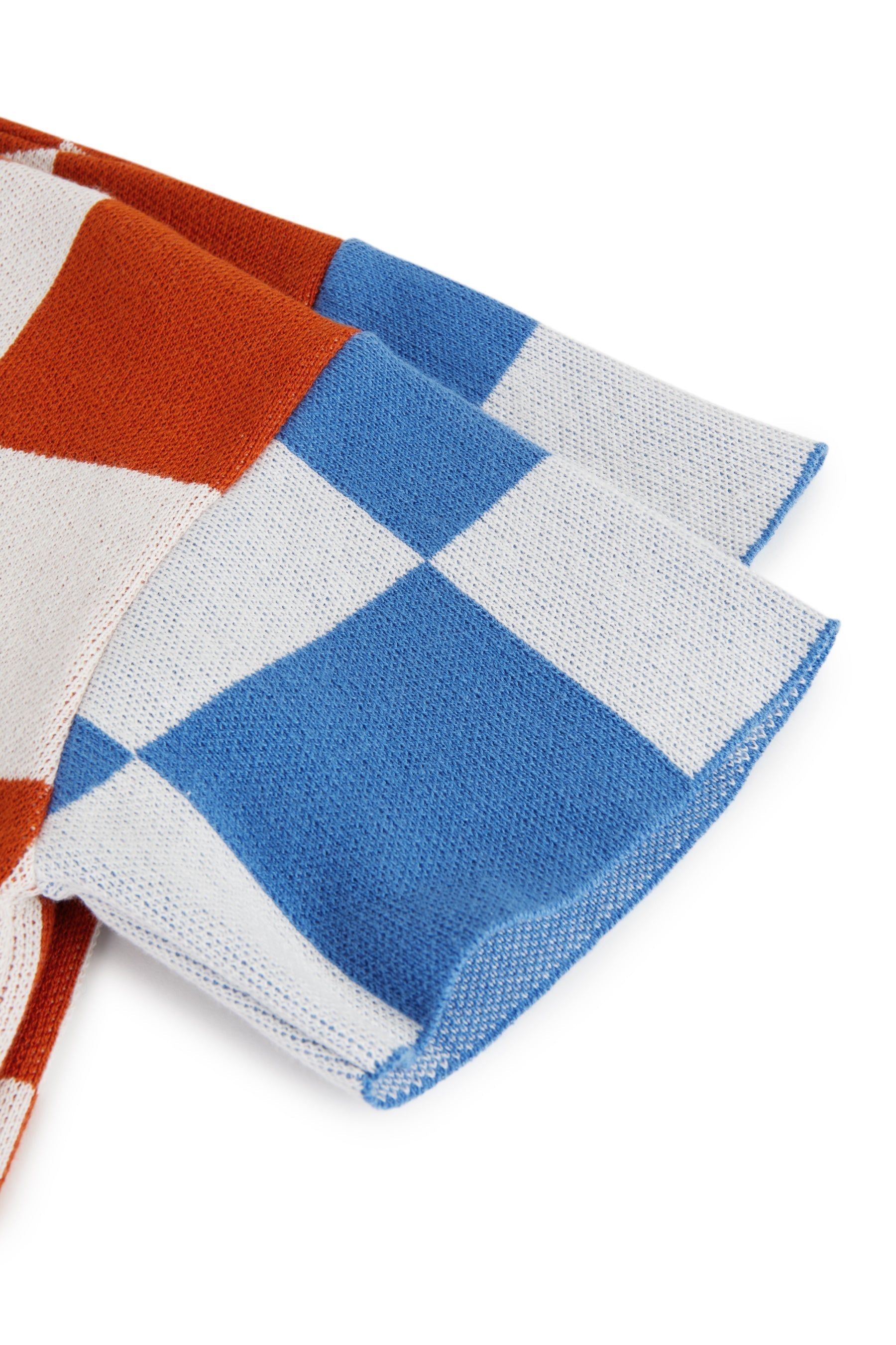 Knitted jumper in organic CO with round neckline and short contrasted sleeves