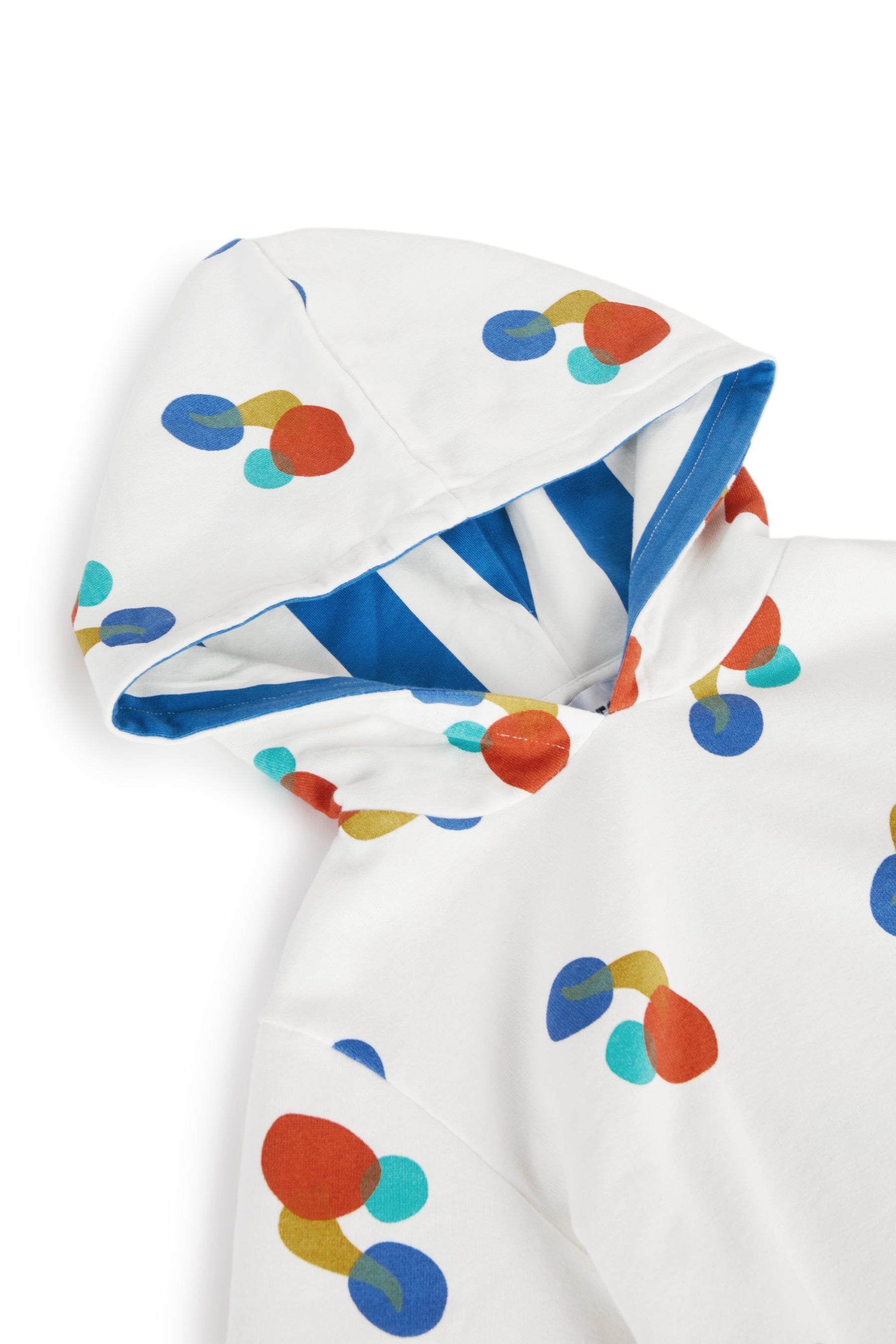 Cropped sweatshirt with long ballooned sleeves and hoodie (contrasted lining)