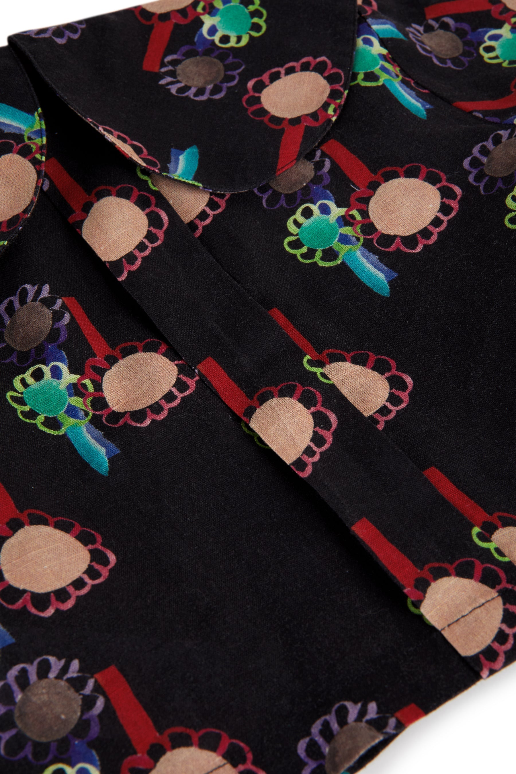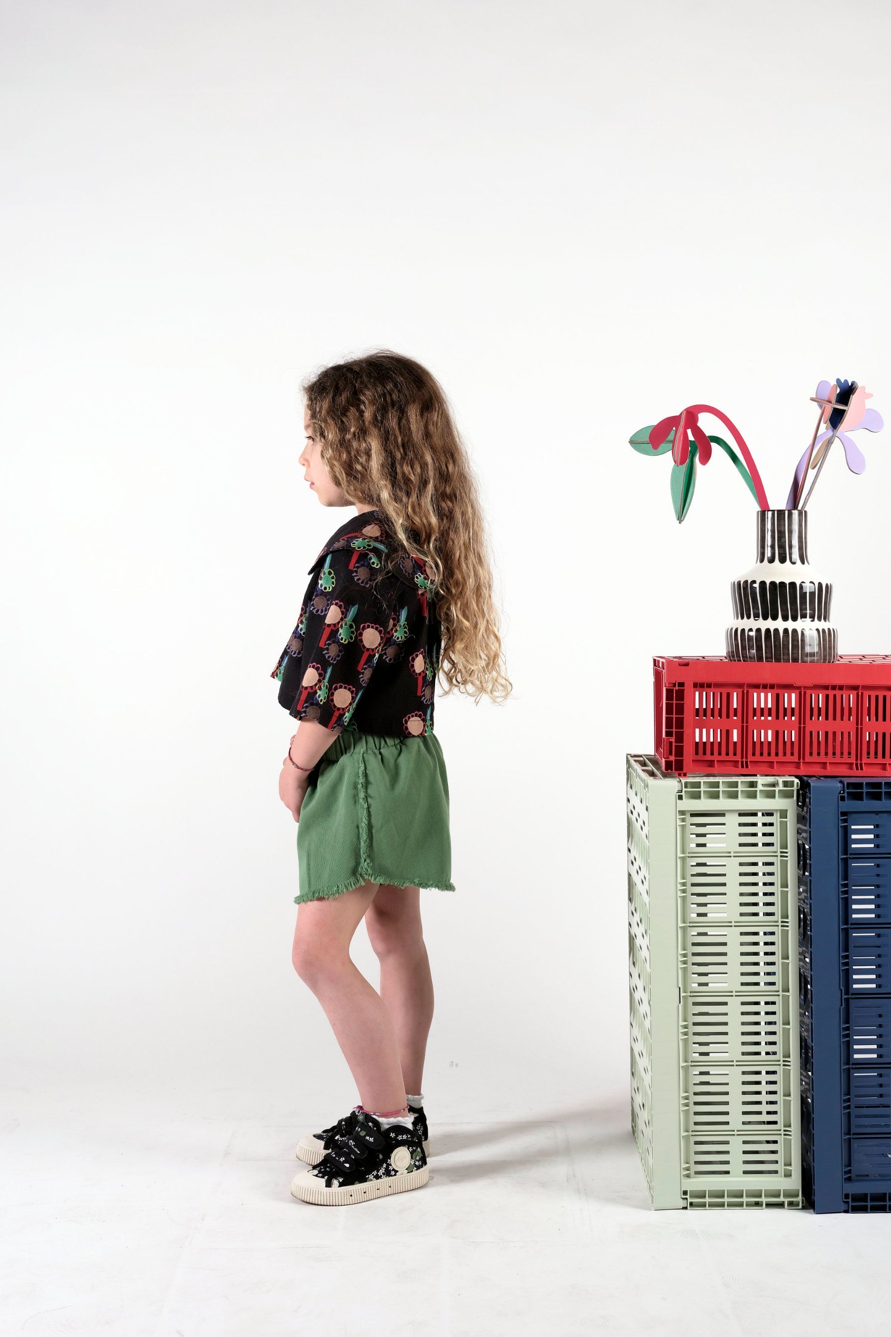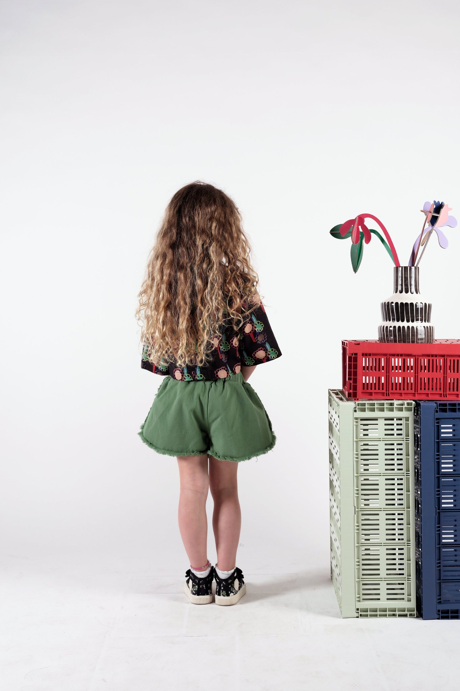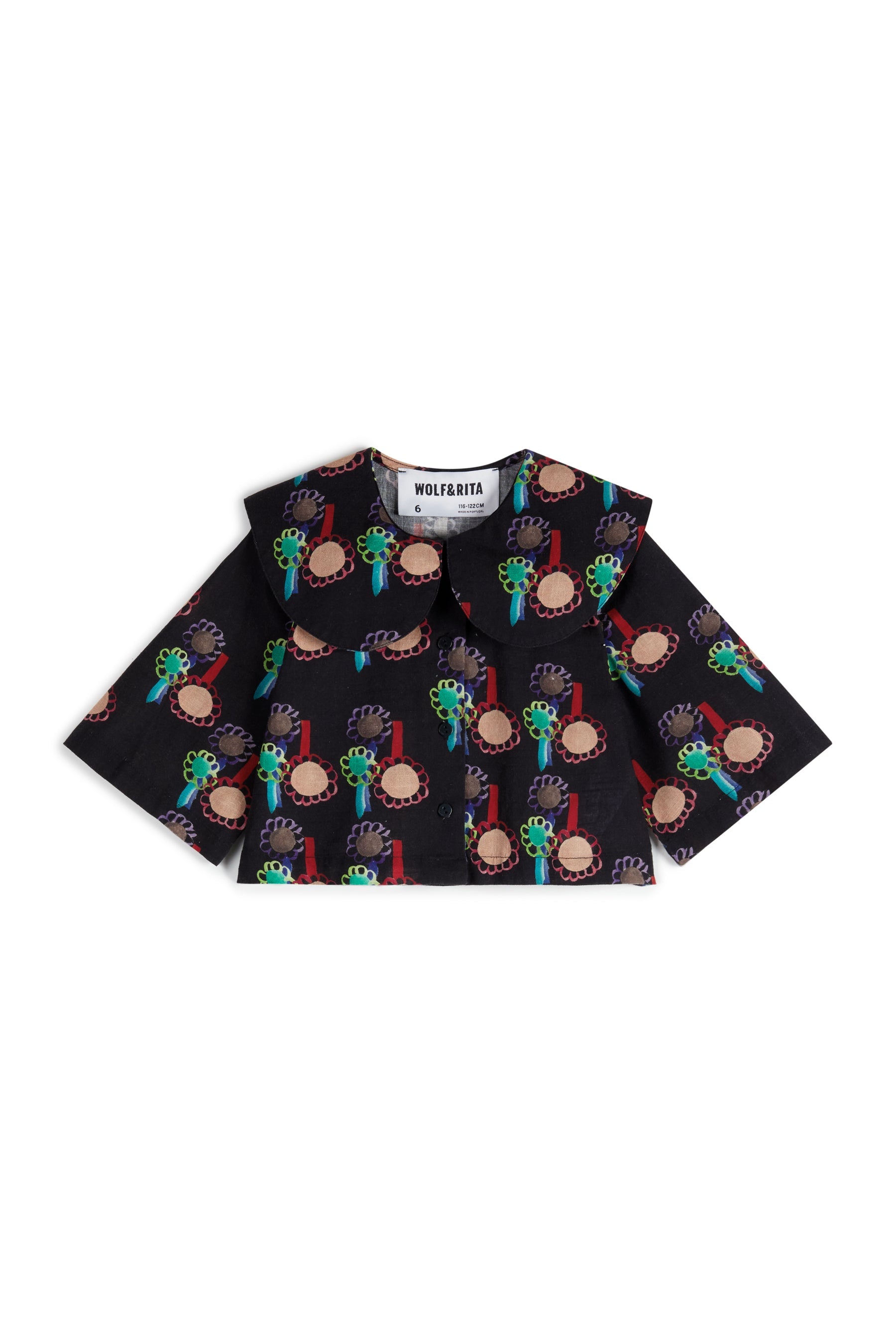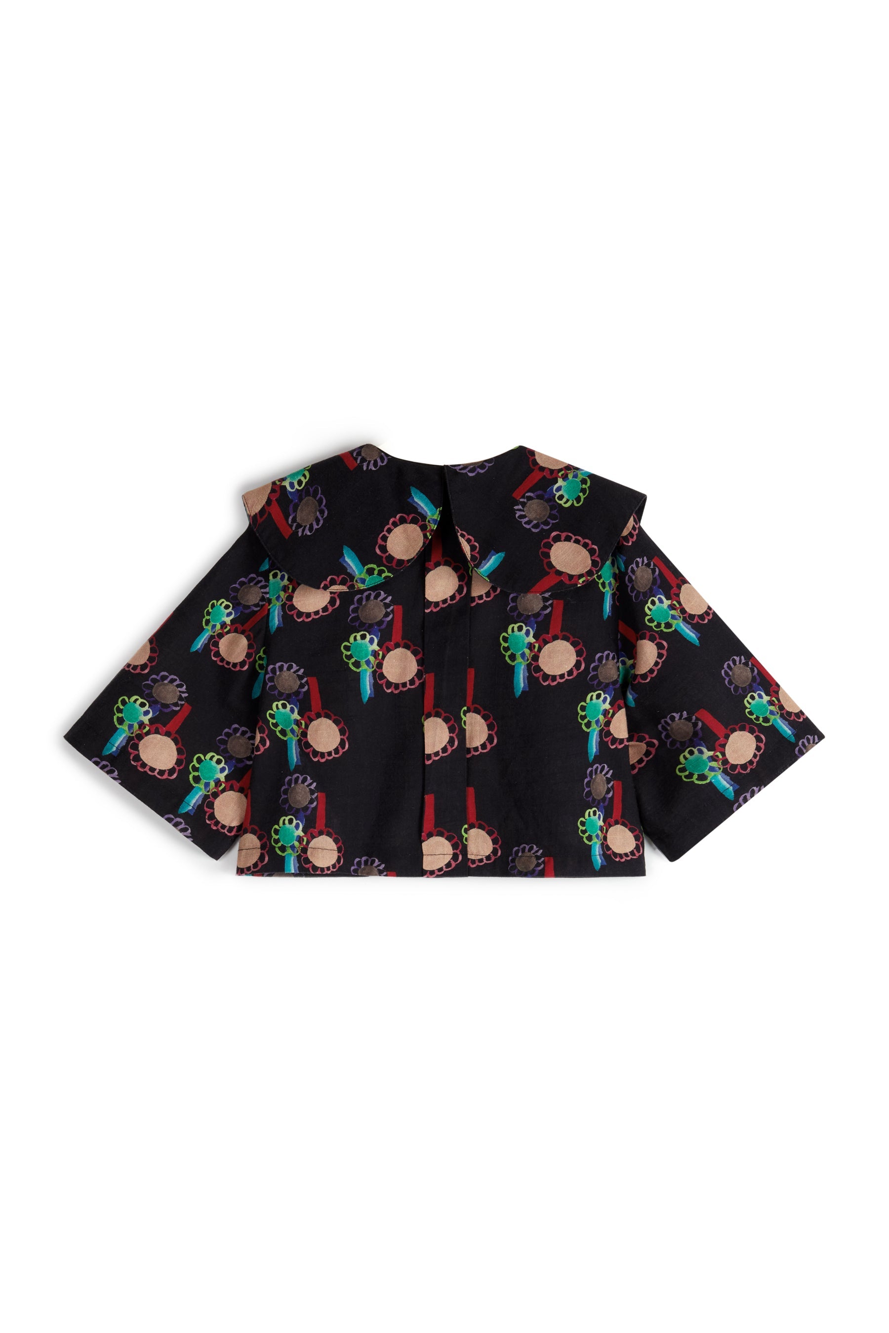 Cropped blouse with short sleeves, round collar, back pleat and front buttons